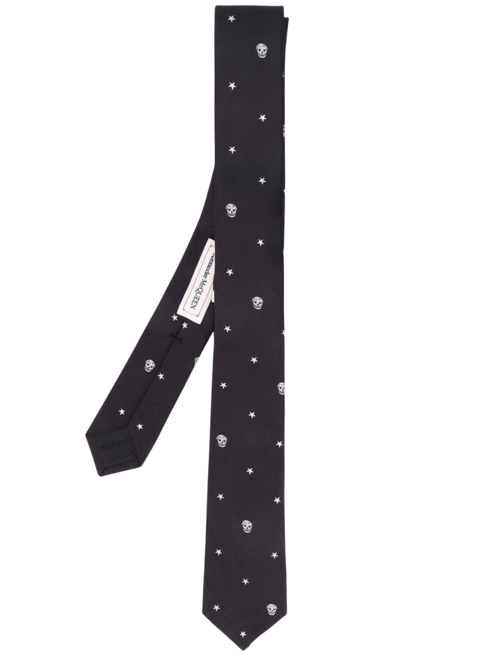 ALEXANDER MCQUEEN Skull And Star Print Tie Black/Ivory