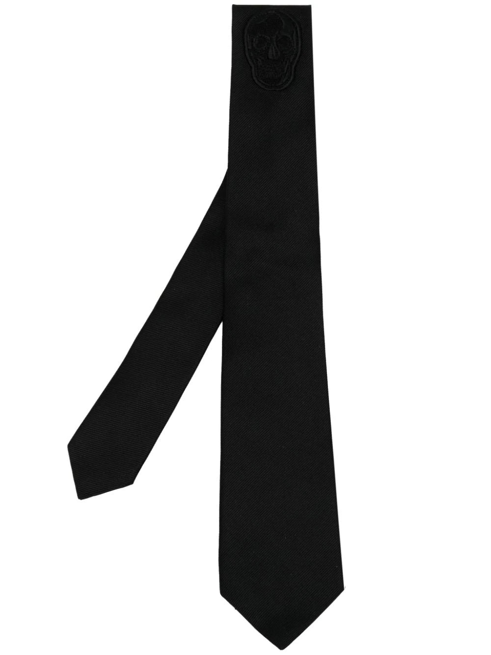 ALEXANDER MCQUEEN Skull Embroidery Tie Black