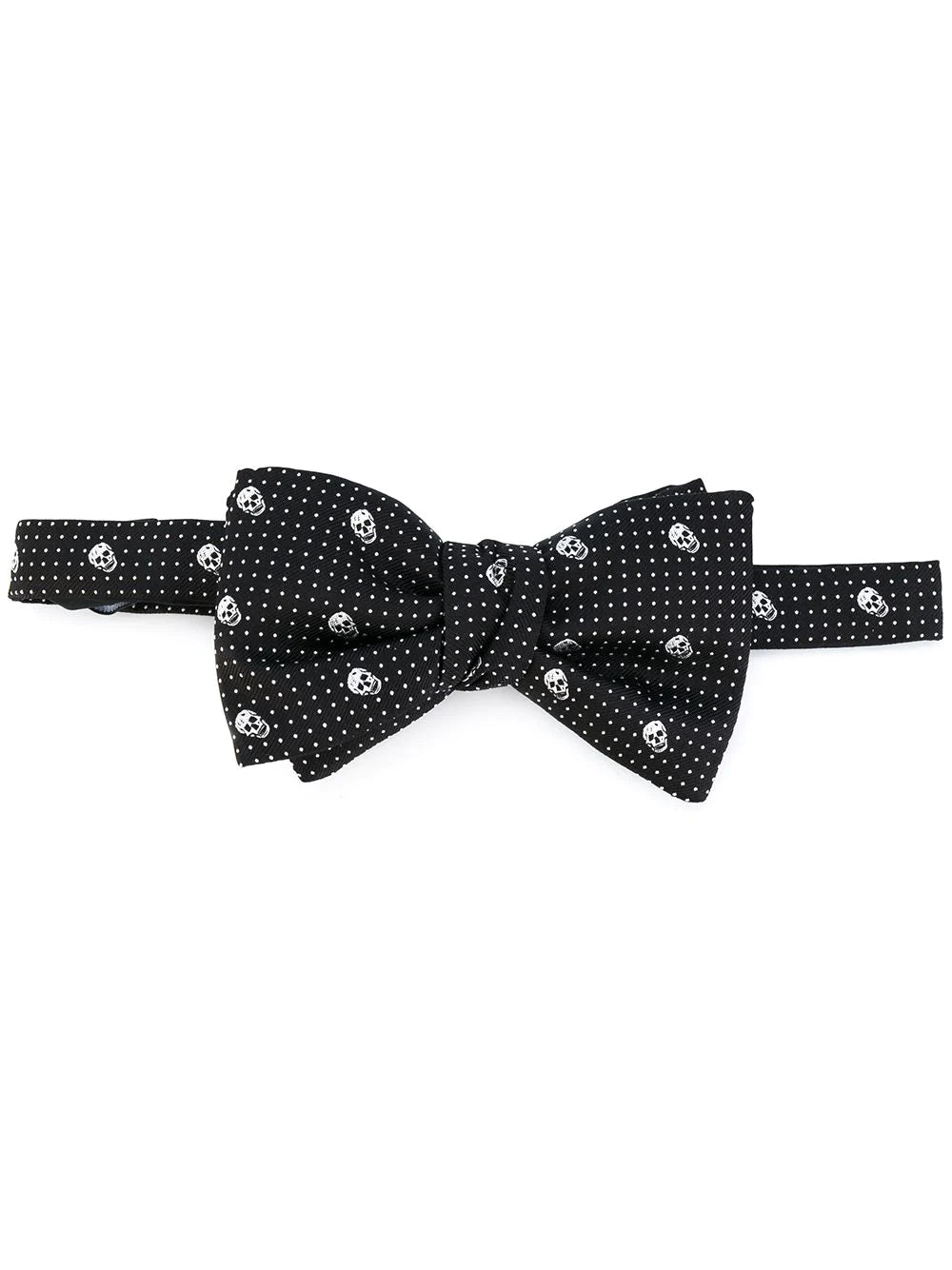 ALEXANDER MCQUEEN Skull Polka Dot Print Bow Tie Black/White
