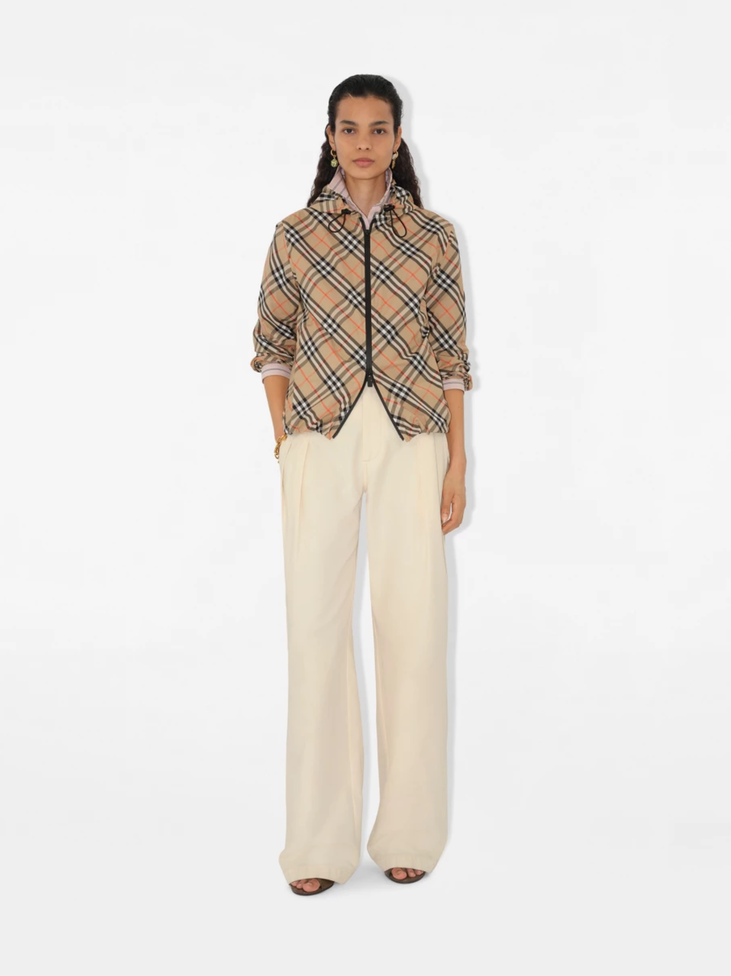 BURBERRY WOMEN Check Hooded Jacket Sand