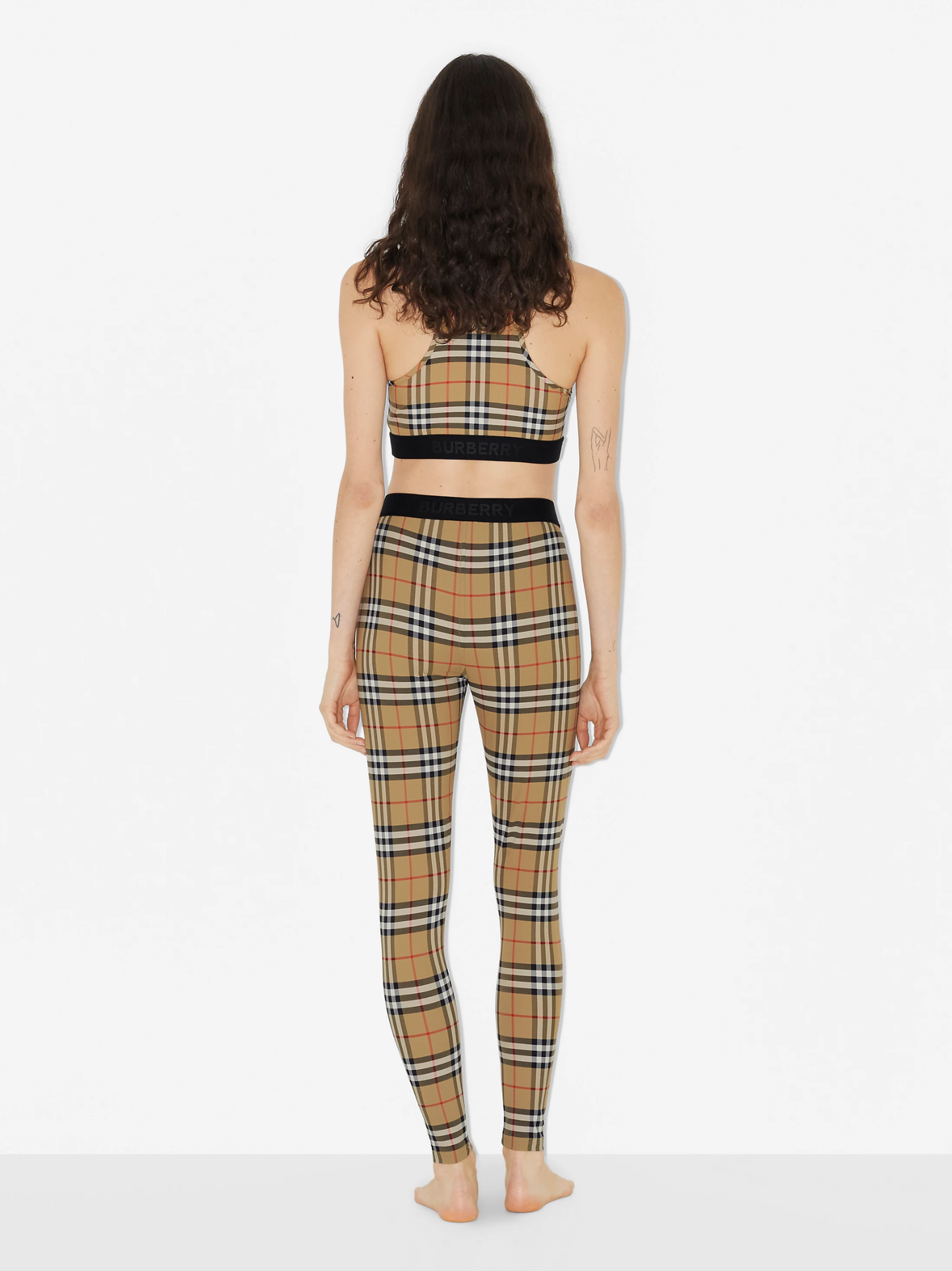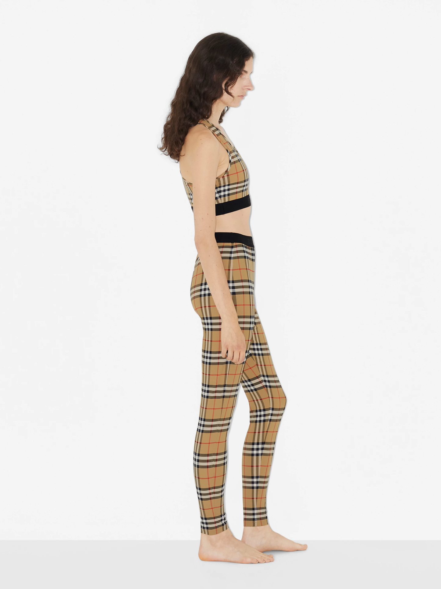 - Leggings in stretch jersey, printed with the Burberry Check. The design features a logo at the waist.