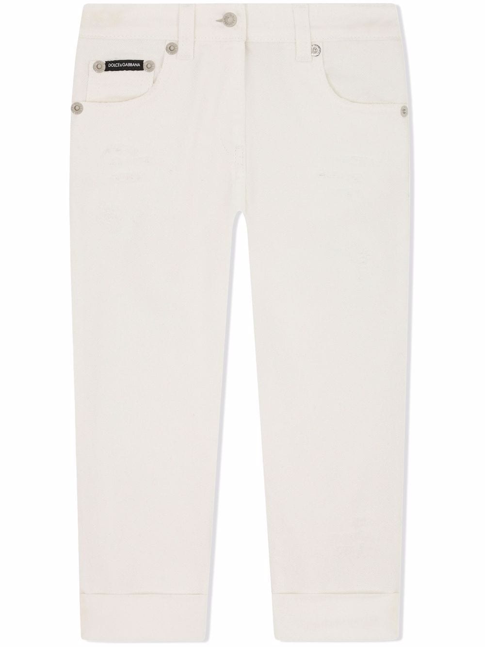 DOLCE & GABBANA KIDS Mid-Rise Slim Fit Jeans Off-White