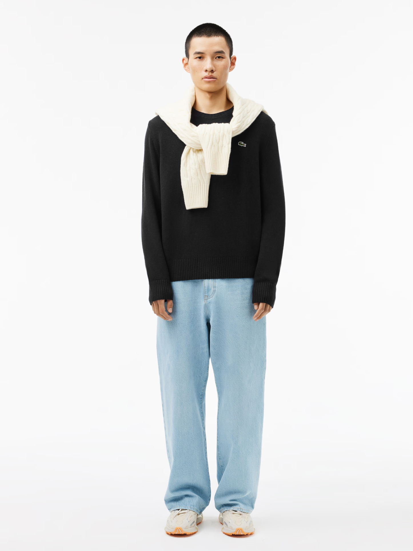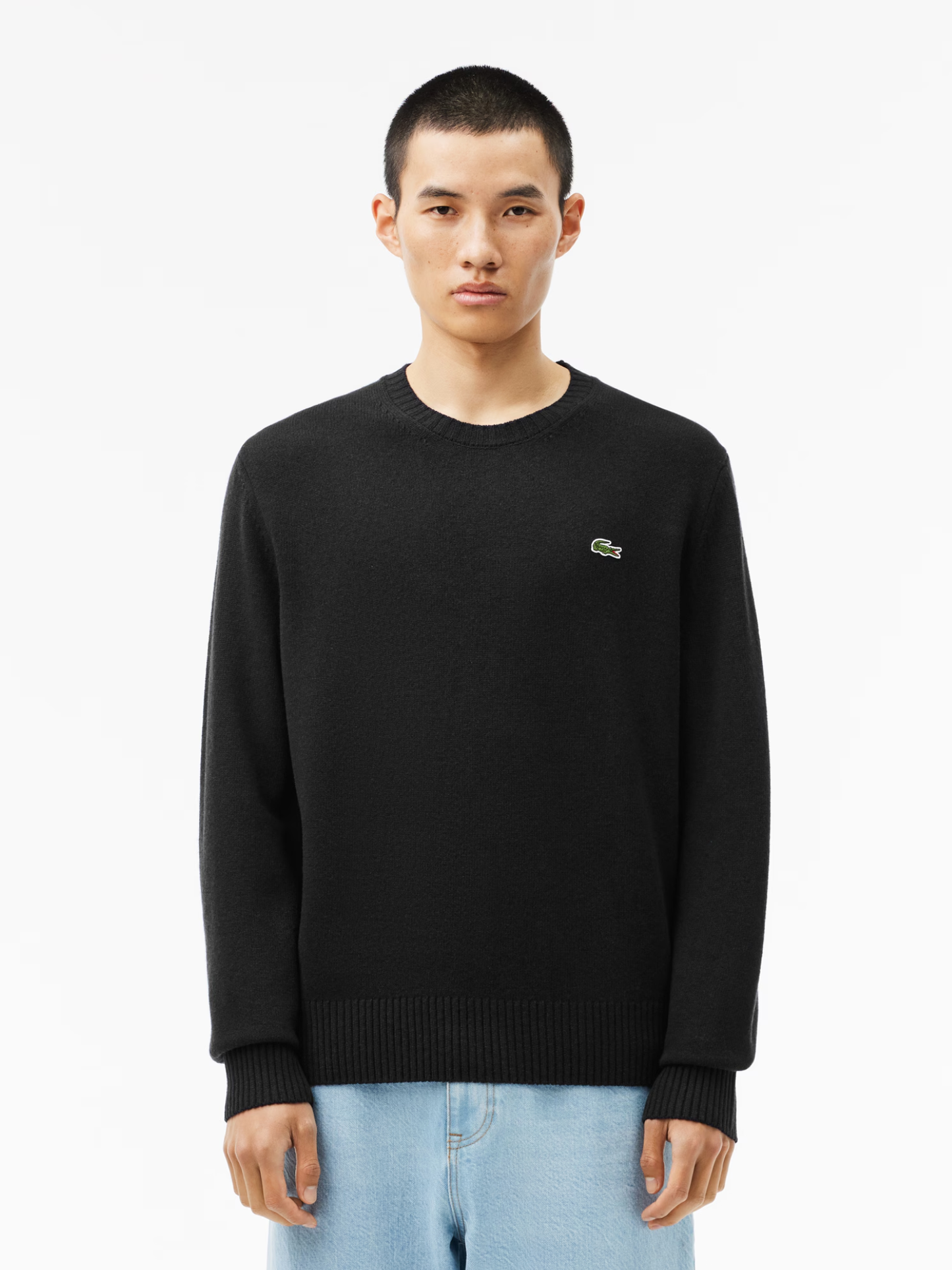 LACOSTE Carded Wool Crew Neck Sweater Black