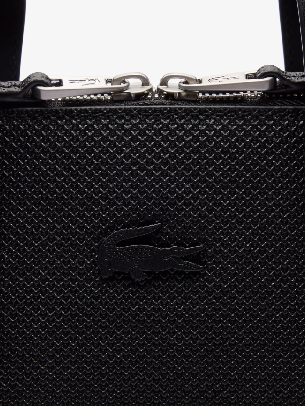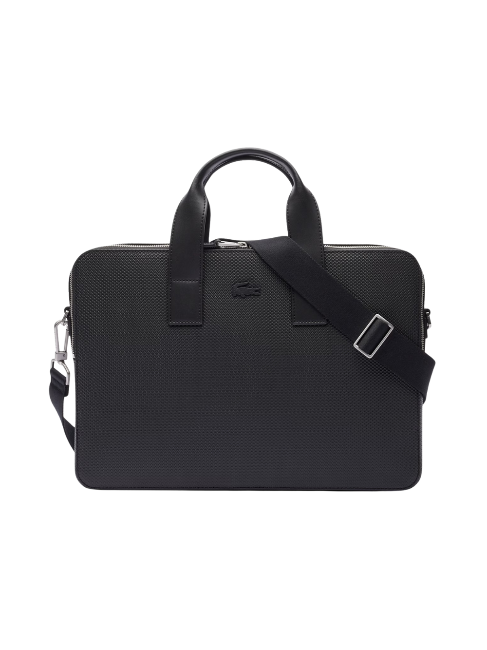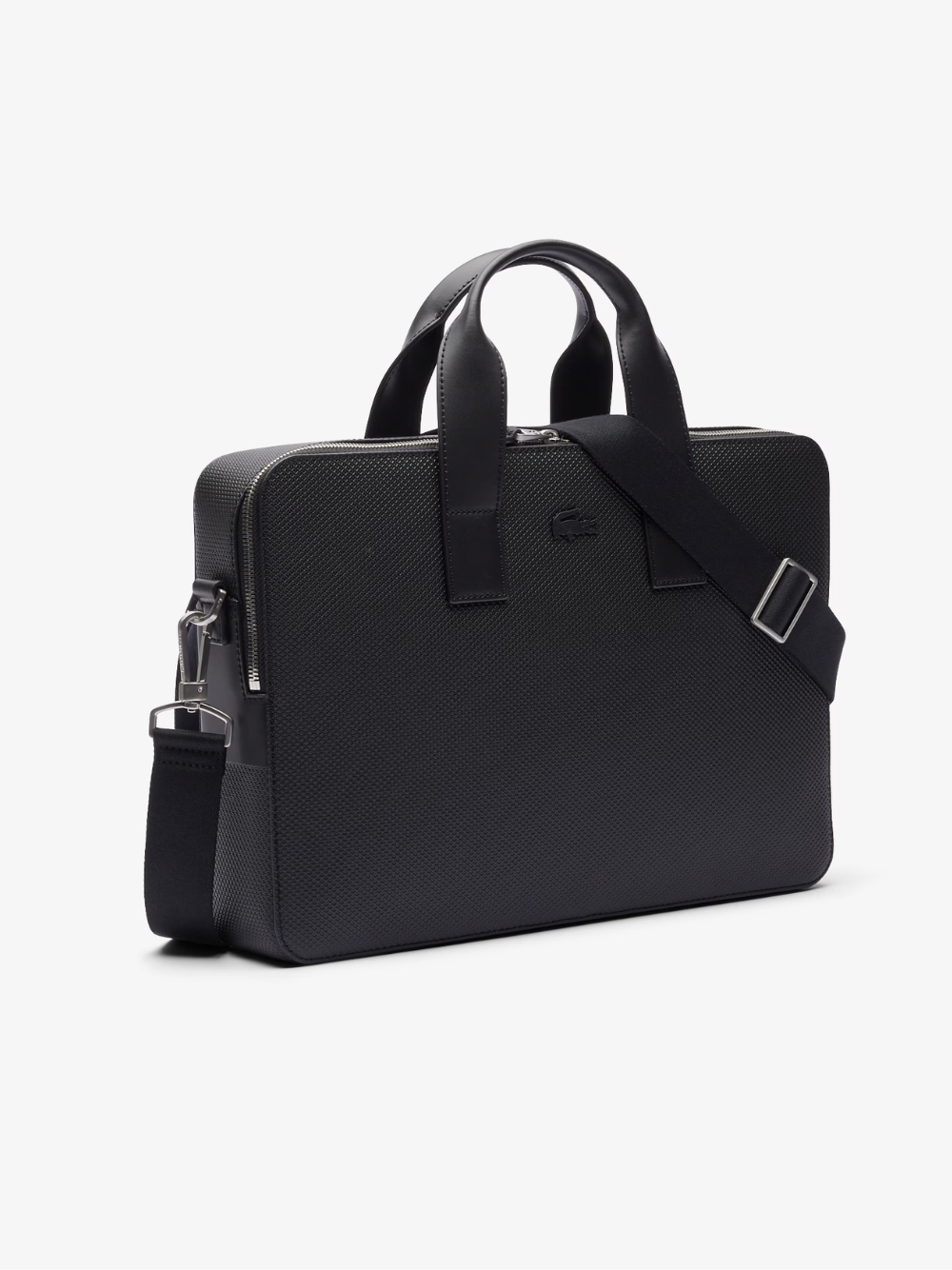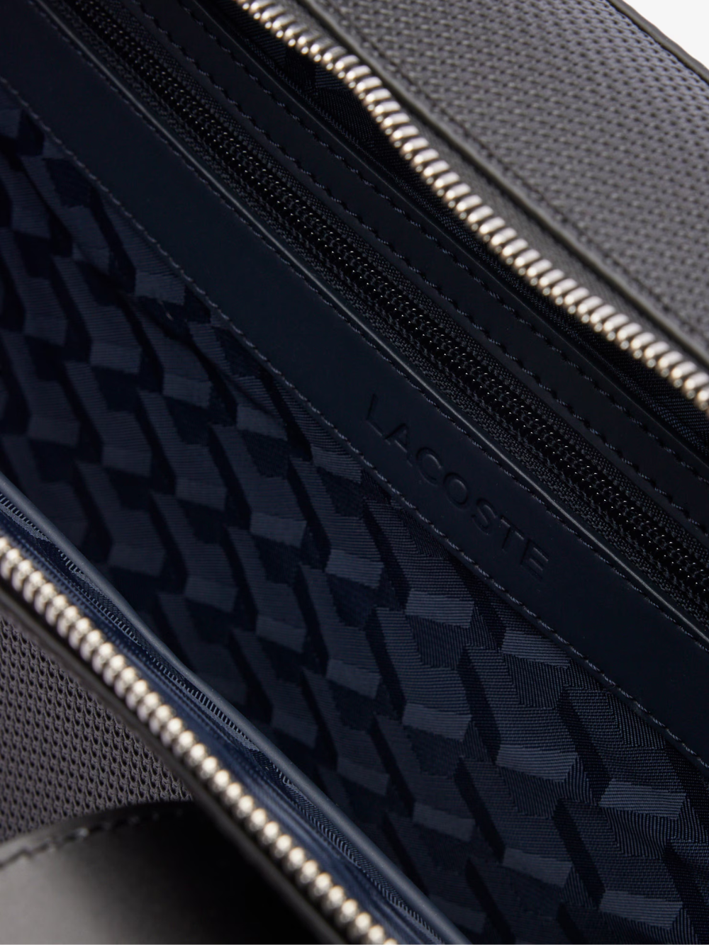 This elegant, roomy leather bag from Lacoste is designed to hold a 15” laptop. The practical design can be carried in the hand or cross-body using the adjustable strap. Made from iconic textured leather, made to resemble a golf ball. A timeless design, perfect for the office or for work trips.