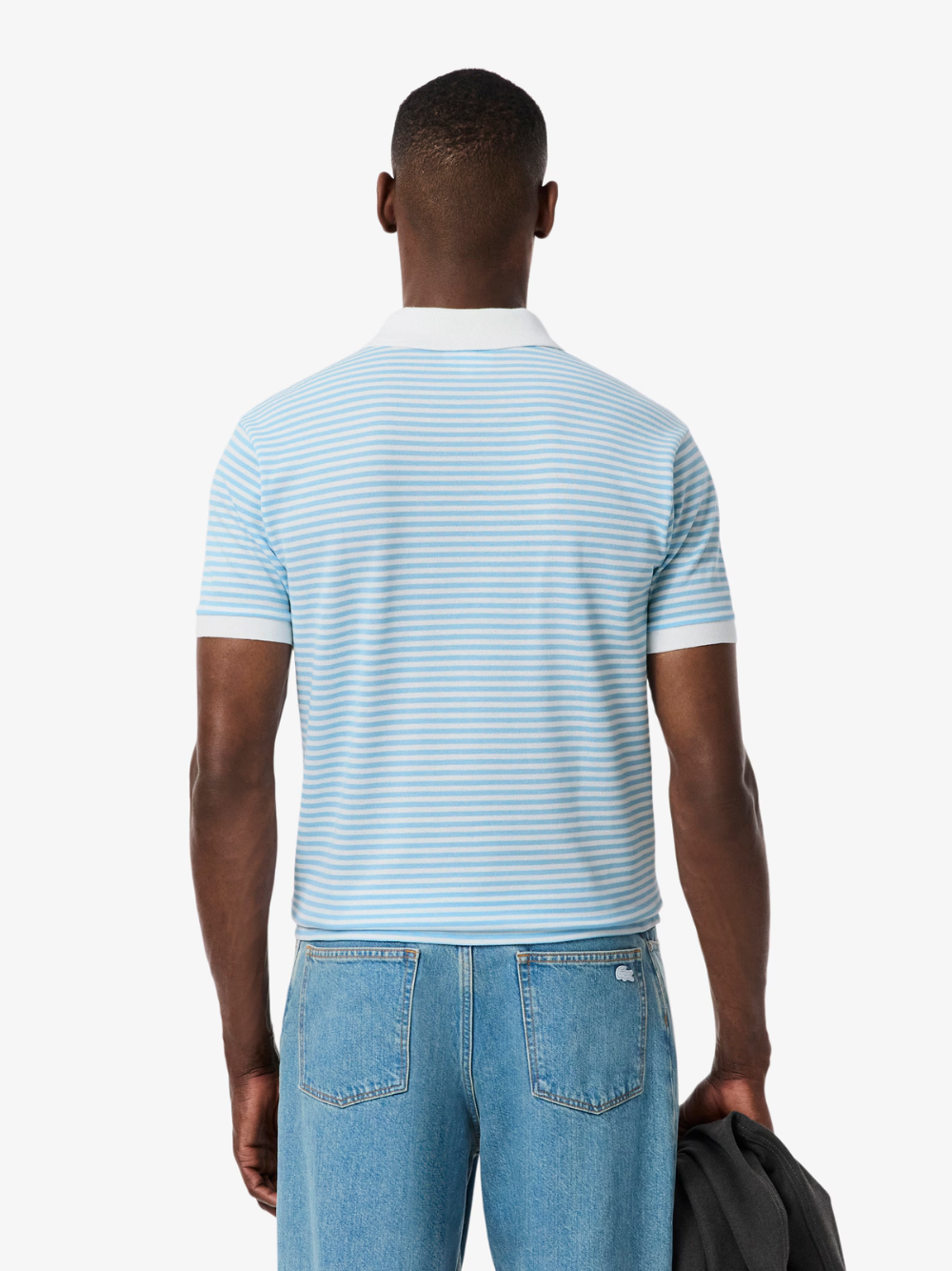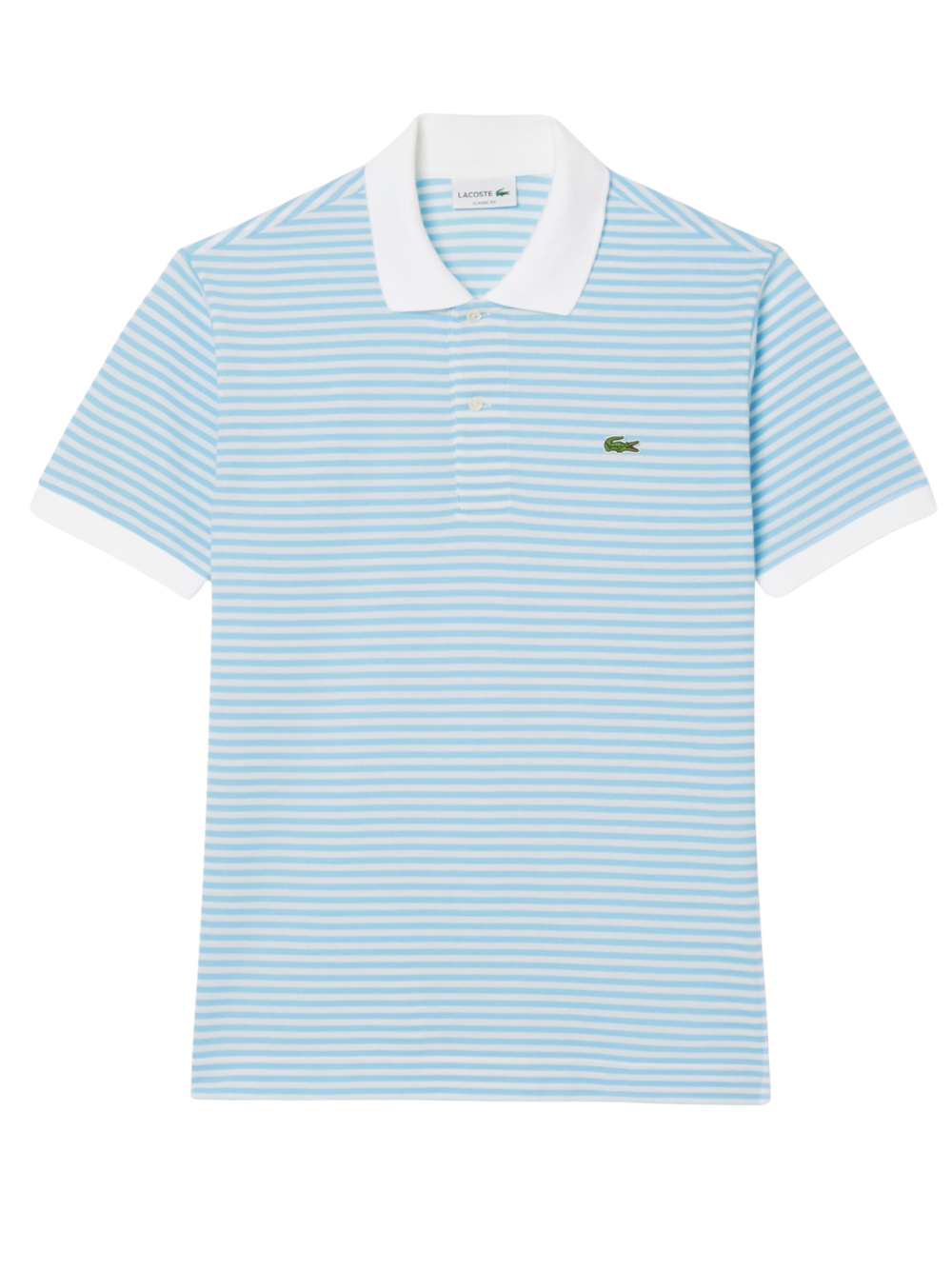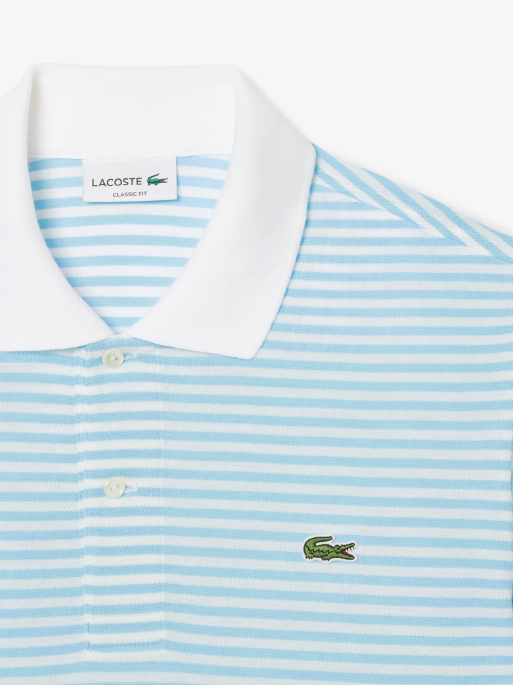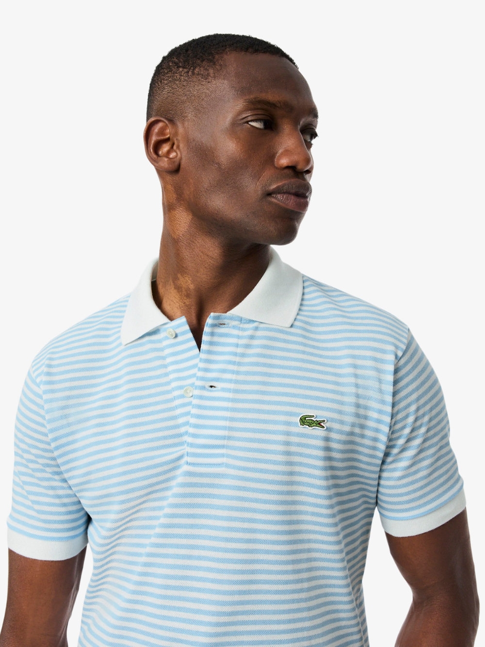 LACOSTE Classic Fit L.12.12 Striped Petit Piqué Polo Shirt White/Blue