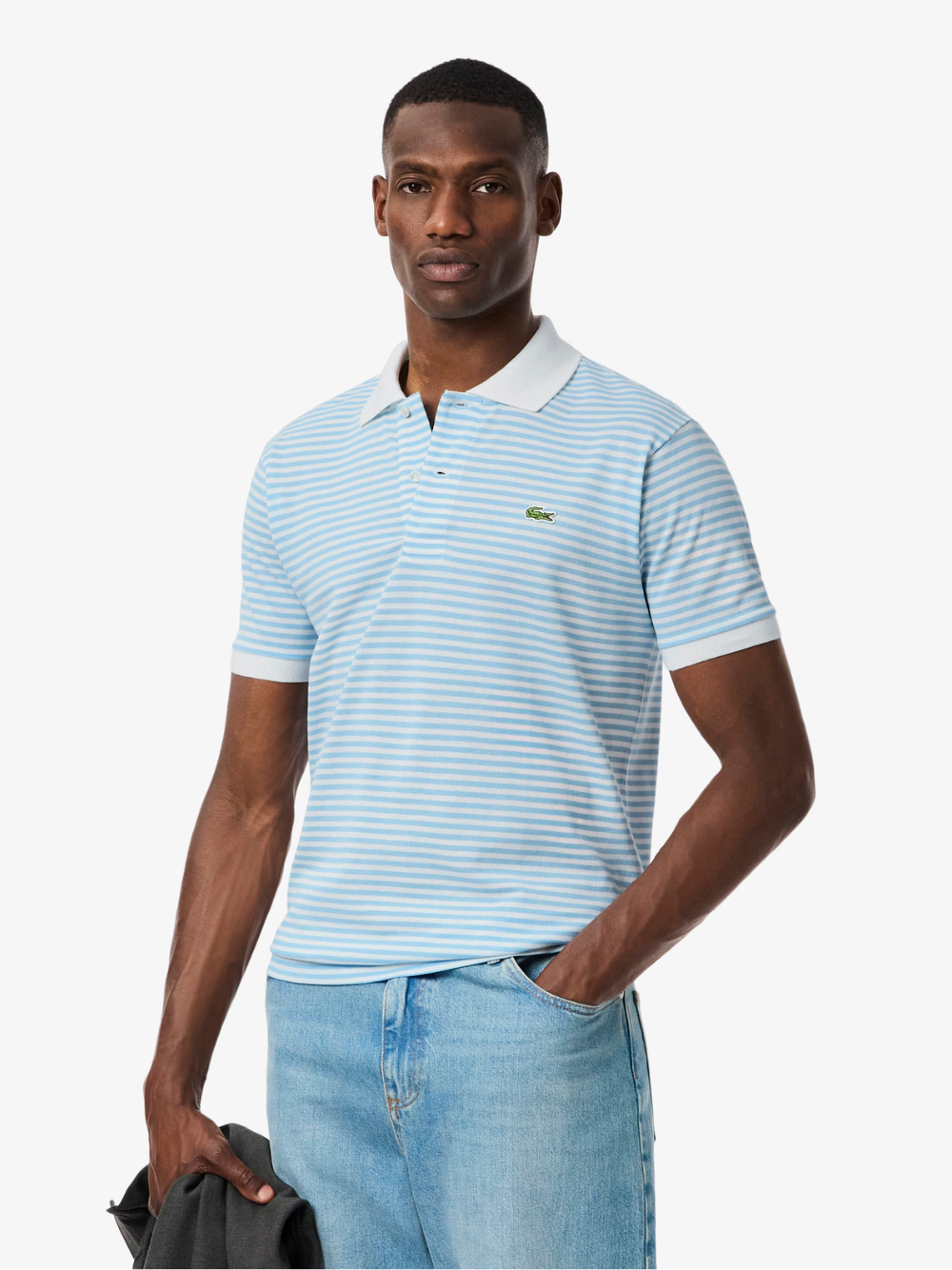 Lacoste, inventors of the polo shirt in 1933, present this bold version of the L.12.12. Made from a supple, elegant piqué fabric with horizontal stripes, inspired by archival designs, which highlight the iconic finish details of the original style.