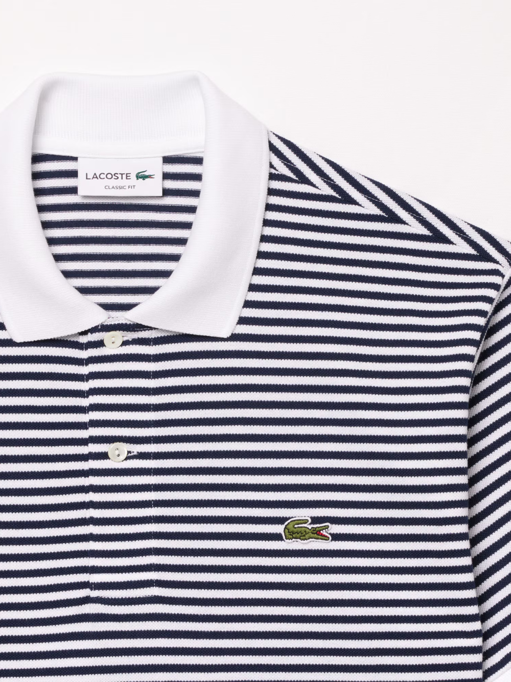 Lacoste, inventors of the polo shirt in 1933, present this bold version of the L.12.12. Made from a supple, elegant piqué fabric with horizontal stripes, inspired by archival designs, which highlight the iconic finish details of the original style.