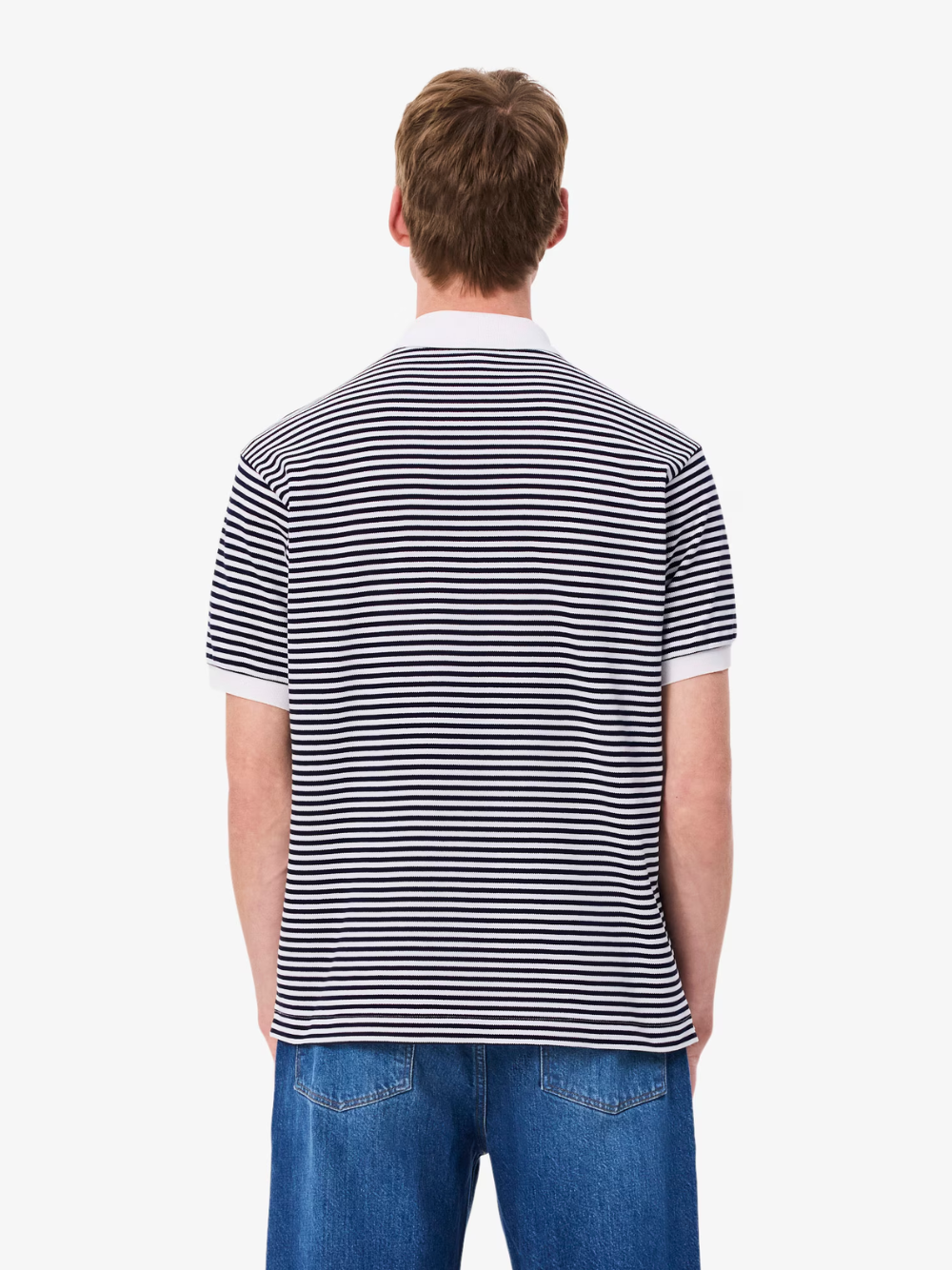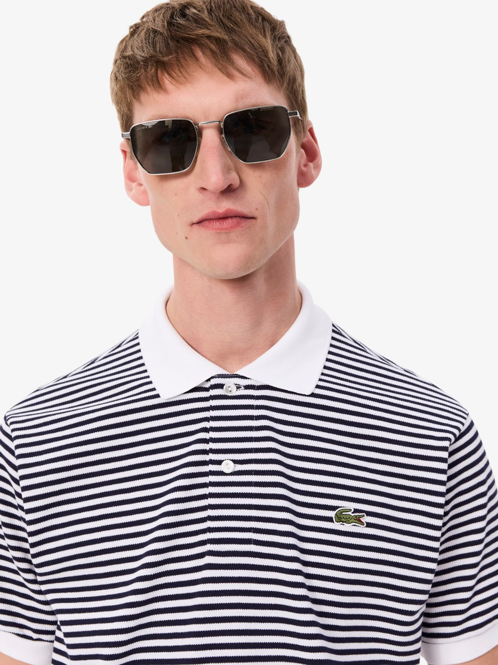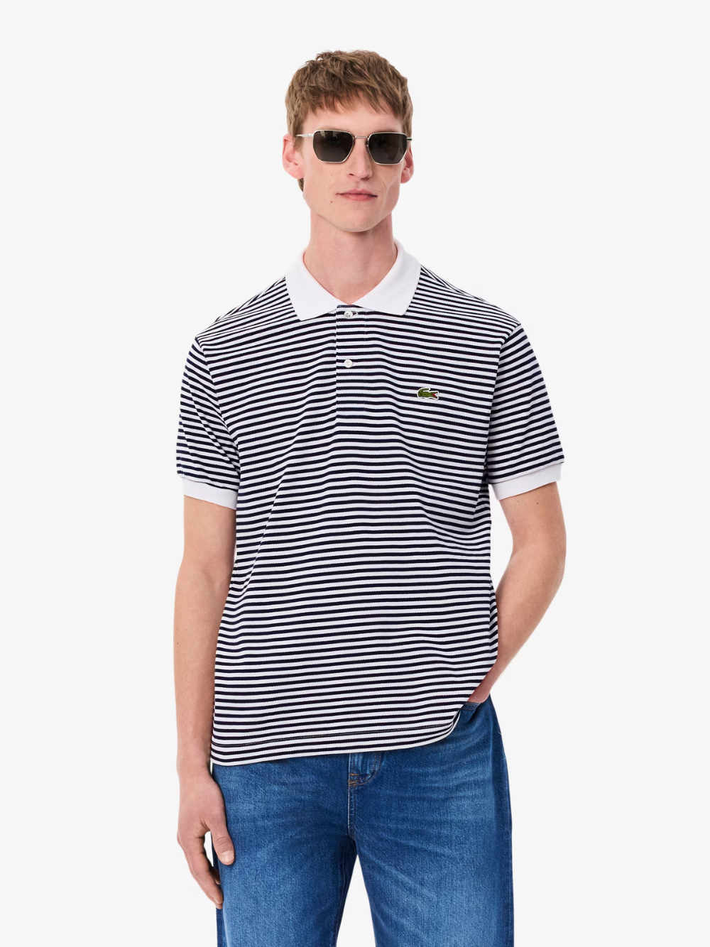 LACOSTE Classic Fit L.12.12 Striped Petit Piqué Polo Shirt White/Navy