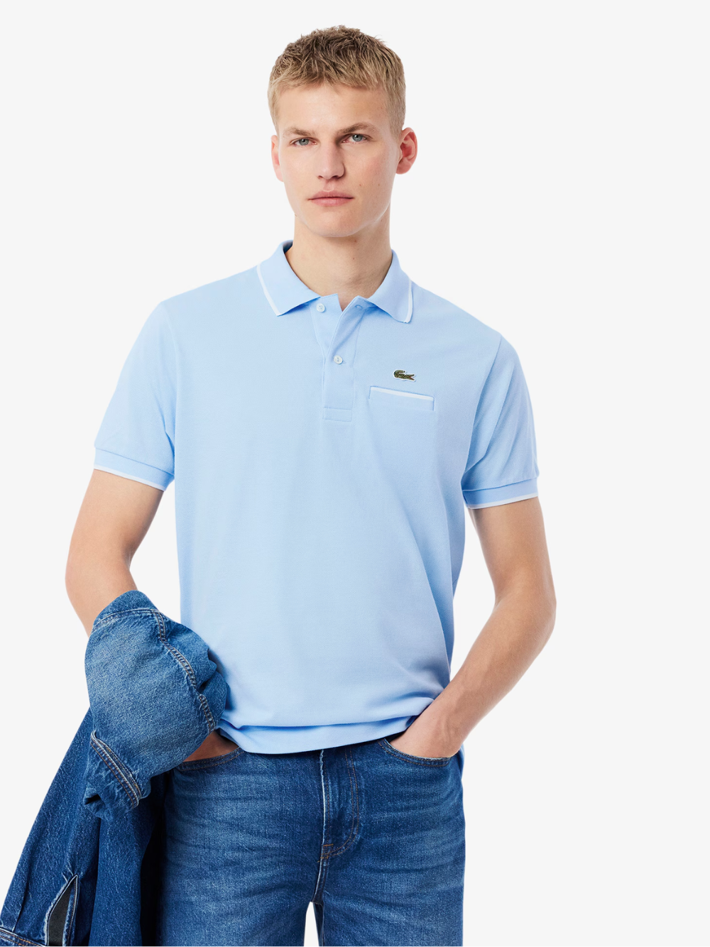 LACOSTE Classic Fit Pocket Accent L.12.12 Polo Shirt Light Blue/White