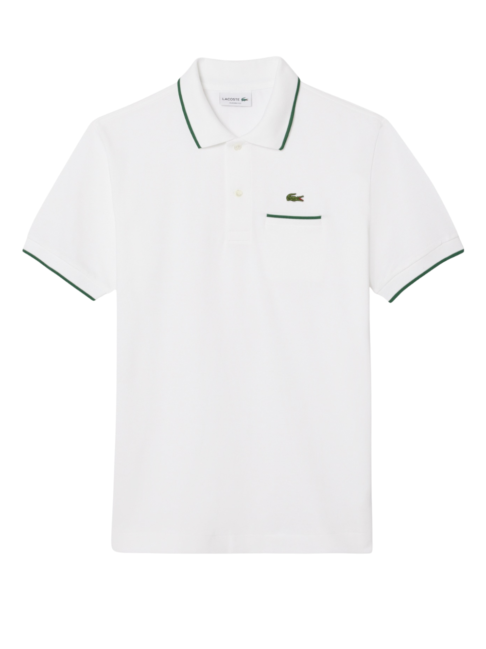 LACOSTE Classic Fit Pocket Accent L.12.12 Polo Shirt White/Green