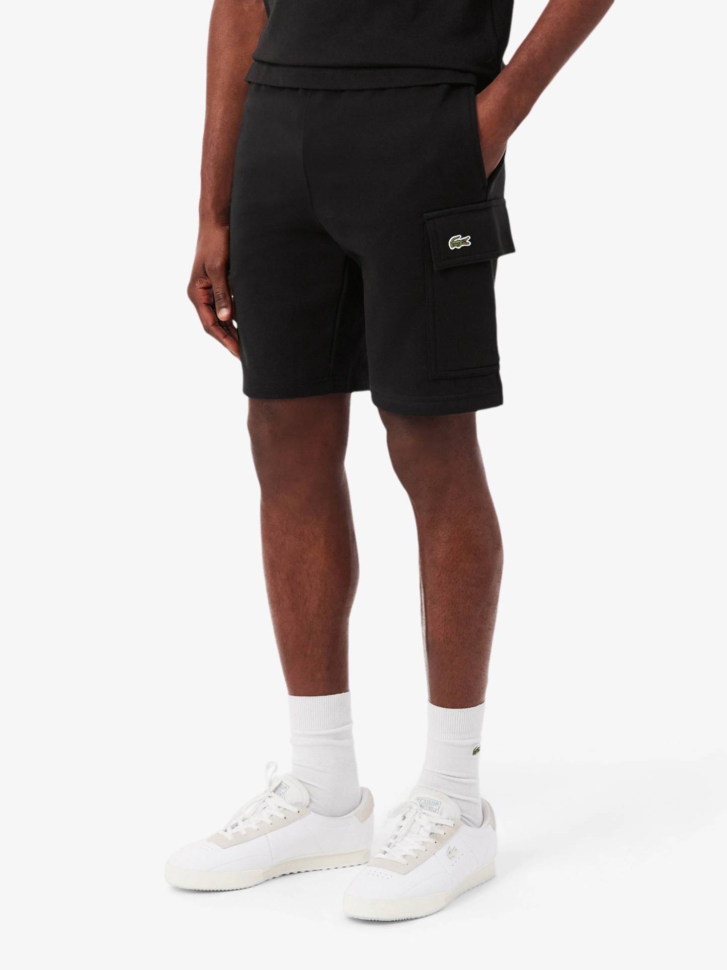 LACOSTE Cotton Fleece Cargo Shorts Black