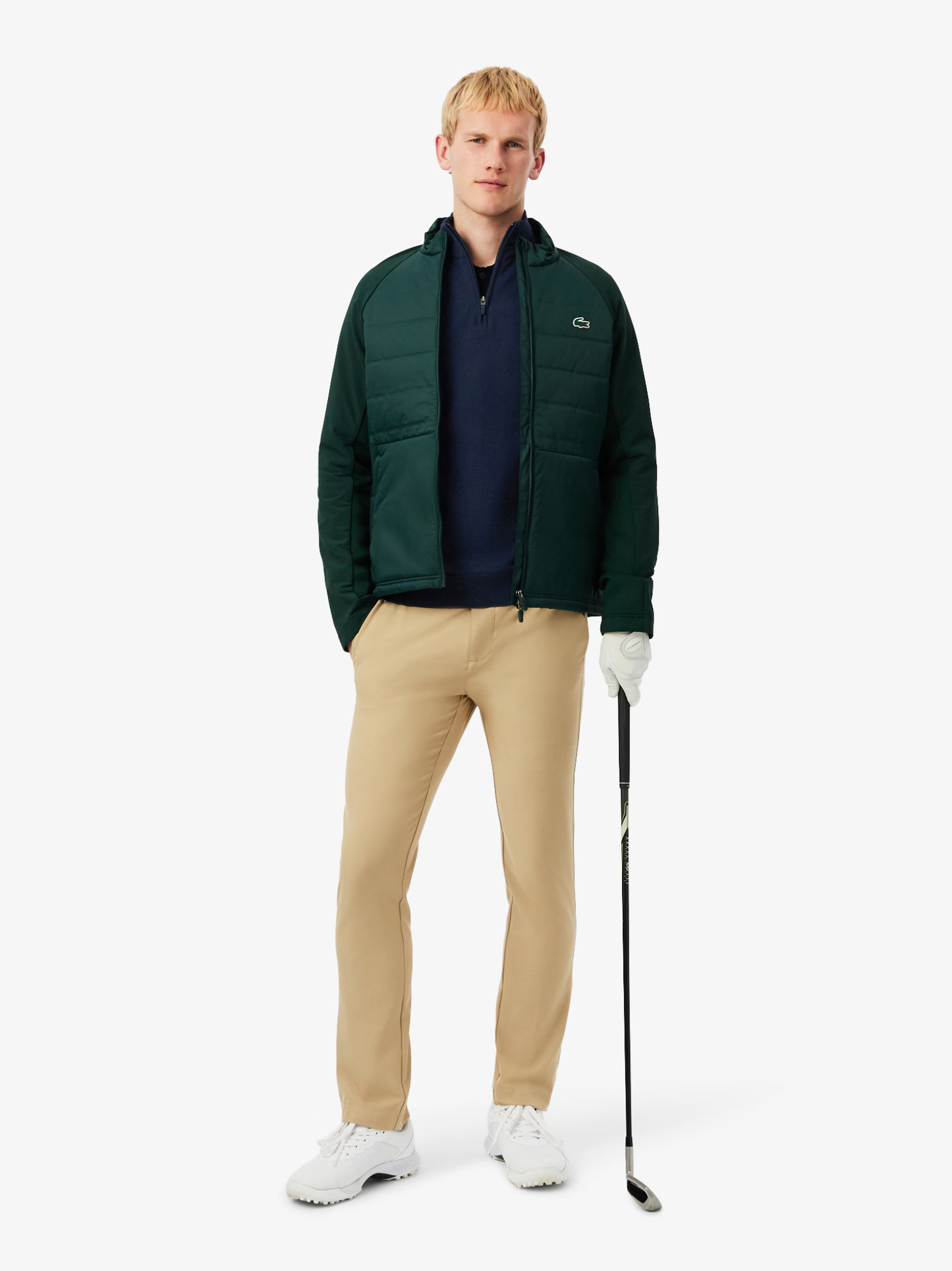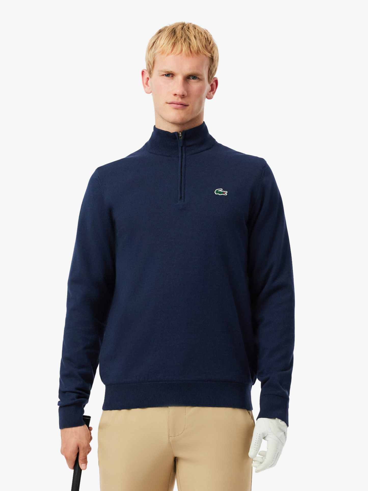 This quarter-zipped sweater, tried and tested by Lacoste players, is an essential addition to any golfing wardrobe. Made from a warm wool and cotton blend knit fabric with a wind-resistant lining for comfort and weather protection. A technical piece with a minimalist design, finished with a signature crocodile for an elegant look on the green.
