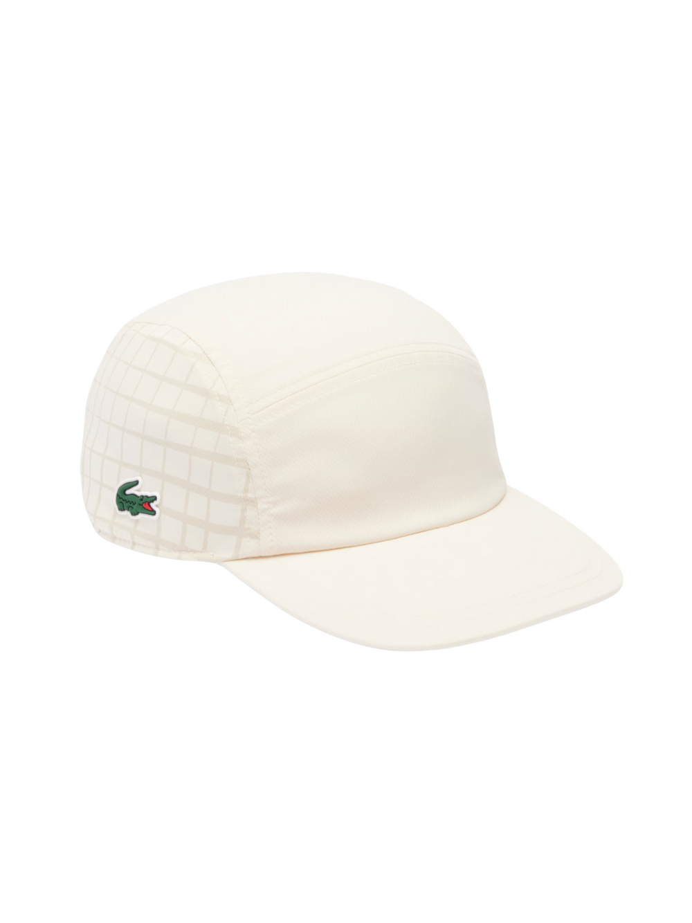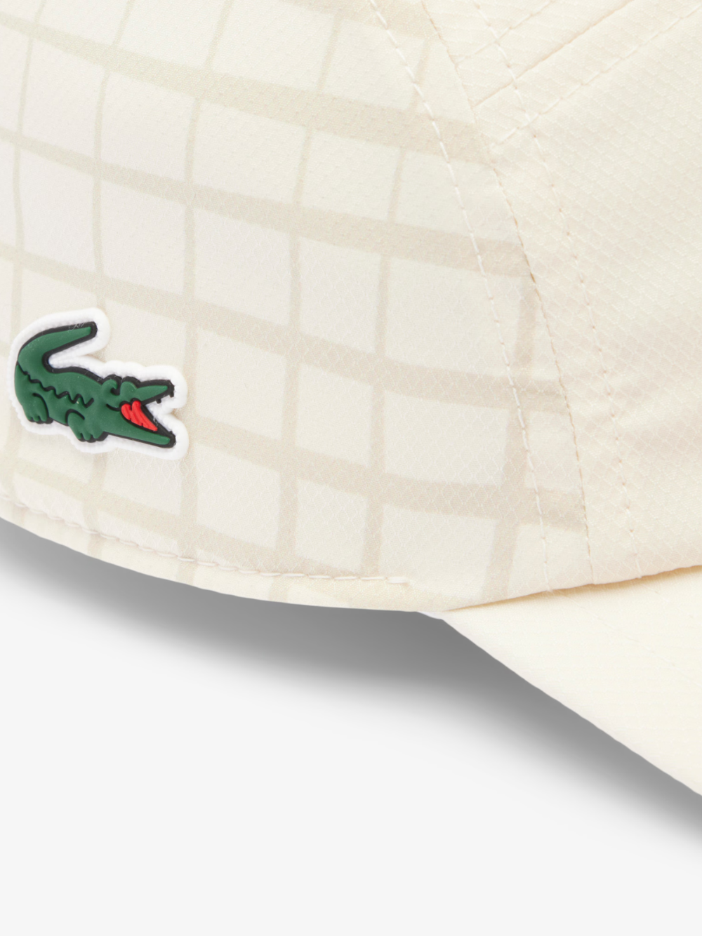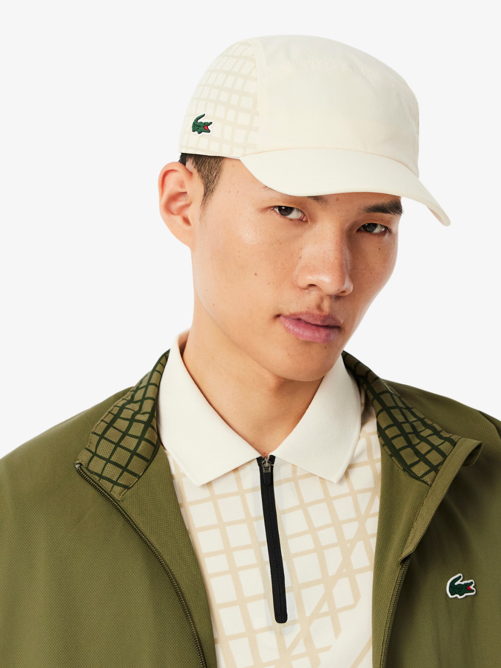 This cap, tried and tested by Lacoste players, is designed for intensive tennis training. A blend of comfort and bold style, made from our iconic, lightweight, breathable diamond taffeta, with a racket-inspired print. A must-have piece, finished with a signature crocodile.