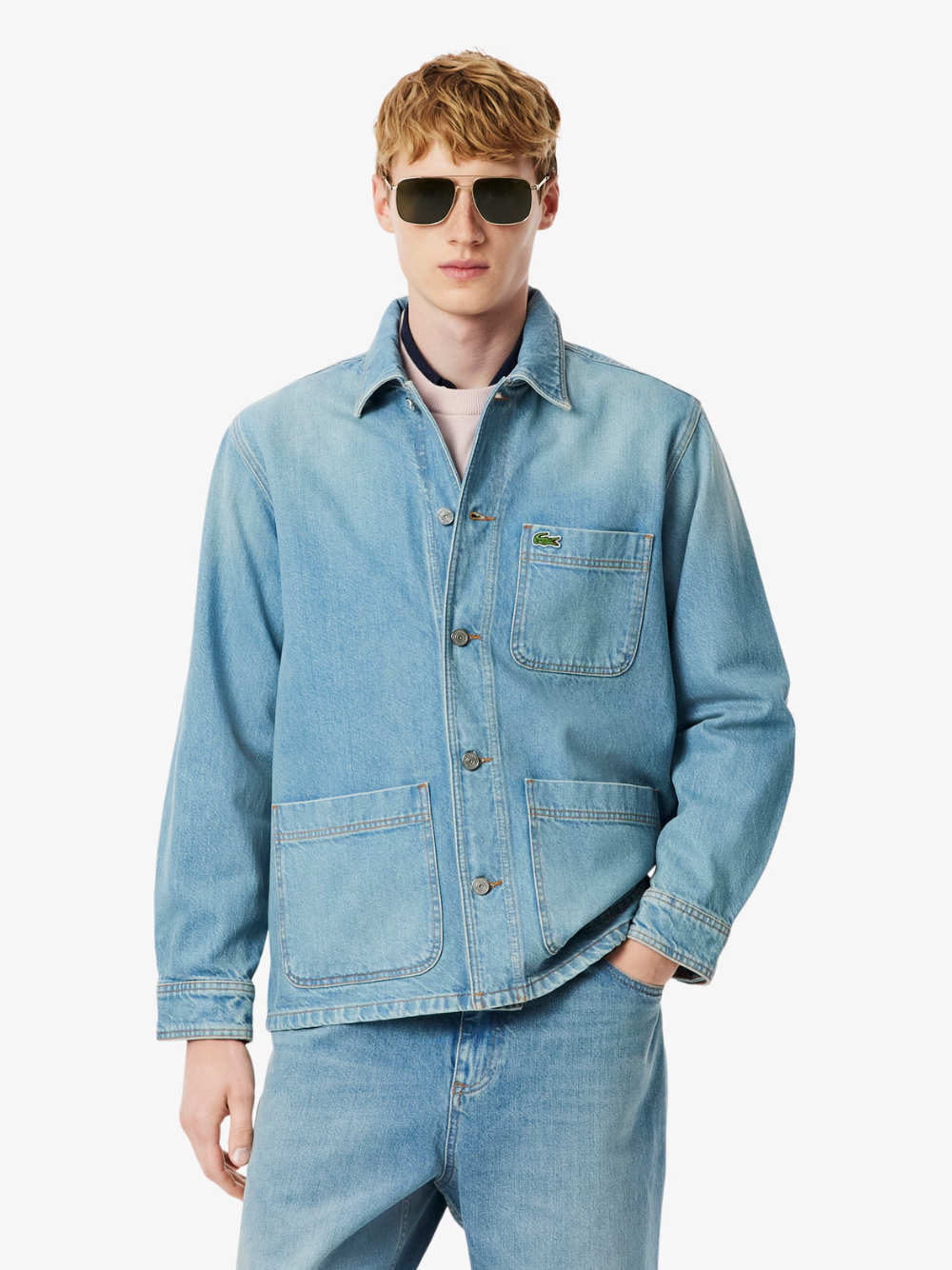 LACOSTE Heavy Cotton Denim Overshirt Jacket Blue