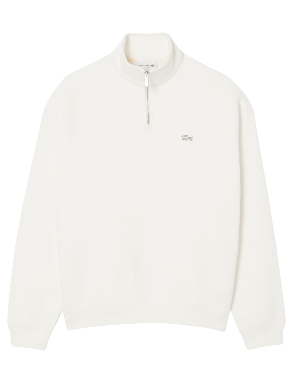 LACOSTE Heavy Fleece Zipper Neck Sweatshirt White