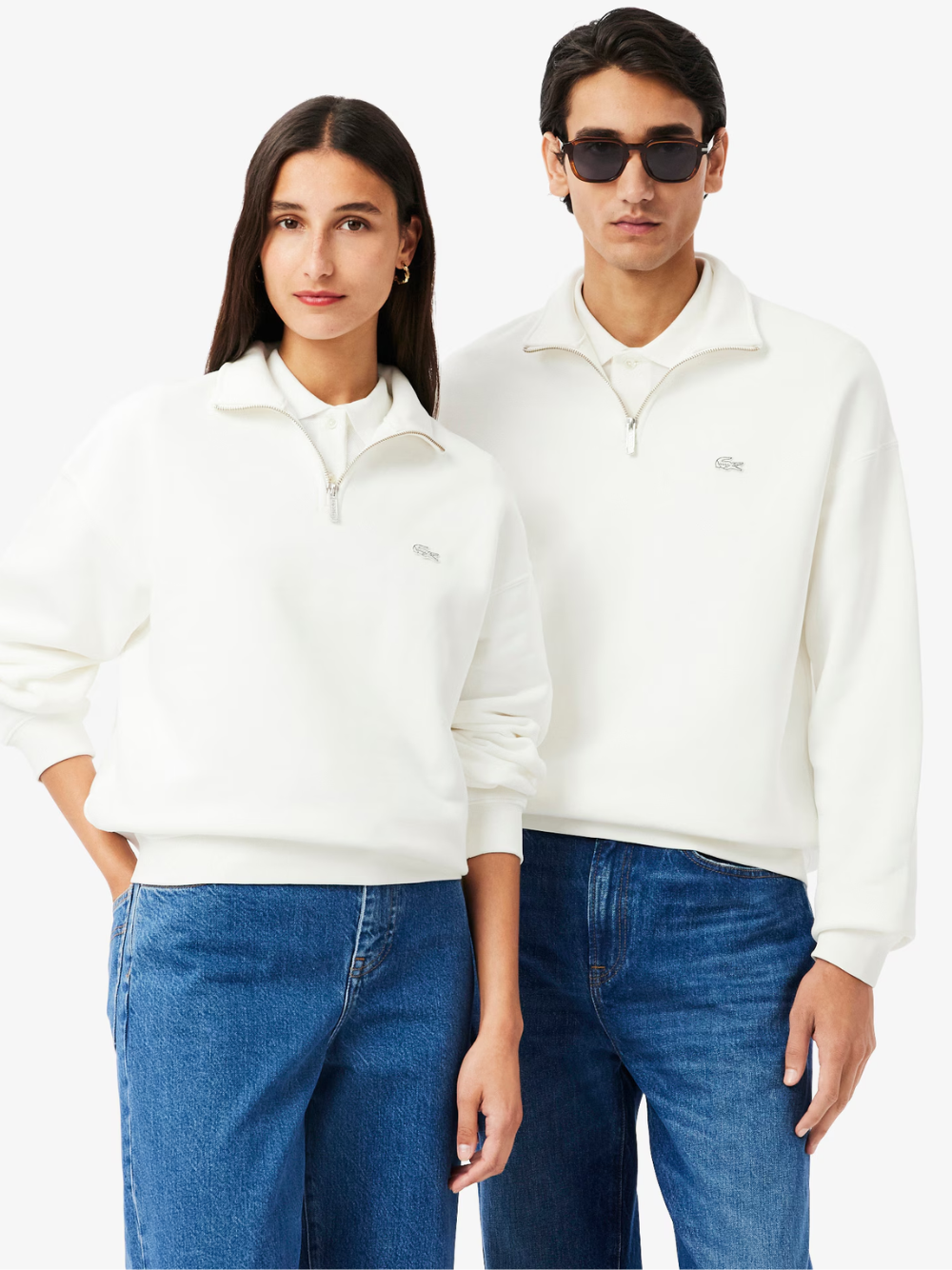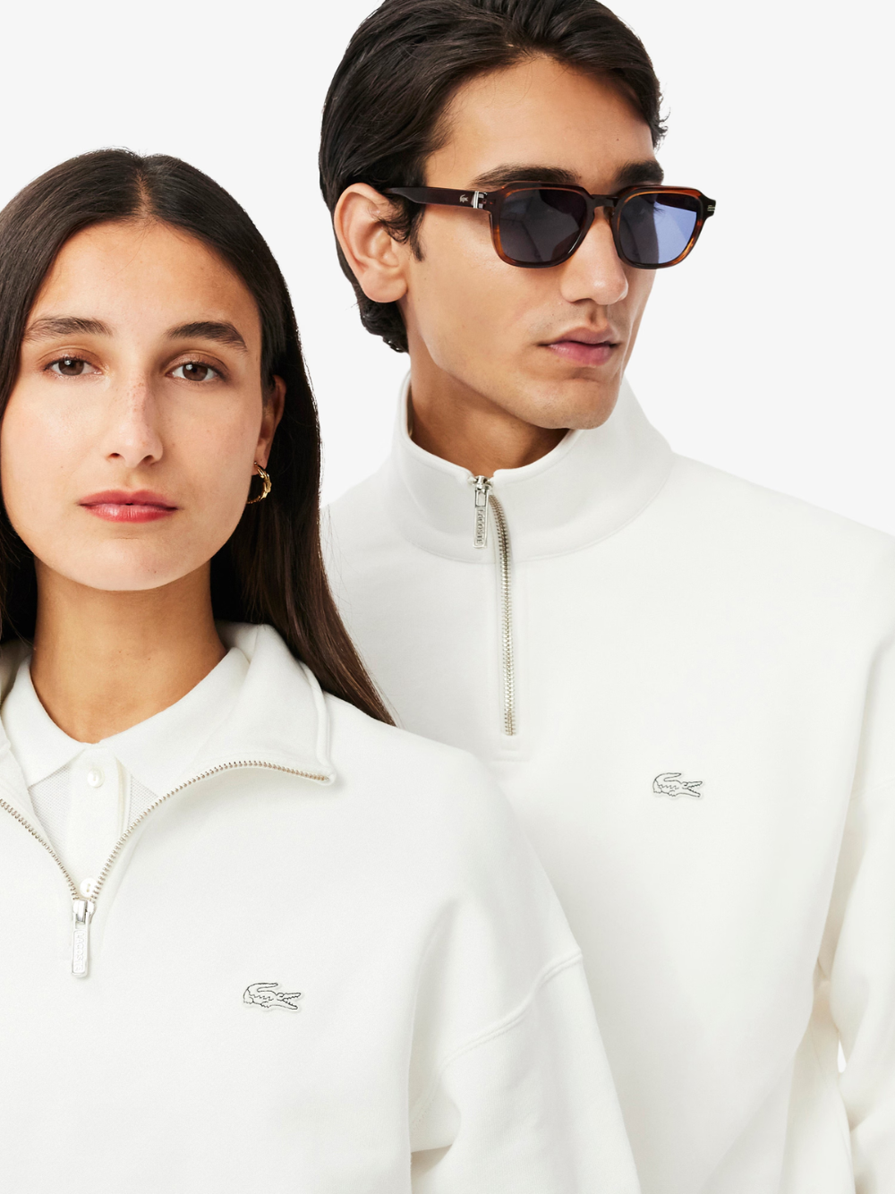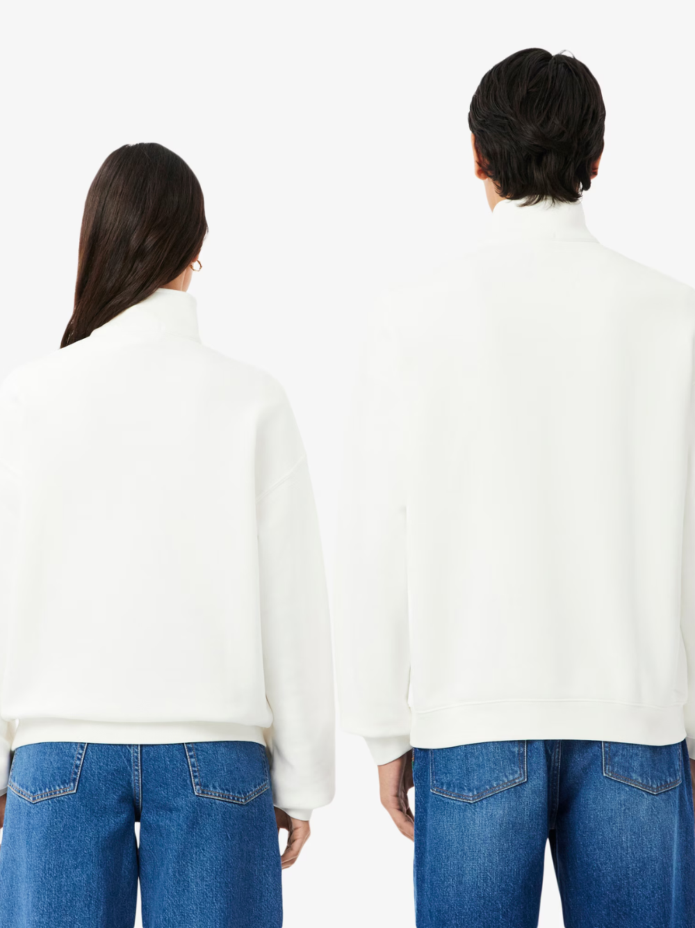 This sweatshirt with a high, zipped neck embodies Lacoste's vision of relaxed elegance. Made from comfortable, heavy cotton fleece, with a loose cut and a minimalist design, finished with a signature crocodile with subtle topstitch detailing. A blend of fashion and sporting style, with ribbed finish details.