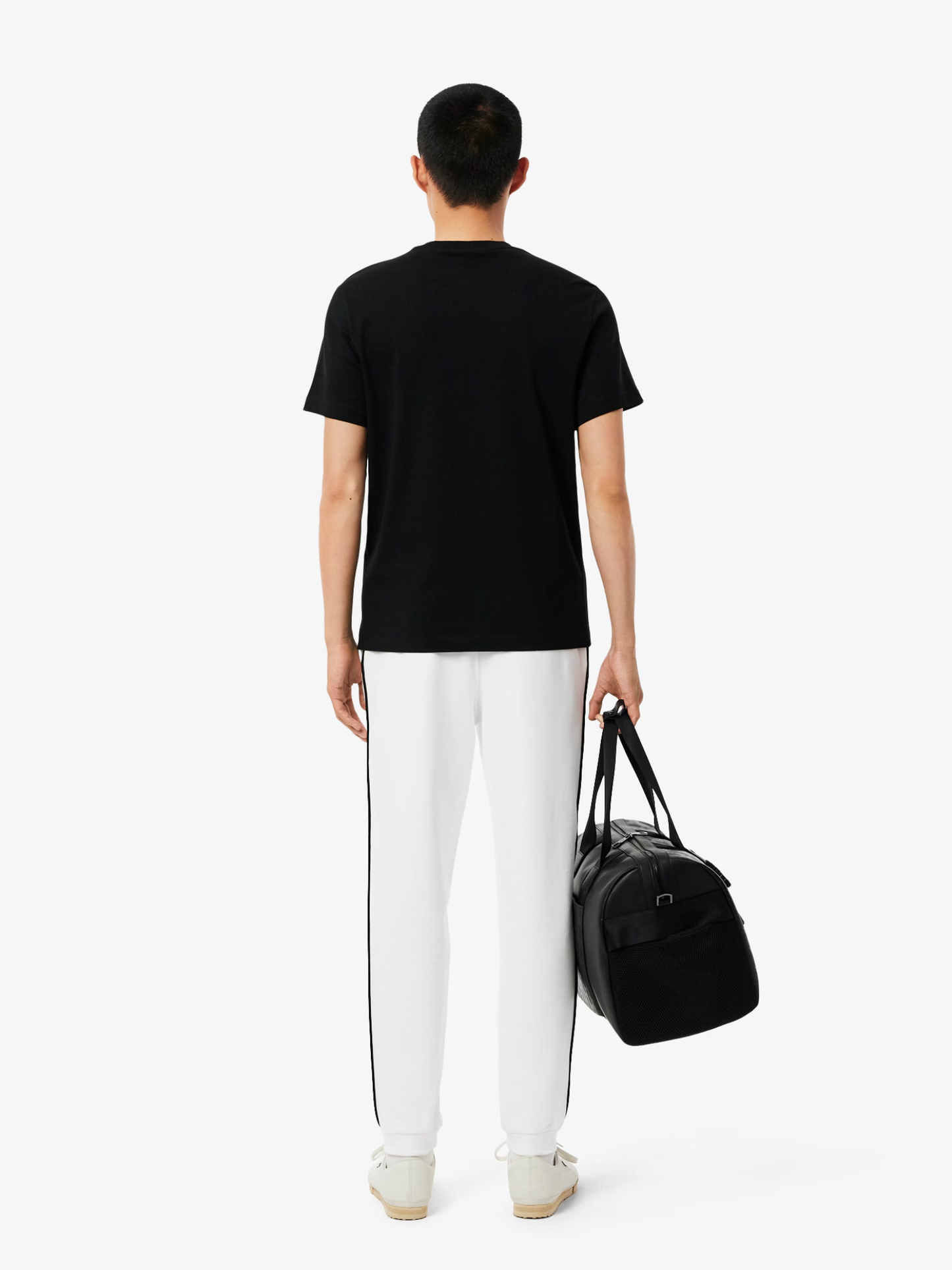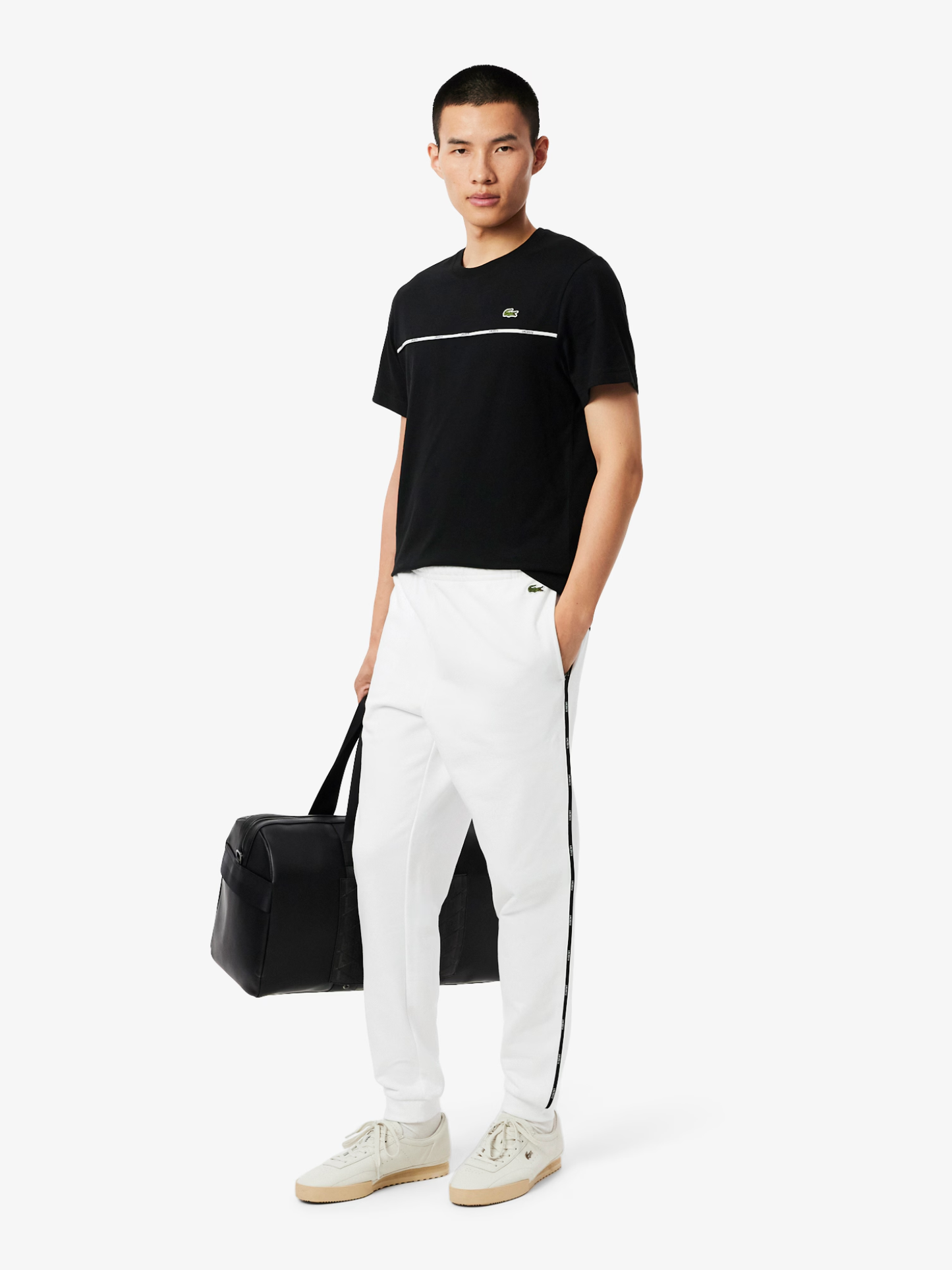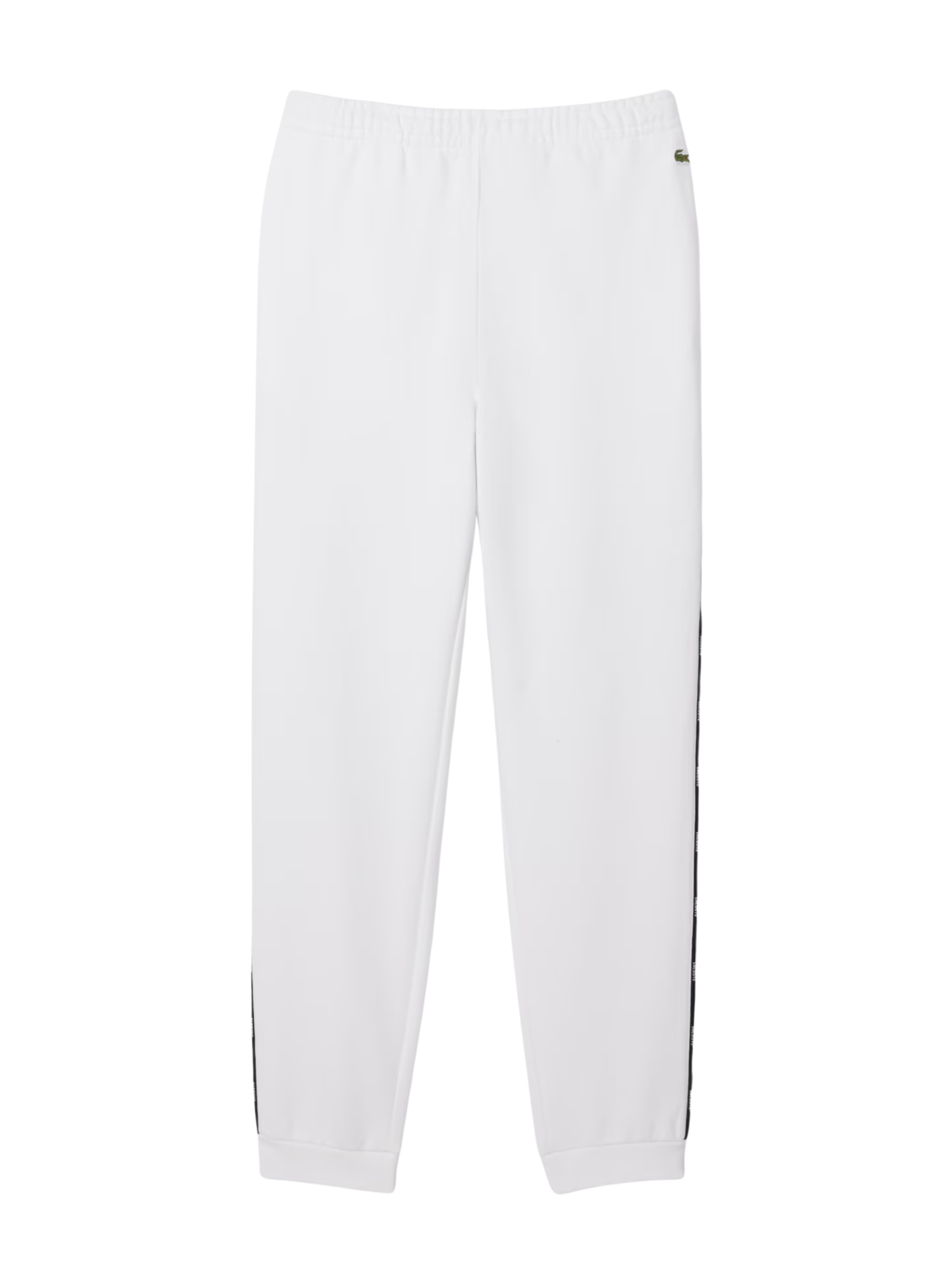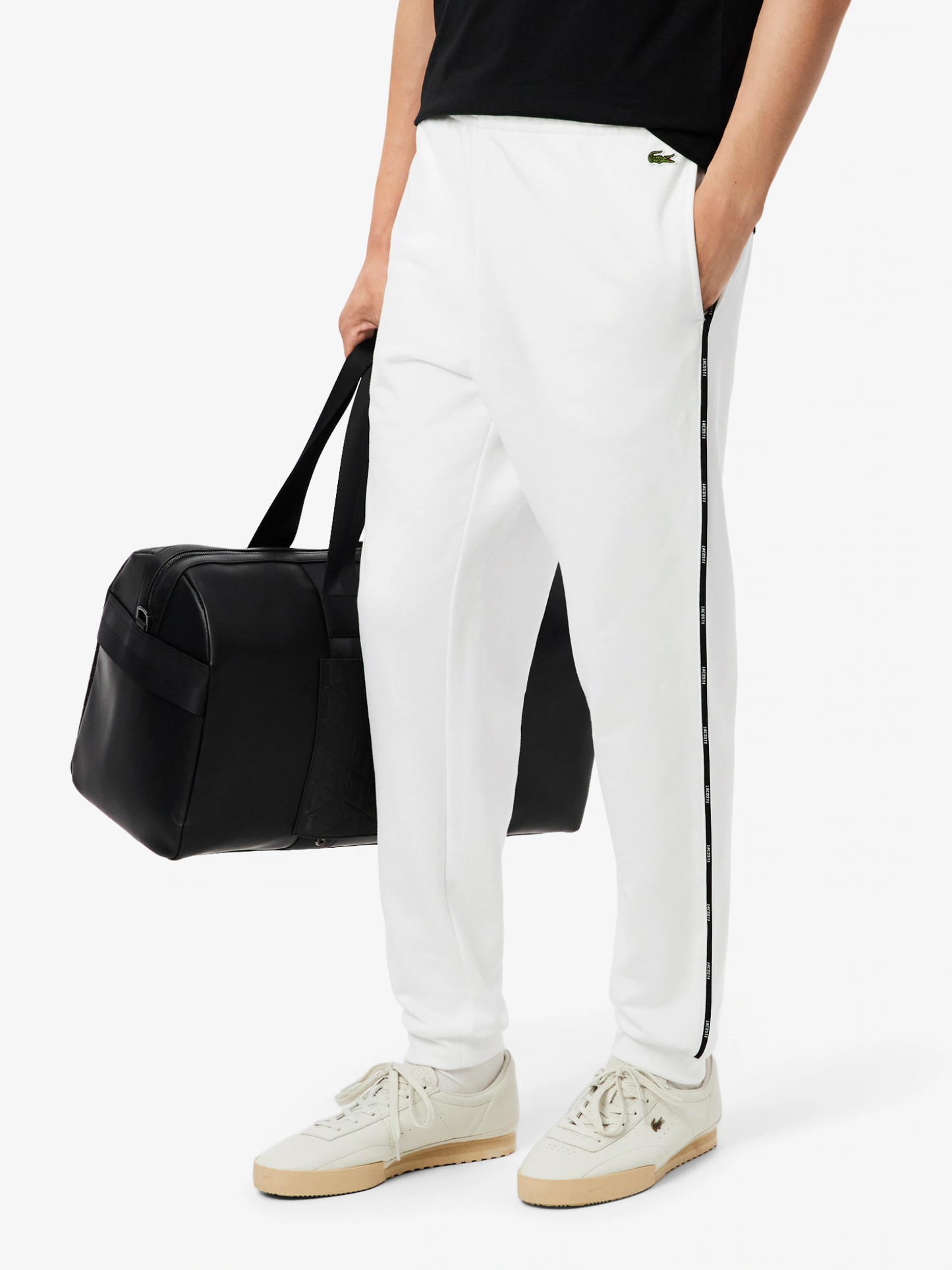 Sweatpants packed with signature details from Lacoste, sportswear creators since 1933. A bold style in comfortable cotton fleece, with a tapered cut and iconic logo trim down the leg. The perfect blend of fashion and sportswear, finished with an embroidered signature crocodile.
