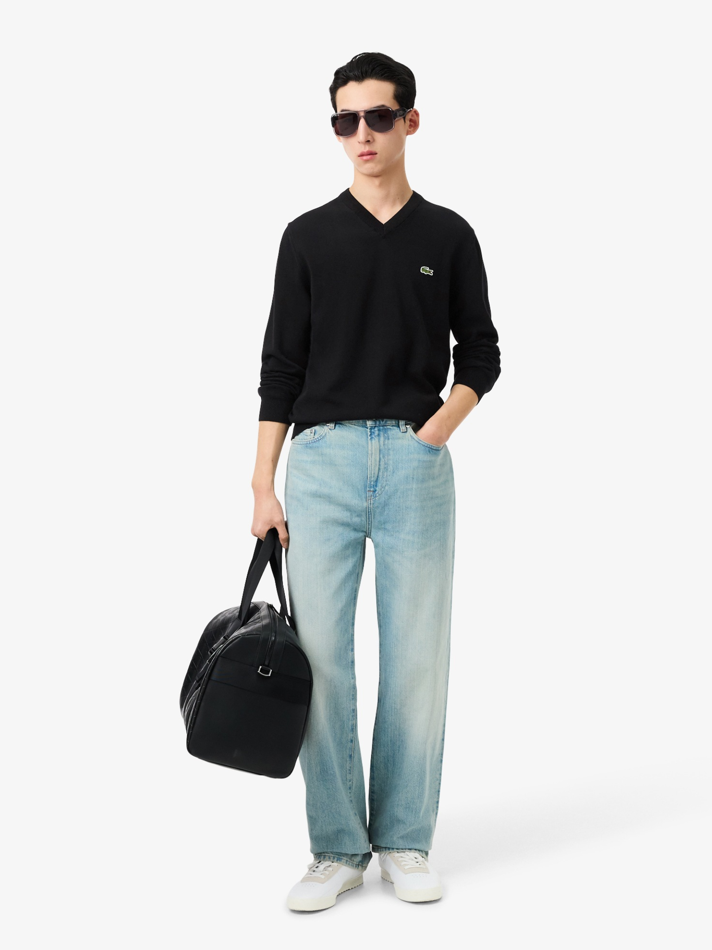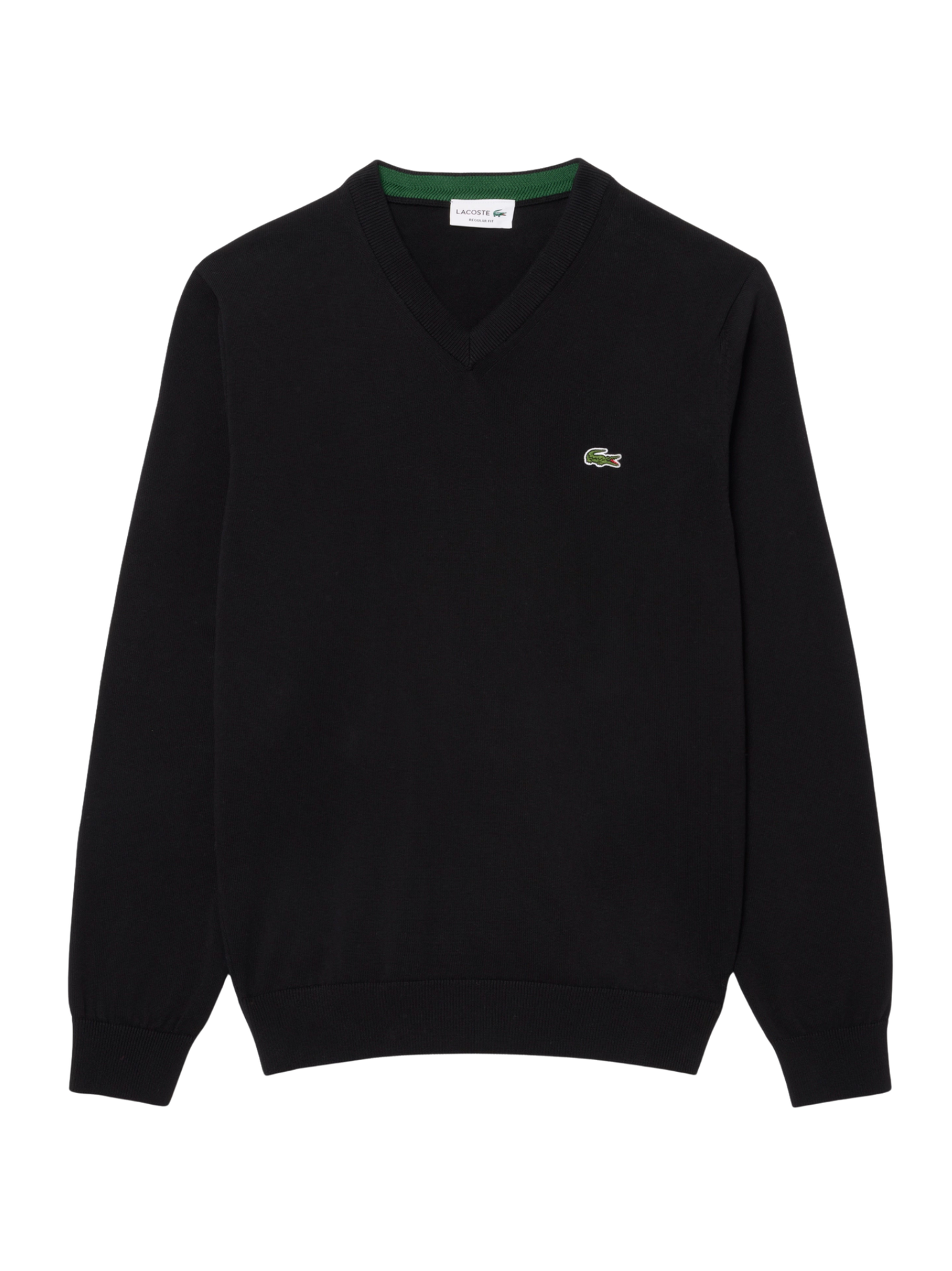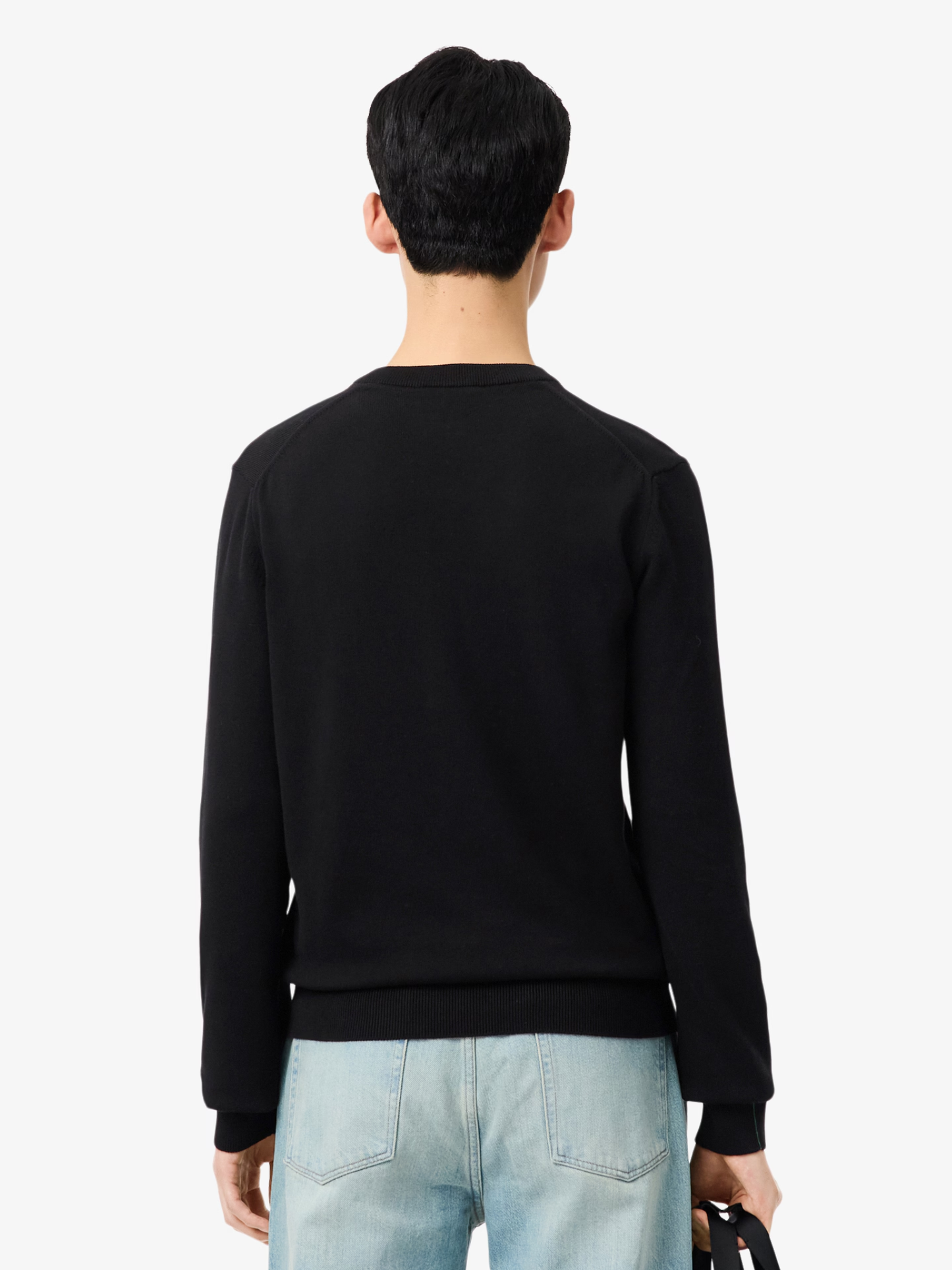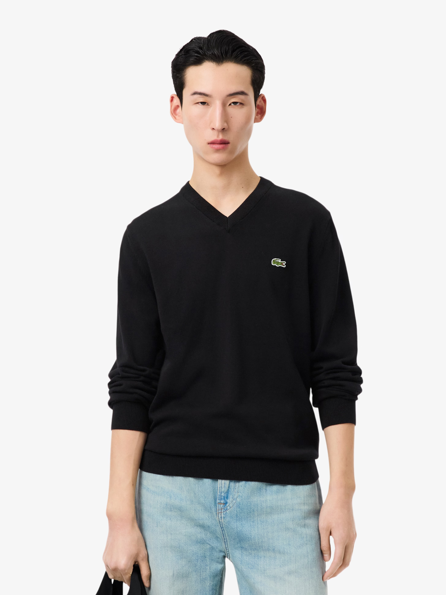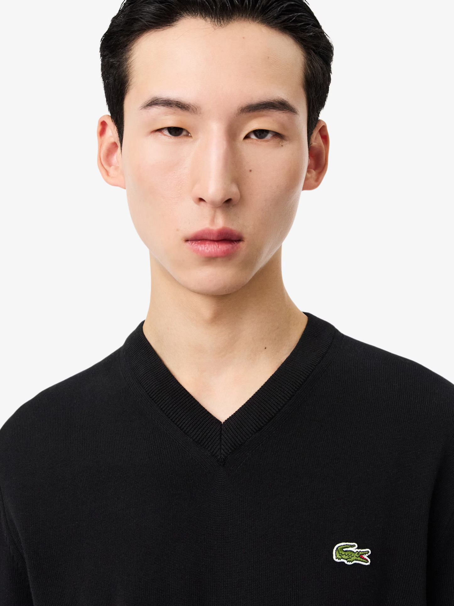 LACOSTE Monochrome Cotton V-neck Sweater Black