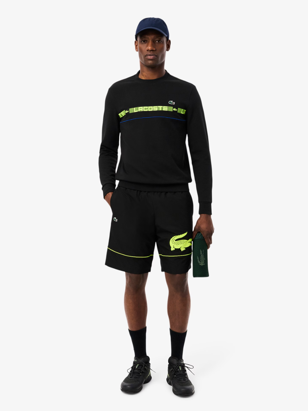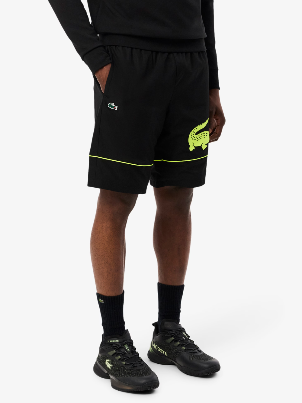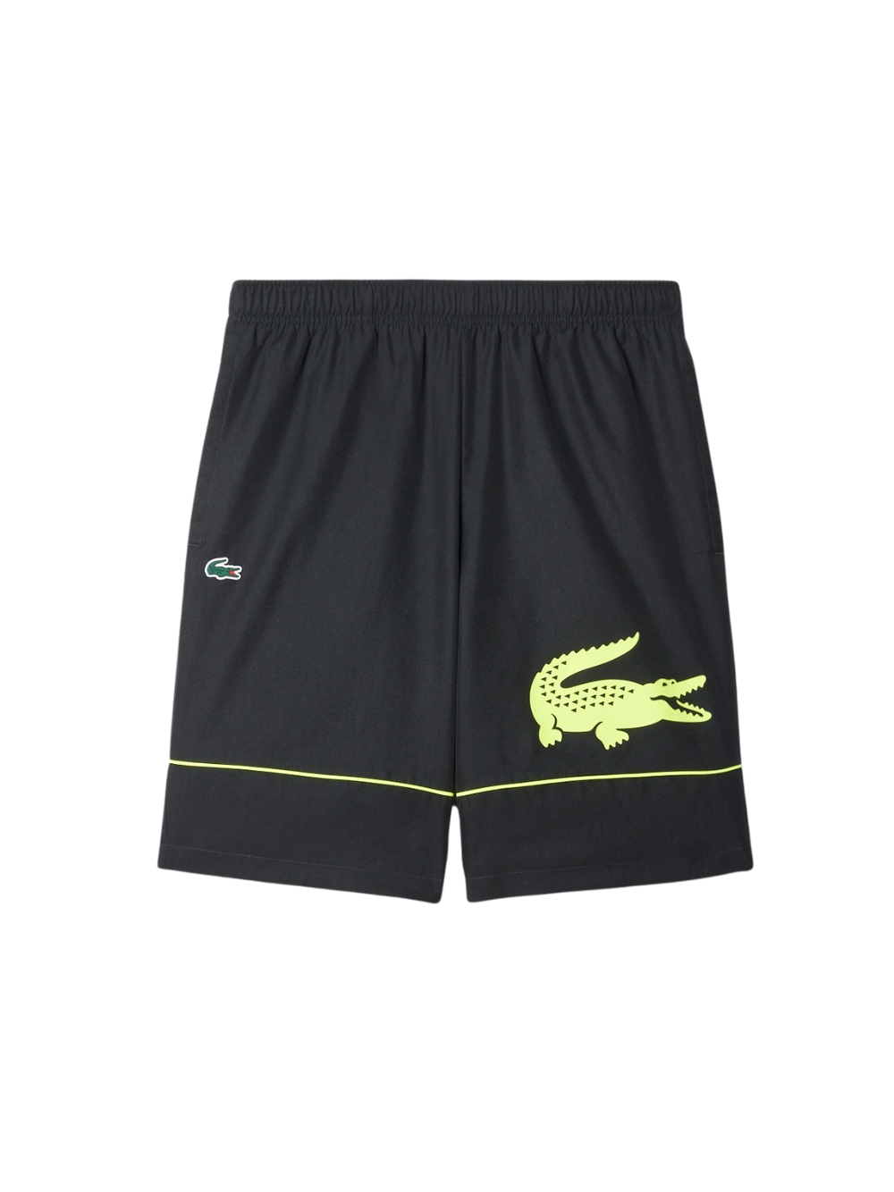 LACOSTE Printed Diamond Taffeta Tennis Shorts Black/Yellow