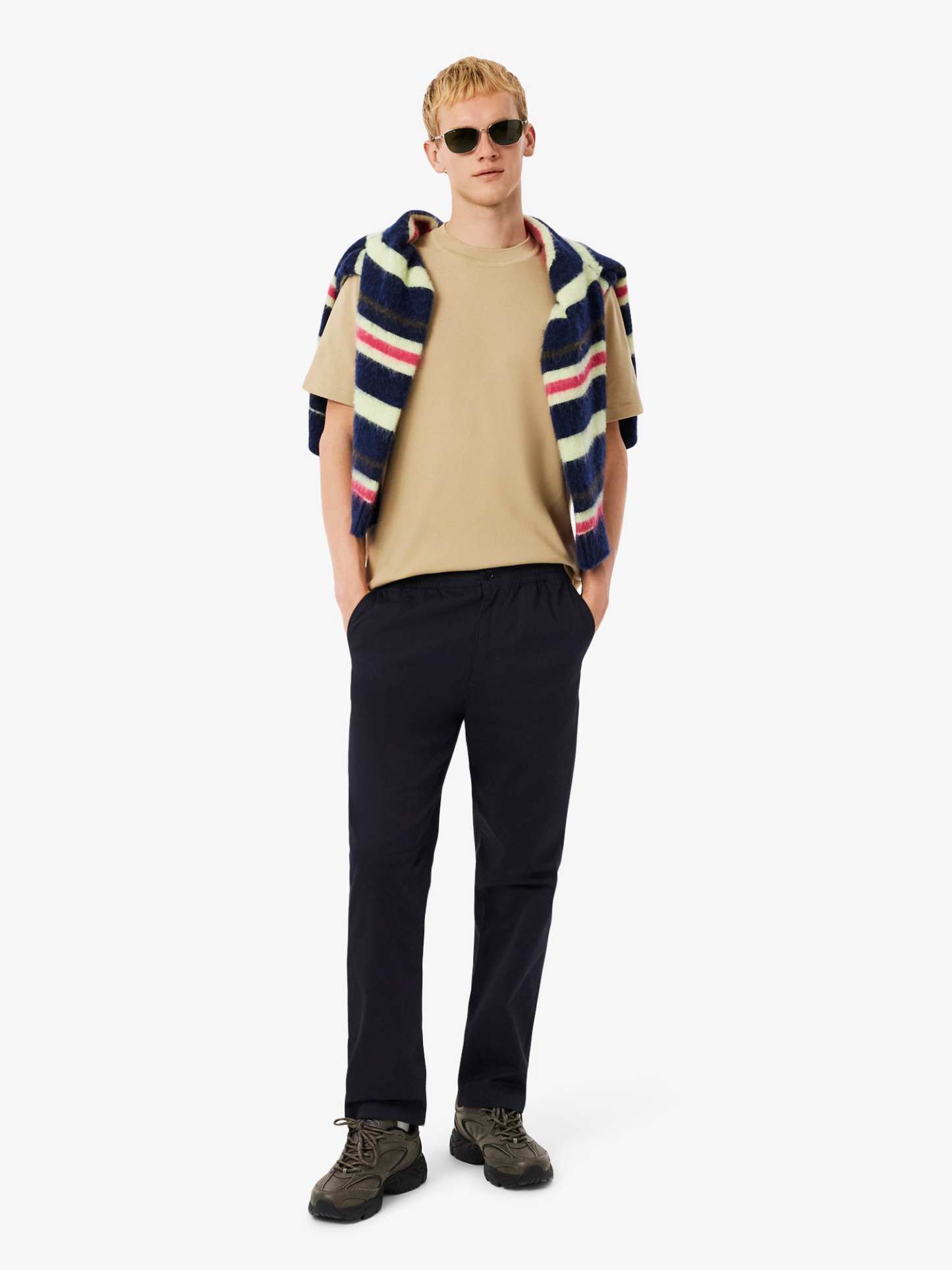 A cross between sweatpants and chinos, signed Lacoste, experts in French elegance since 1933. Made from stretch cotton gabardine with an elasticated waist for maximum comfort. A timeless essential with subtle finish details, including an embroidered crocodile.