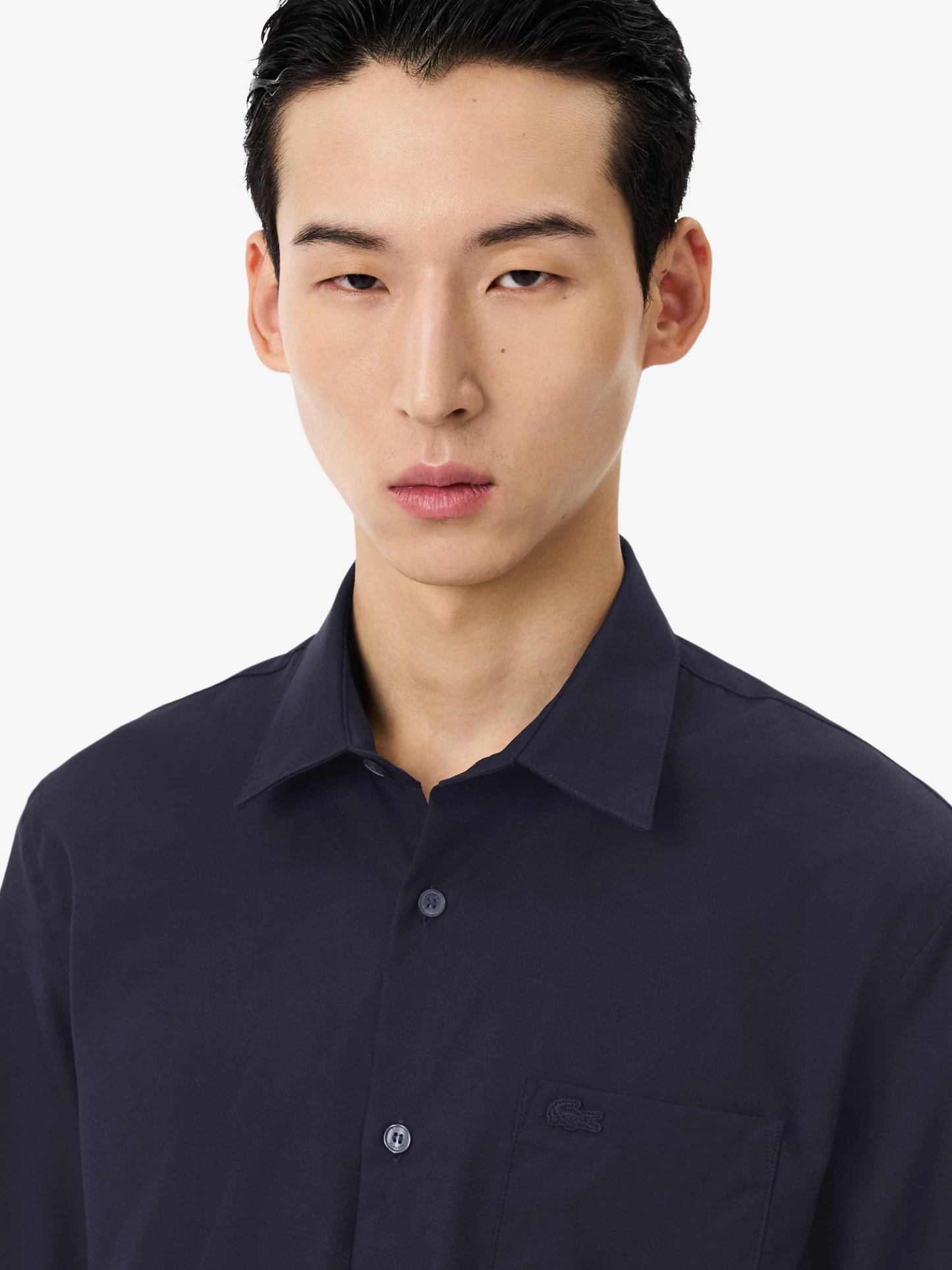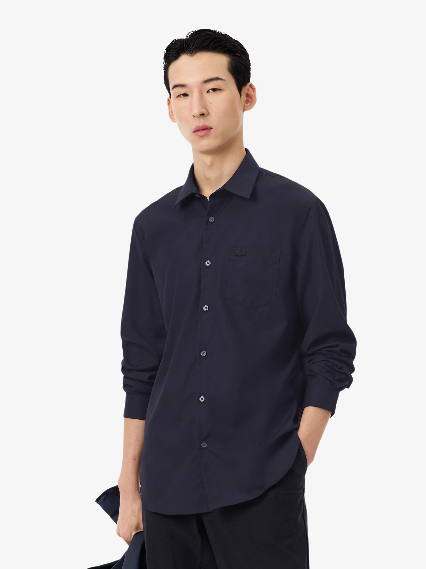 LACOSTE Regular Fit Cotton Poplin Shirt Navy Blue