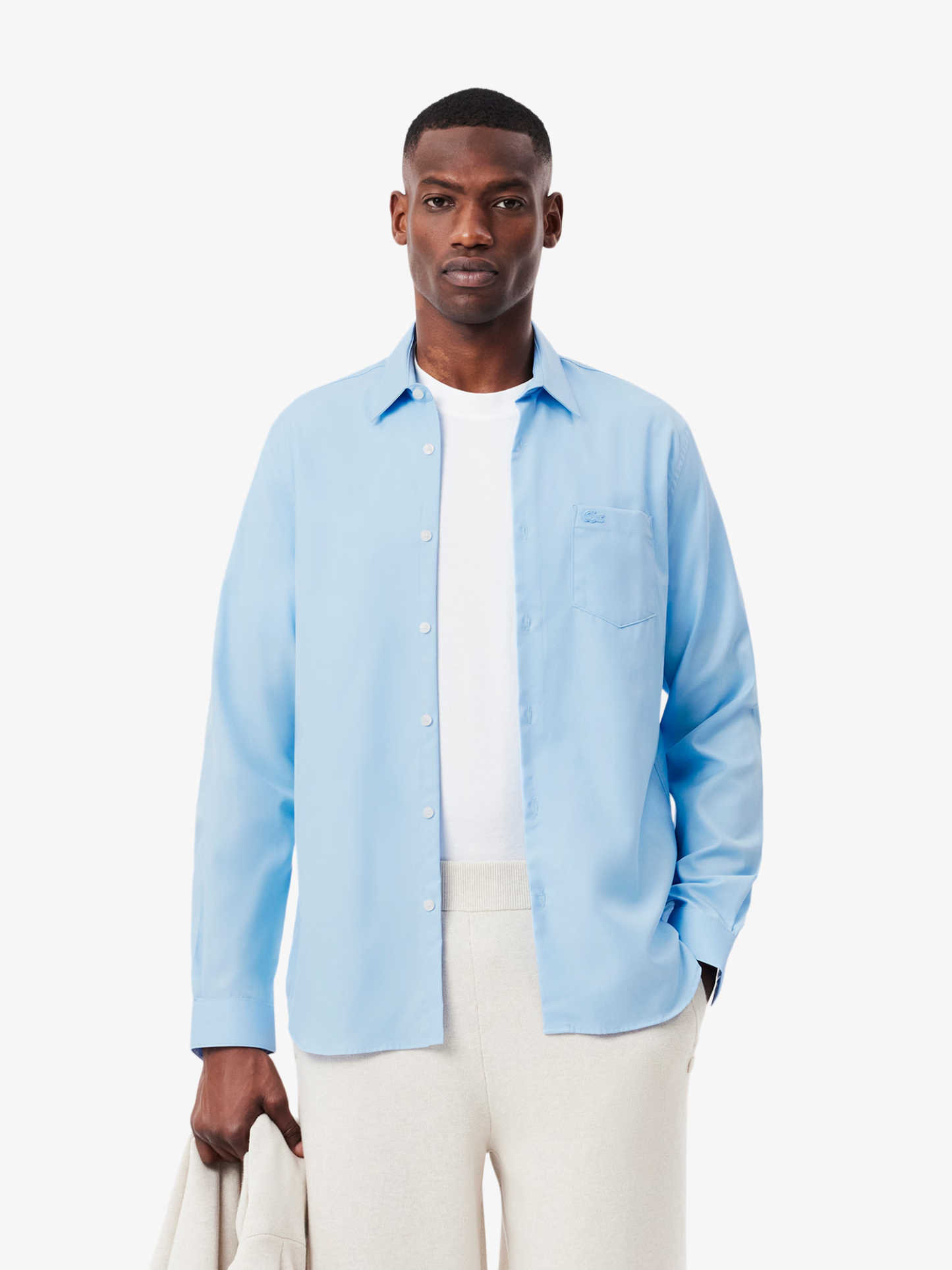 LACOSTE Regular Fit Cotton Poplin Shirt Pale Blue