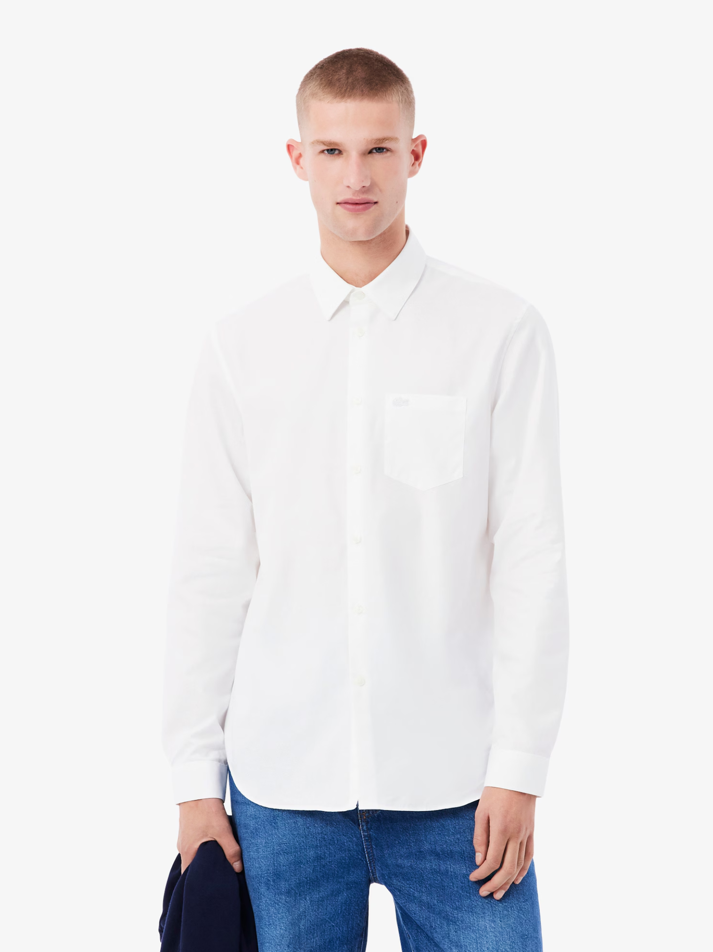 LACOSTE Regular Fit Cotton Poplin Shirt White