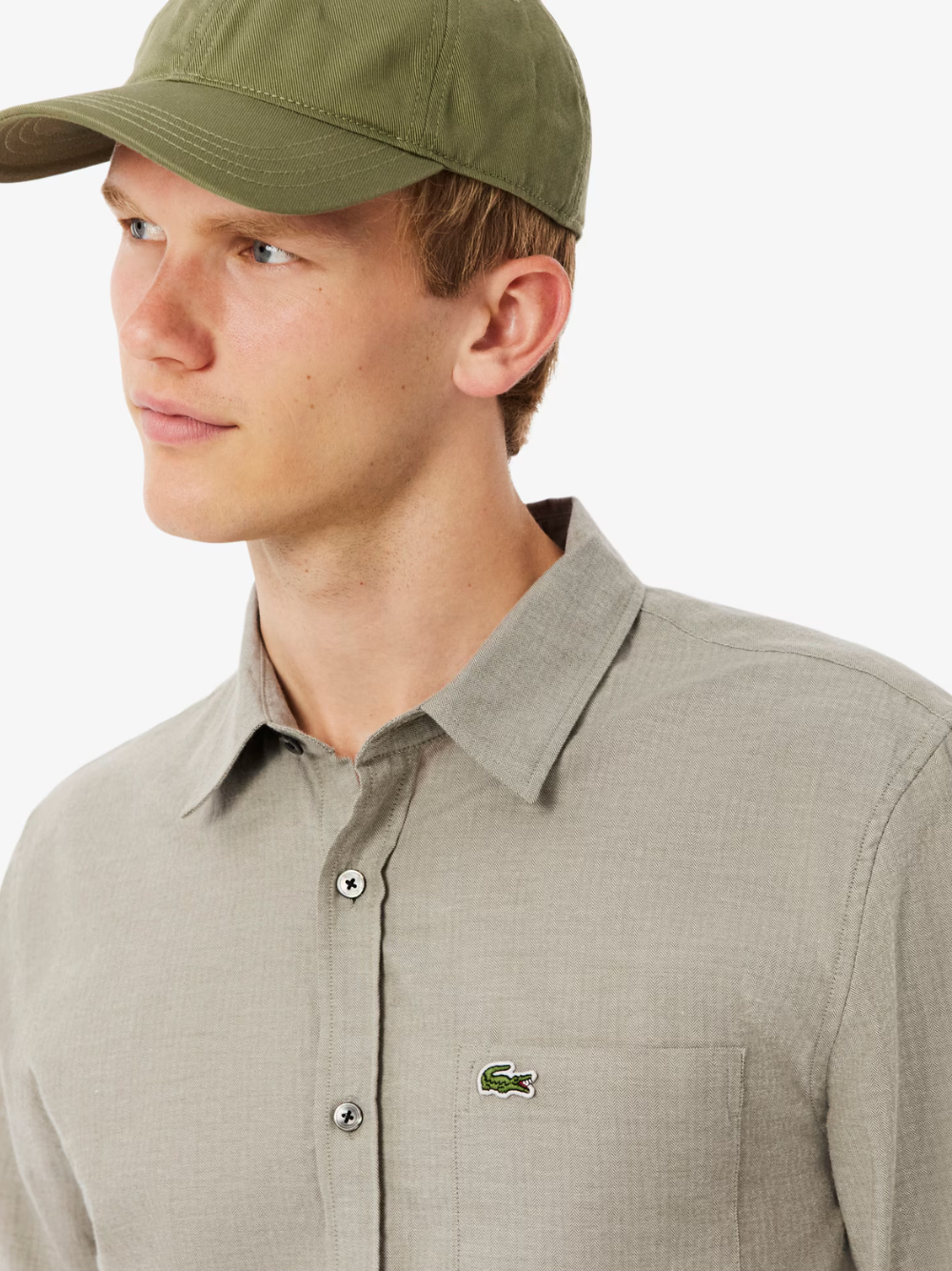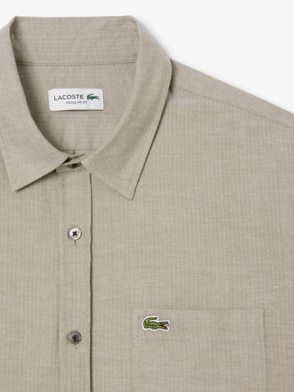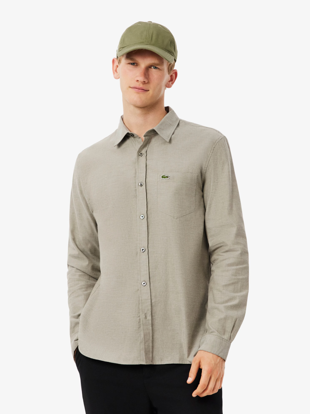 LACOSTE Regular Fit Cotton Shirt Green/White
