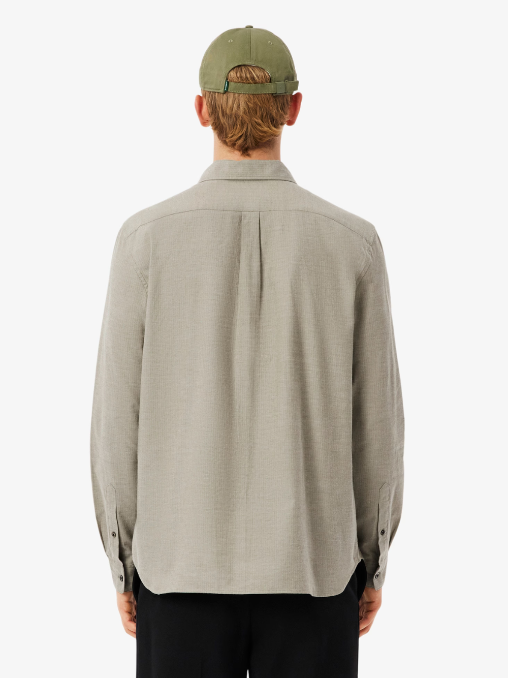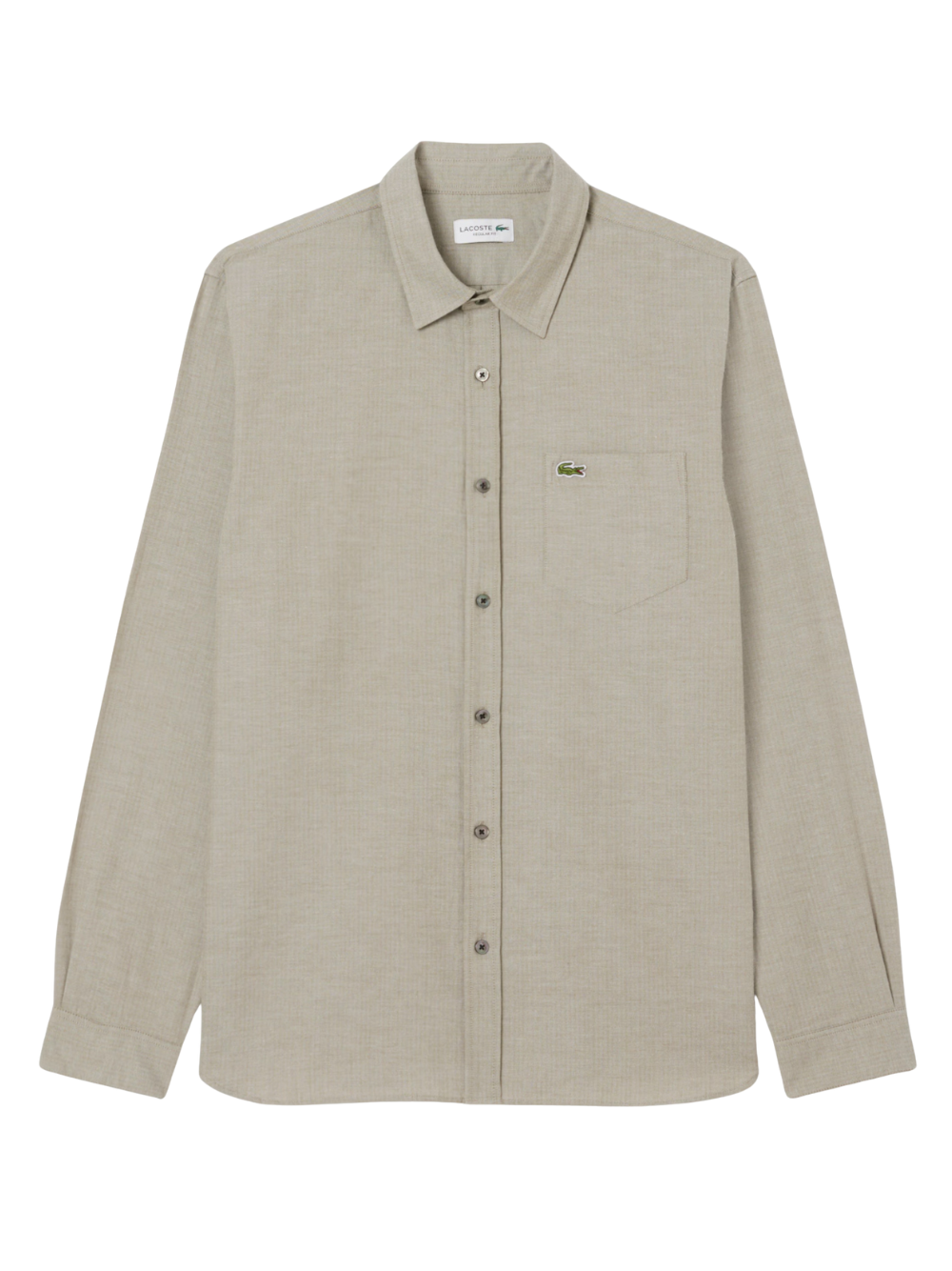 This shirt is a lesson in French chic from Lacoste. Made from a sophisticated fuzzy-effect fabric with a subtle chevron motif. A chic, relaxed style, finished with an embroidered signature crocodile and luxe details including mother-of-pearl buttons.