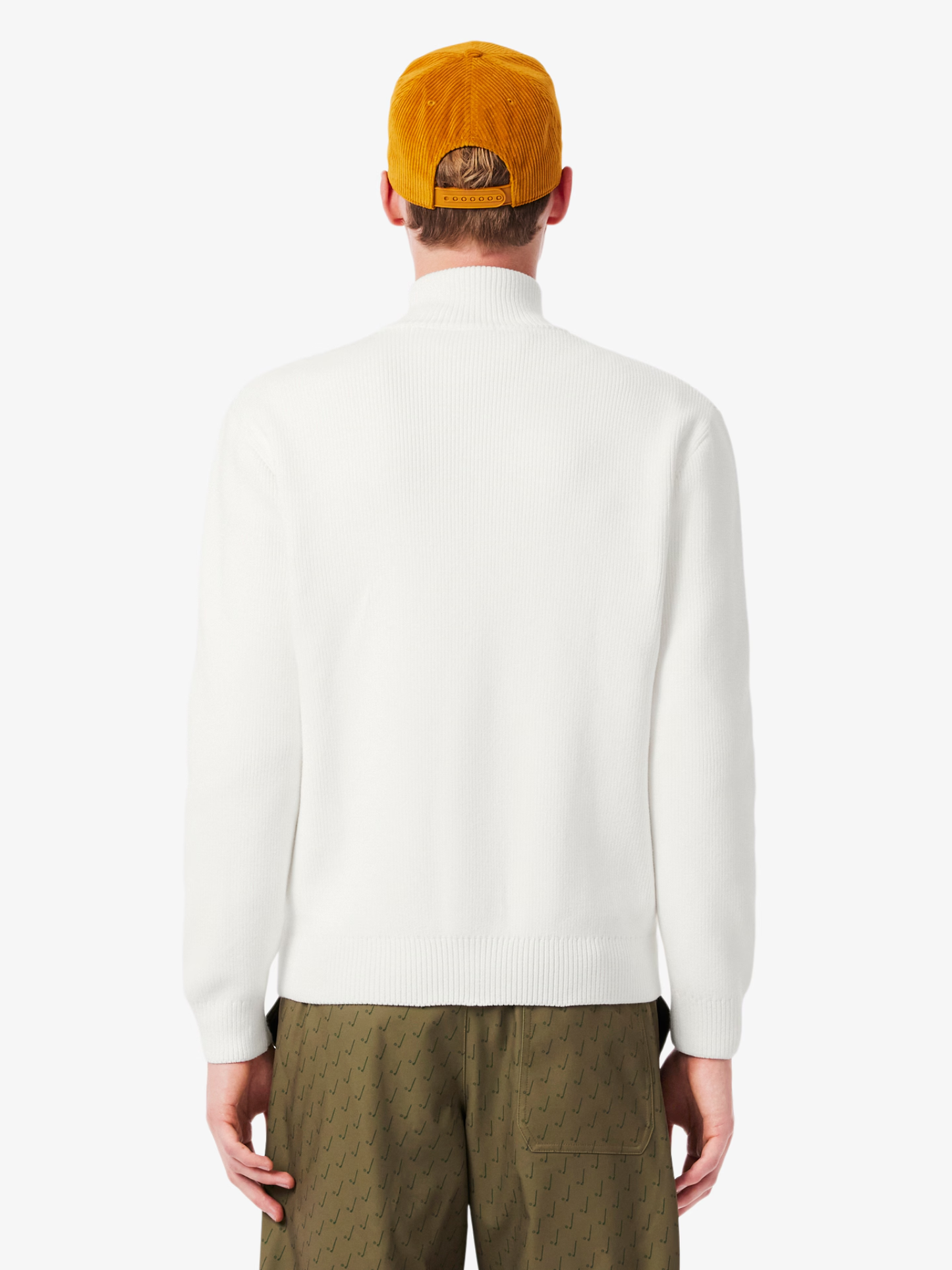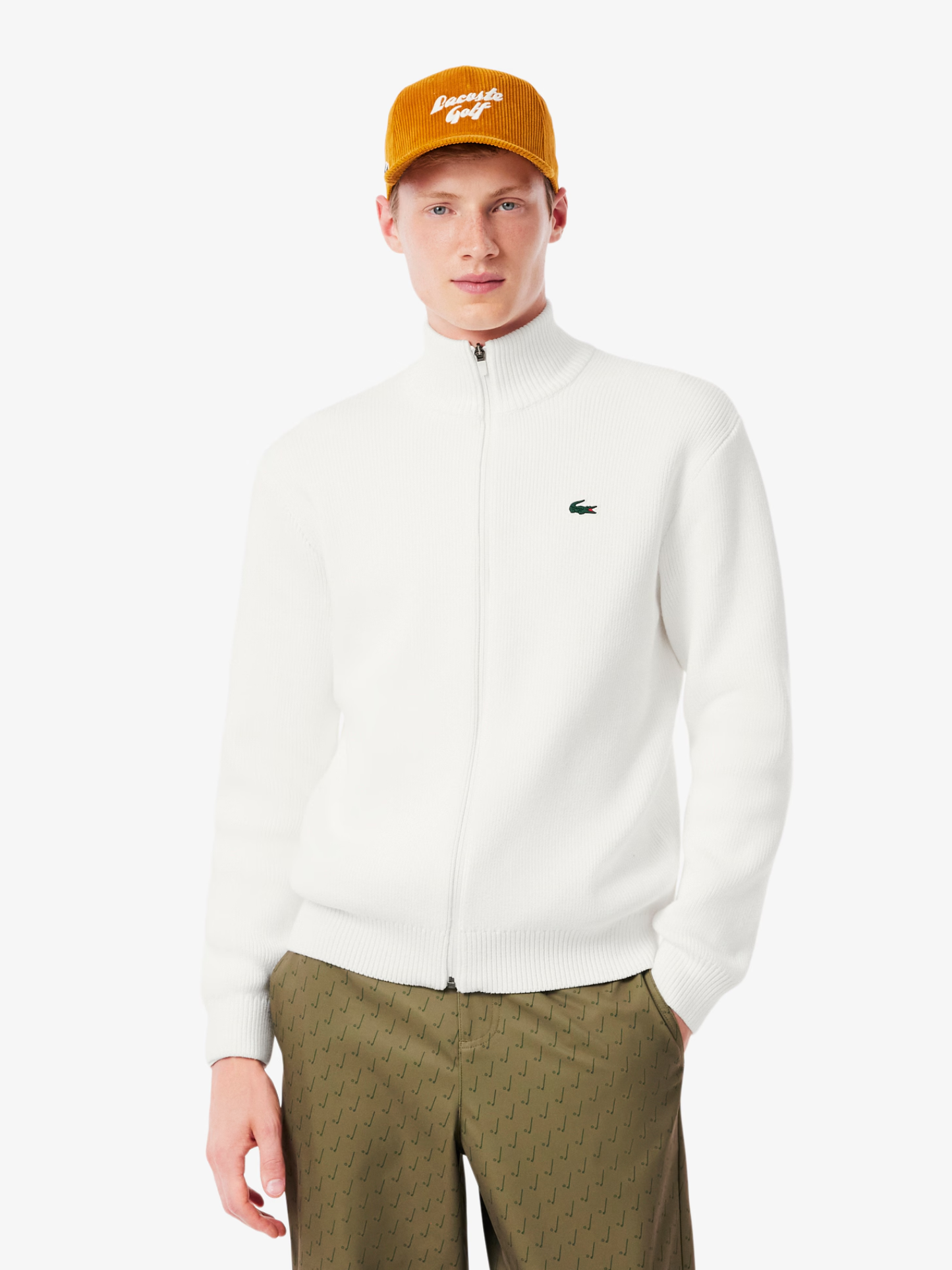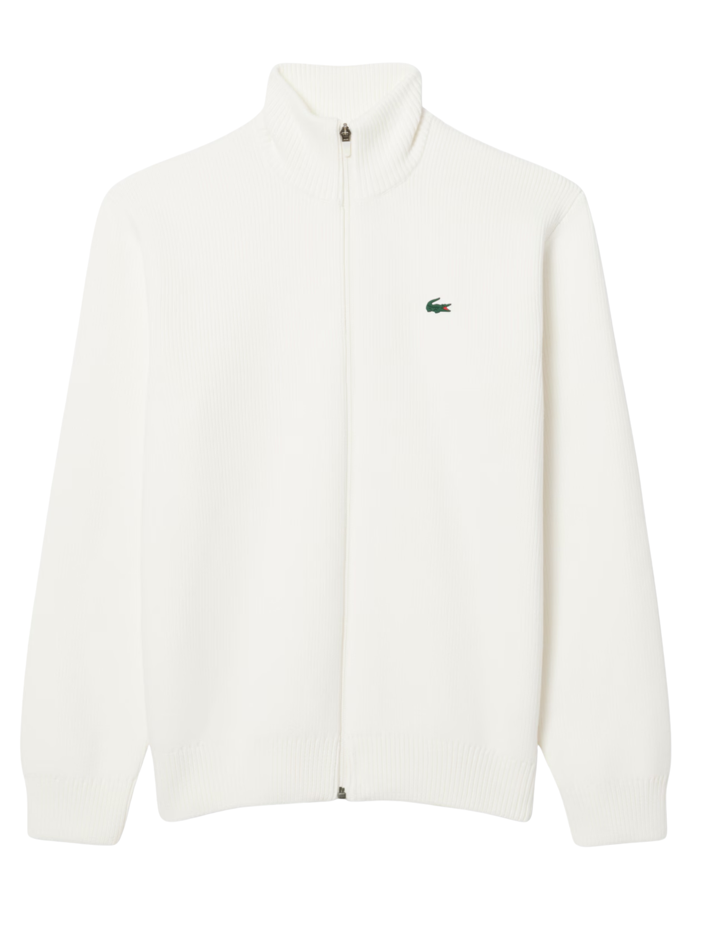 This zipped sweater, tried and tested by Lacoste players, is a golfing wardrobe essential. A straight-cut piece with a high neck, made from warm, comfortable ribbed knit cotton. A practical piece with a minimalist design, finished with a signature crocodile for an added touch of timeless elegance.