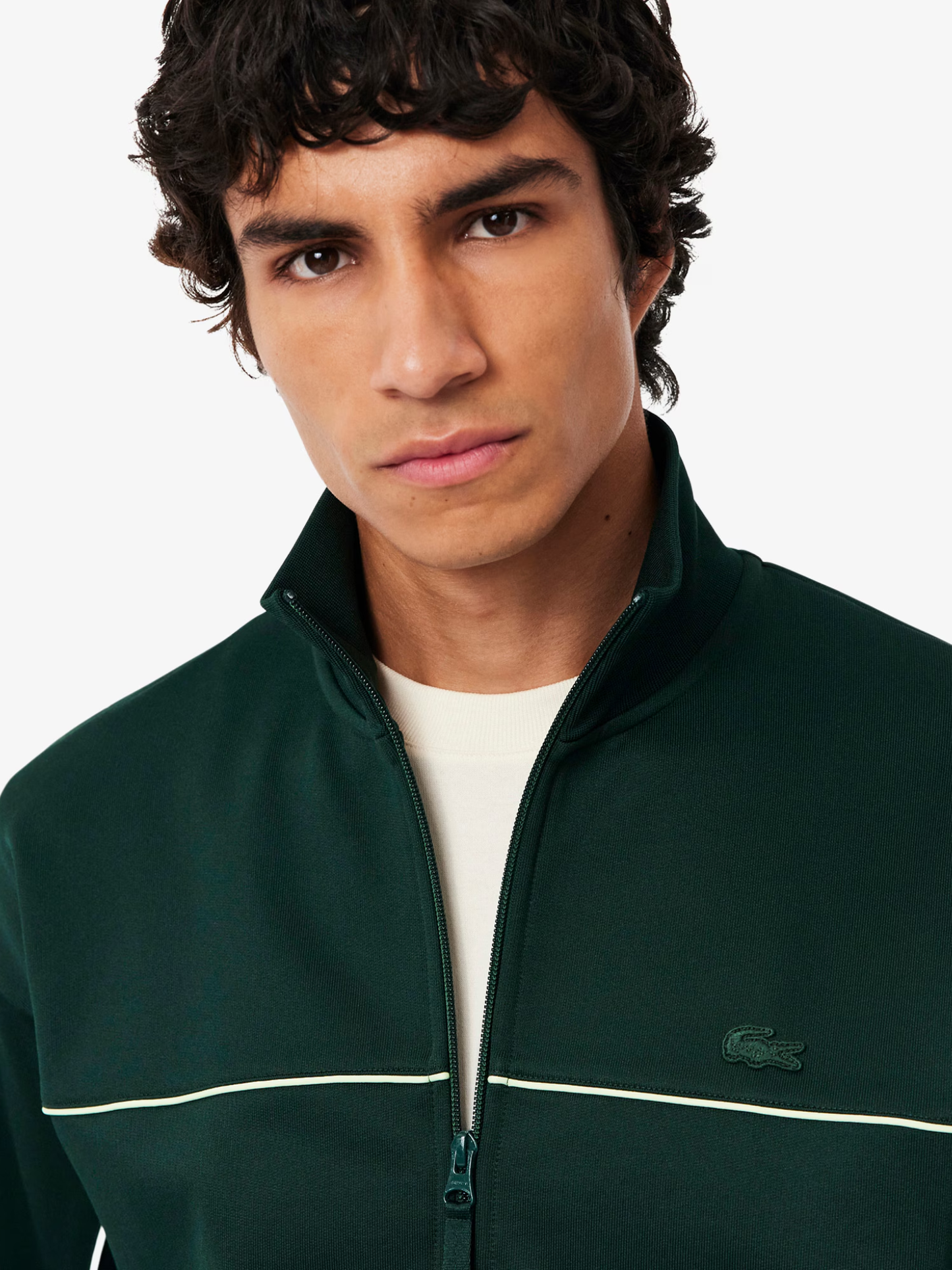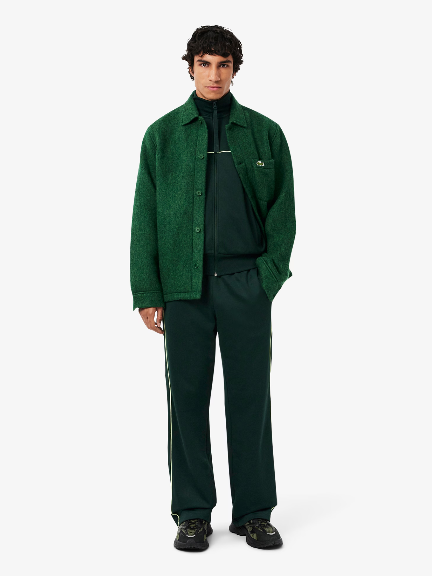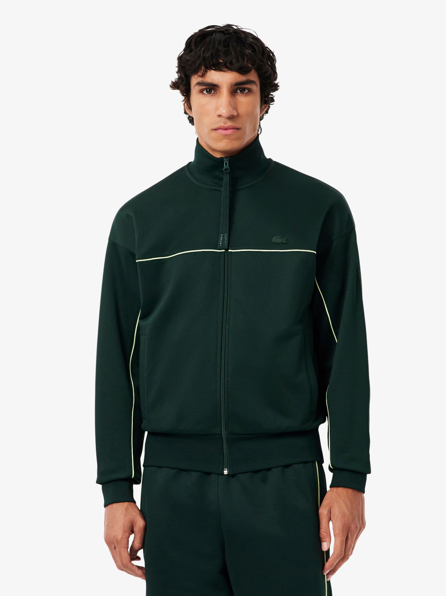 LACOSTE Satin Effect Zipped Fleece Sweatshirt Sinople Green