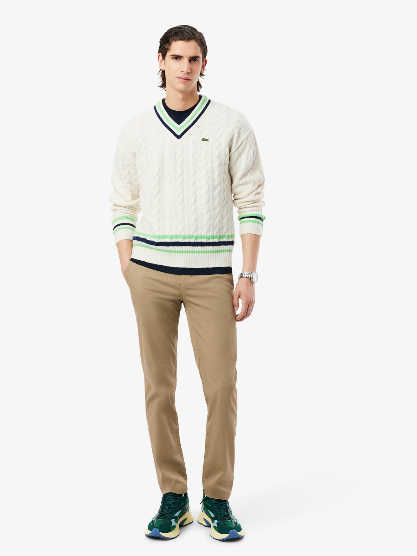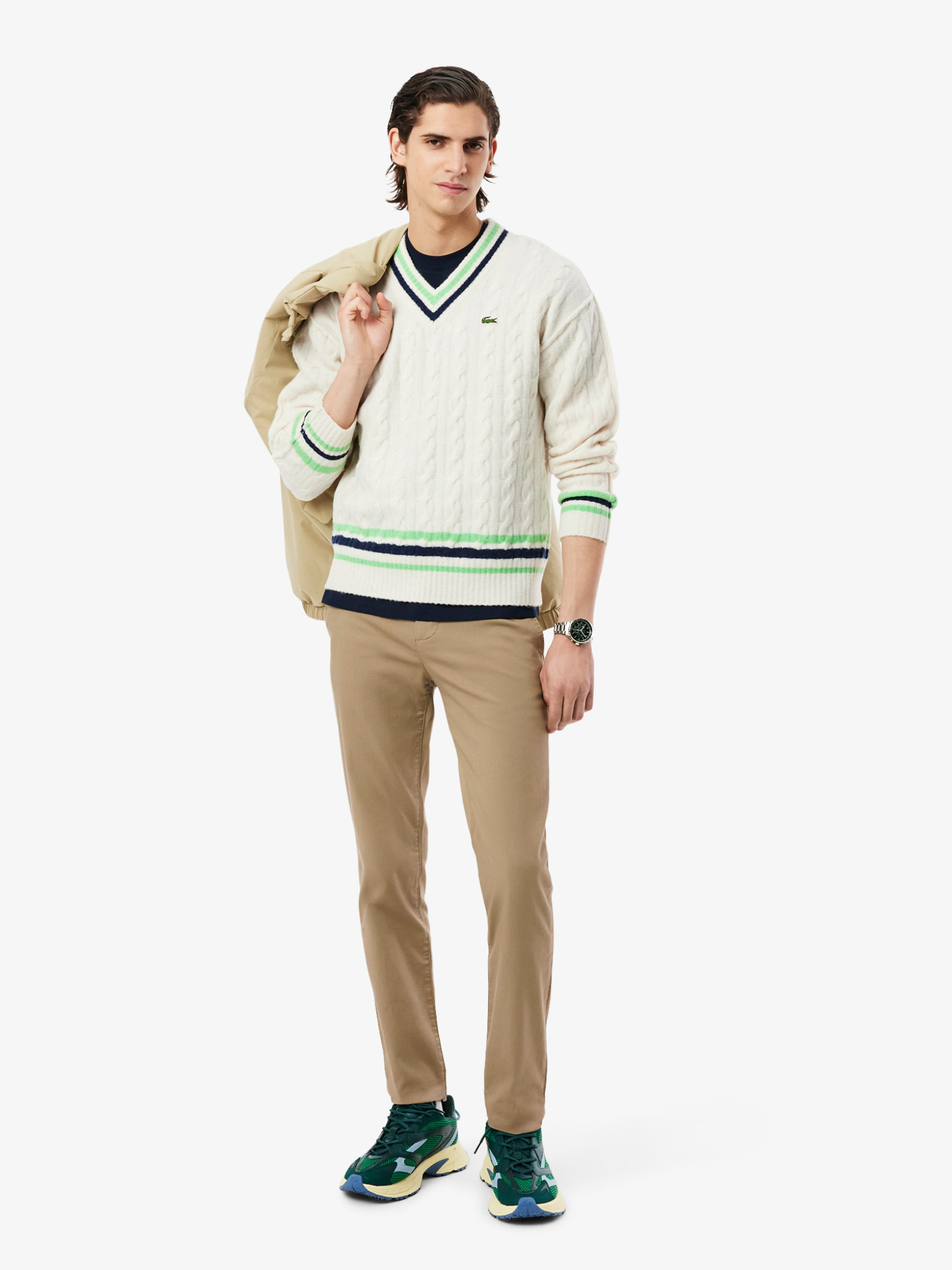 These chino pants are a Lacoste wardrobe essential. Made from supple but hardwearing stretch cotton gabardine, the perfect weight for year-round wear, with a fitted cut. A timeless essential with subtle finish details, including a crocodile above one of the welt pockets.