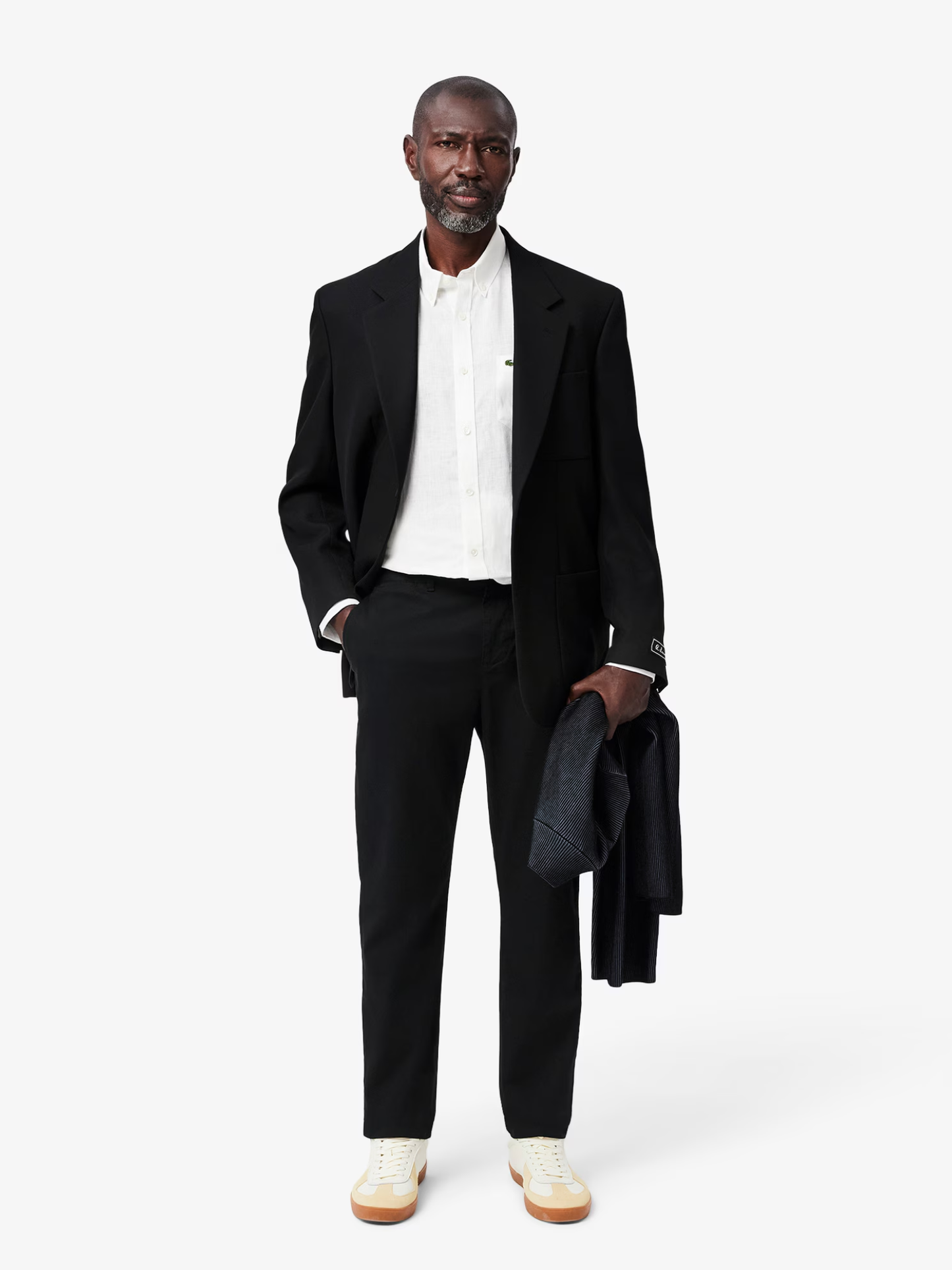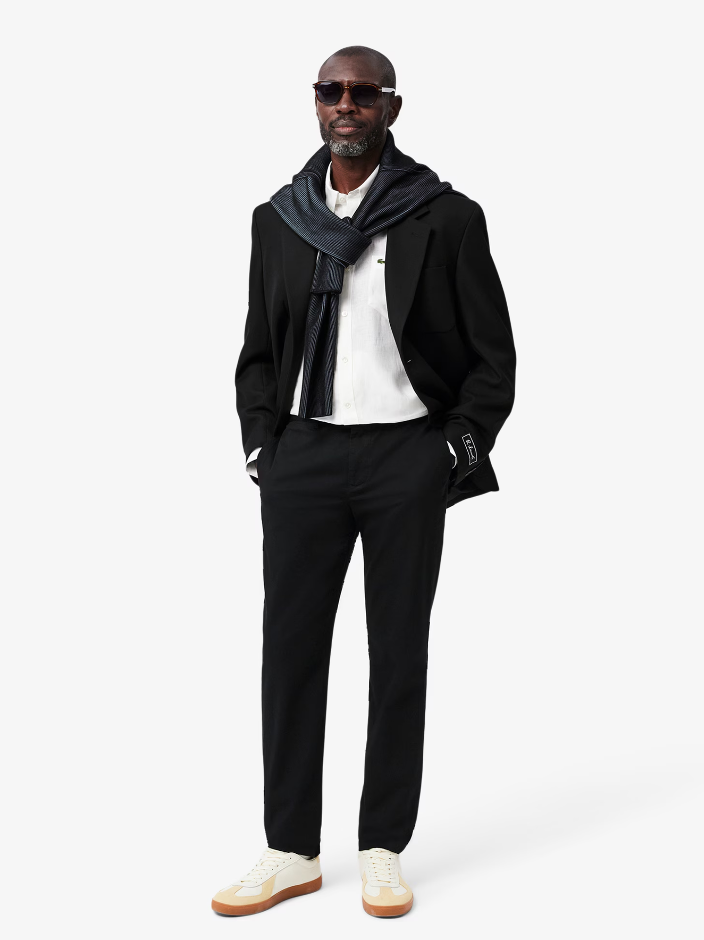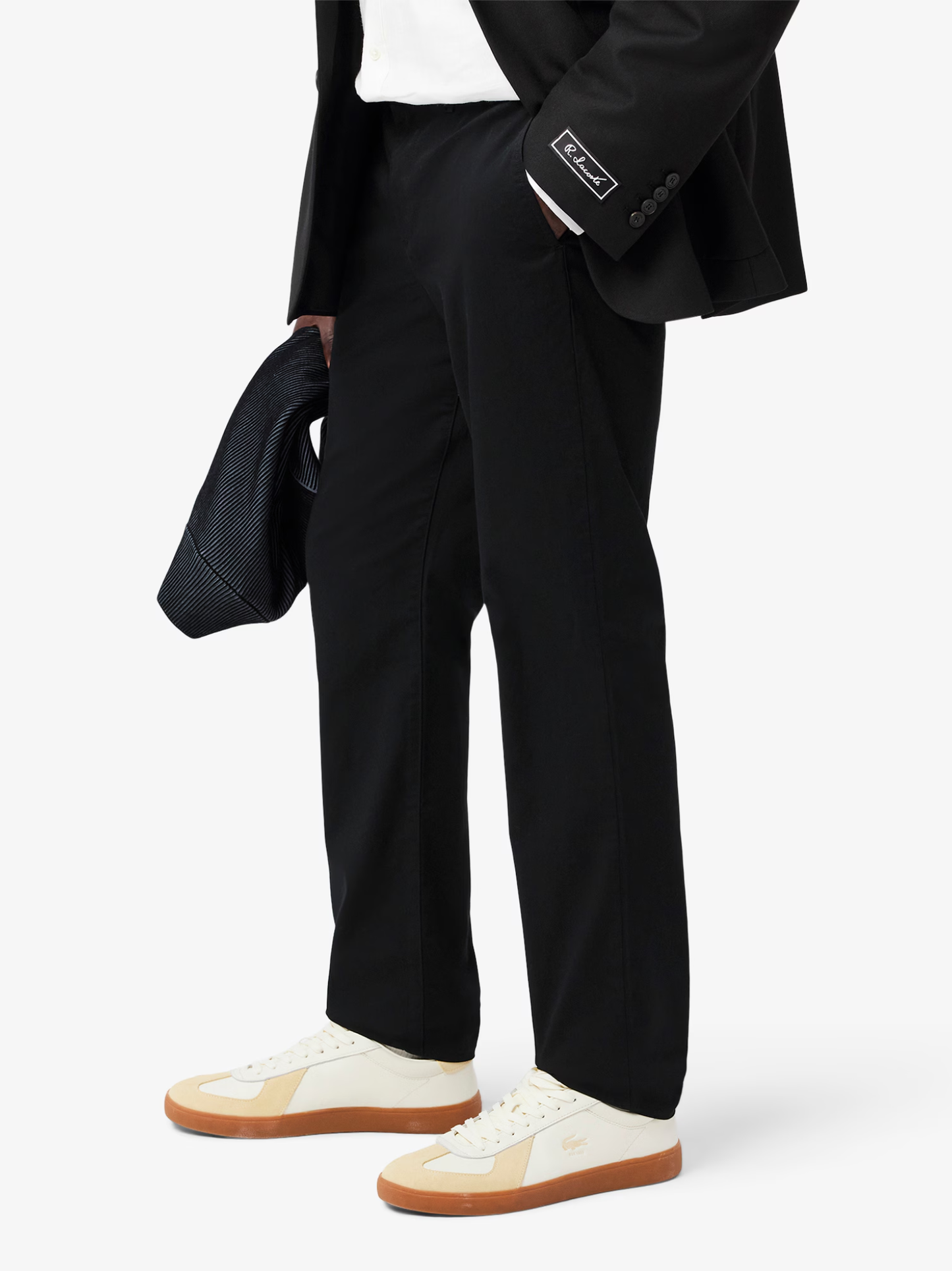 These chino pants are a Lacoste wardrobe essential. Made from supple but hardwearing stretch cotton gabardine, the perfect weight for year-round wear, with a fitted cut. A timeless essential with subtle finish details, including a crocodile above one of the welt pockets.