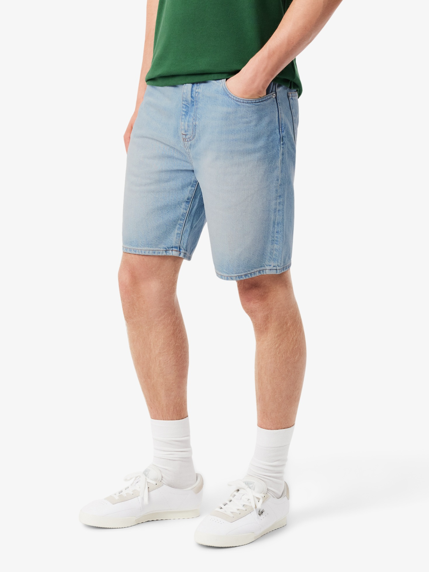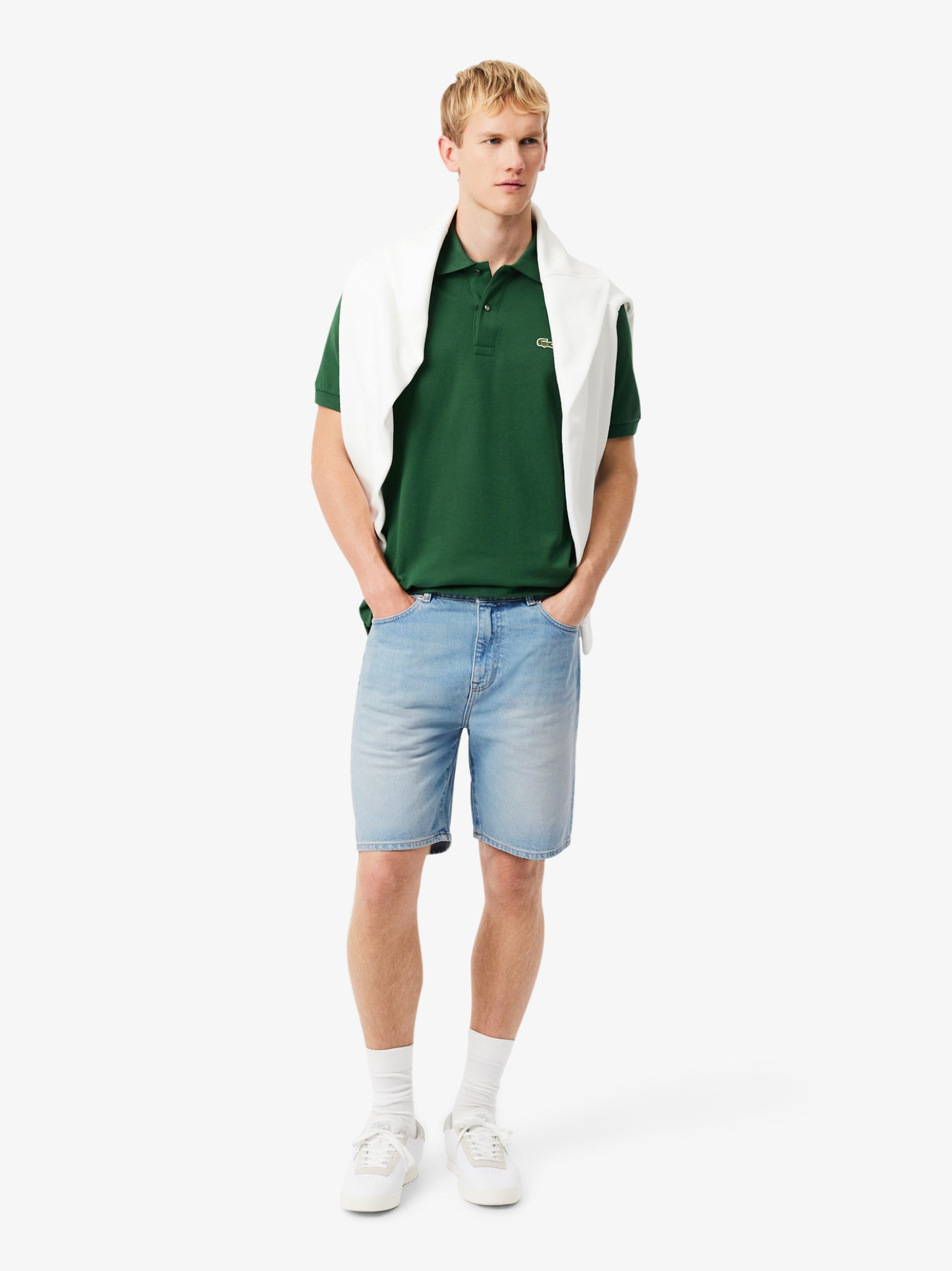 These denim Bermuda shorts are an elegant Lacoste take on a menswear essential. Made from lightly washed canvas, with a classic five-pocket cut. Featuring sophisticated details, including iconic Lacoste green seams on the pockets, for a contemporary feel. A relaxed, chic style.