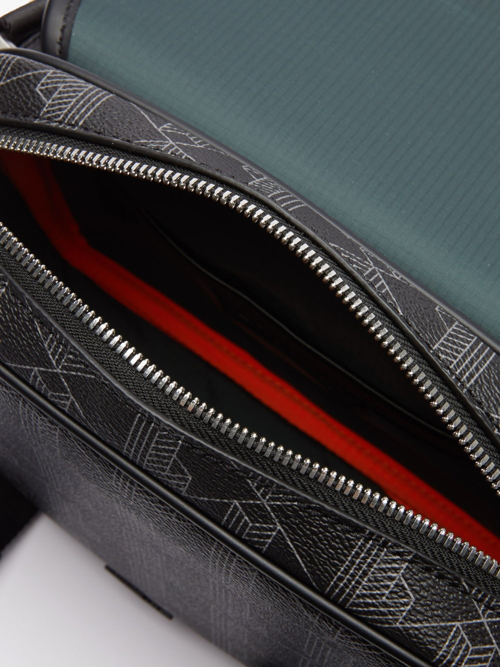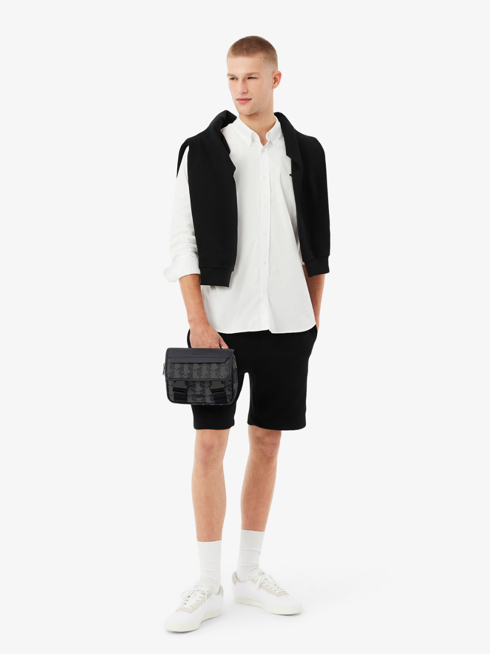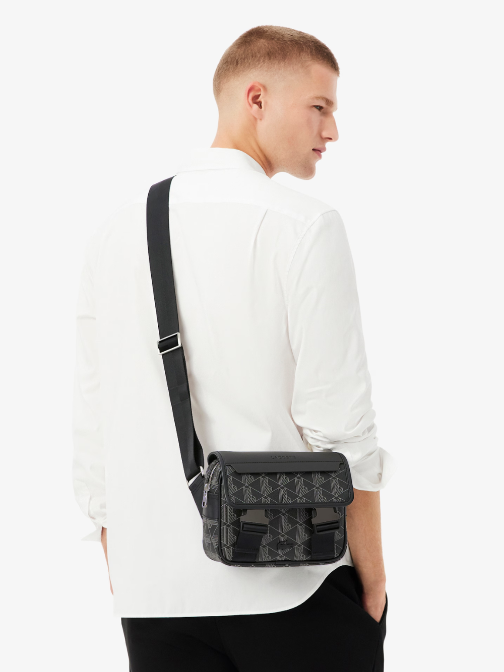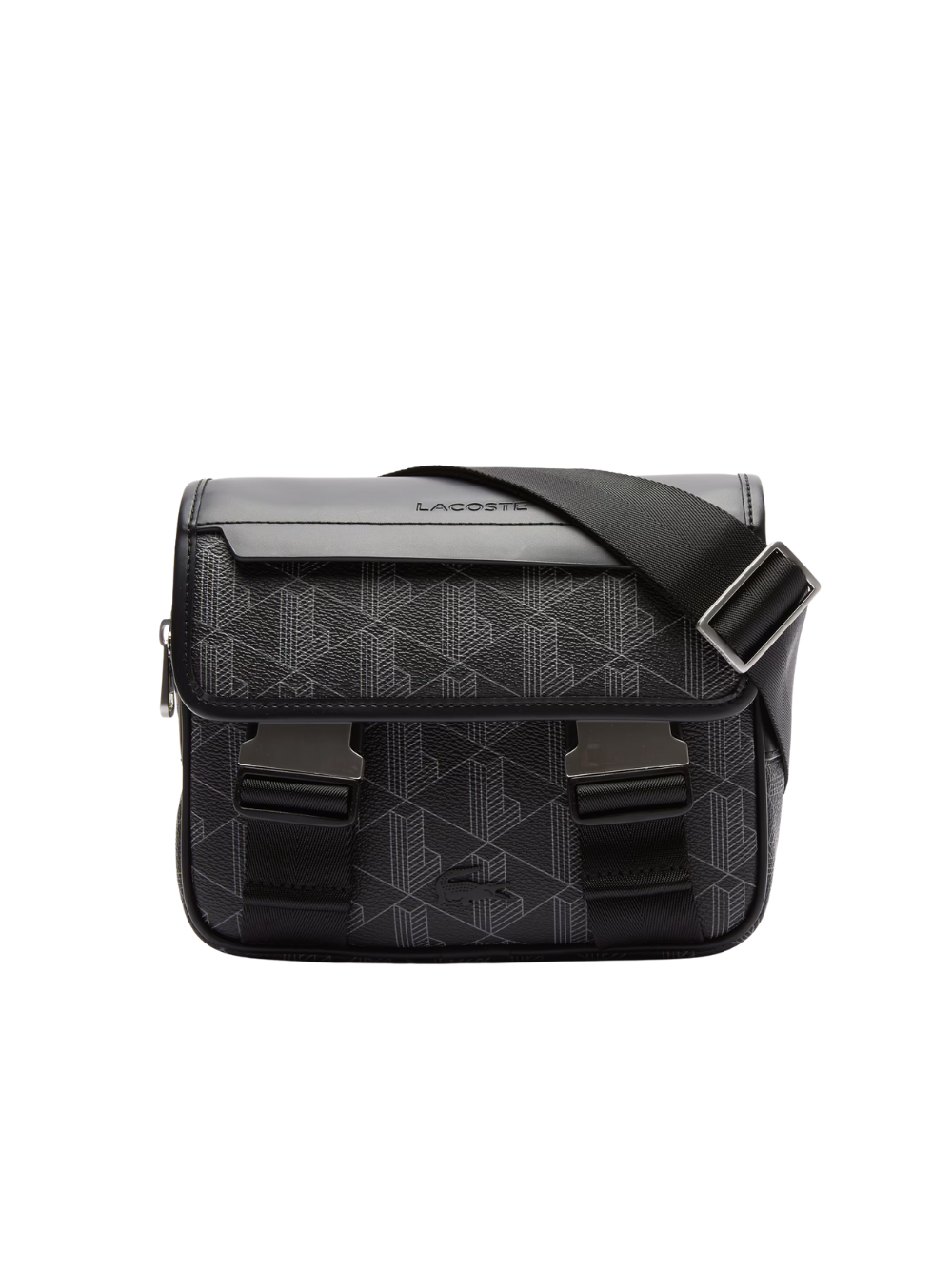 LACOSTE The Blend Clip Flap Satchel Monogram Black/Grey