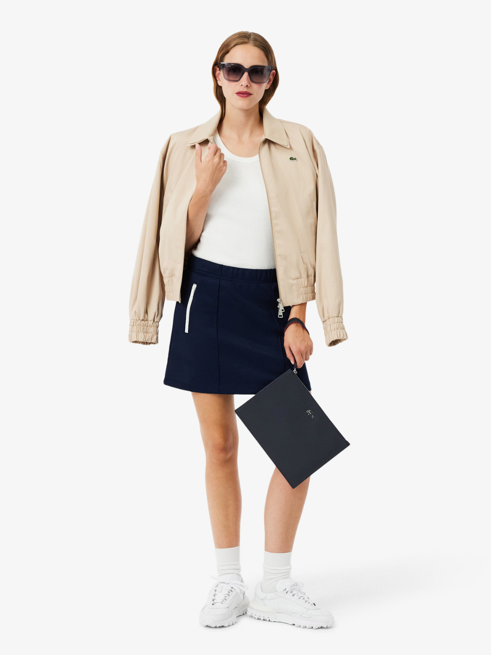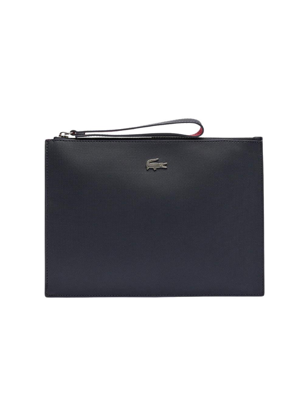 Surprisingly roomy, this zippered gusseted clutch in coated petit piqué canvas has an interior pocket and a wrist loop. Slip it into the matching bag.