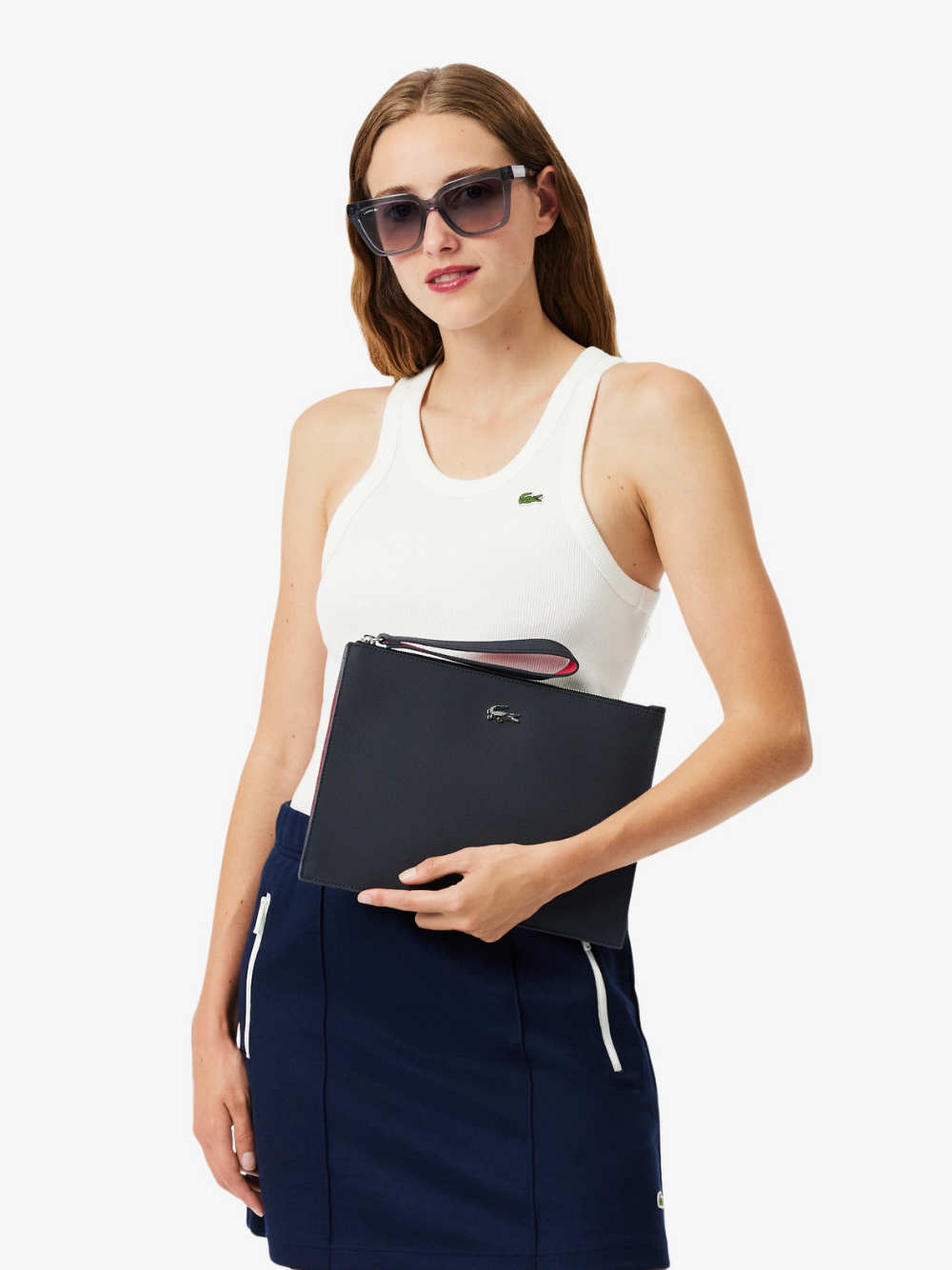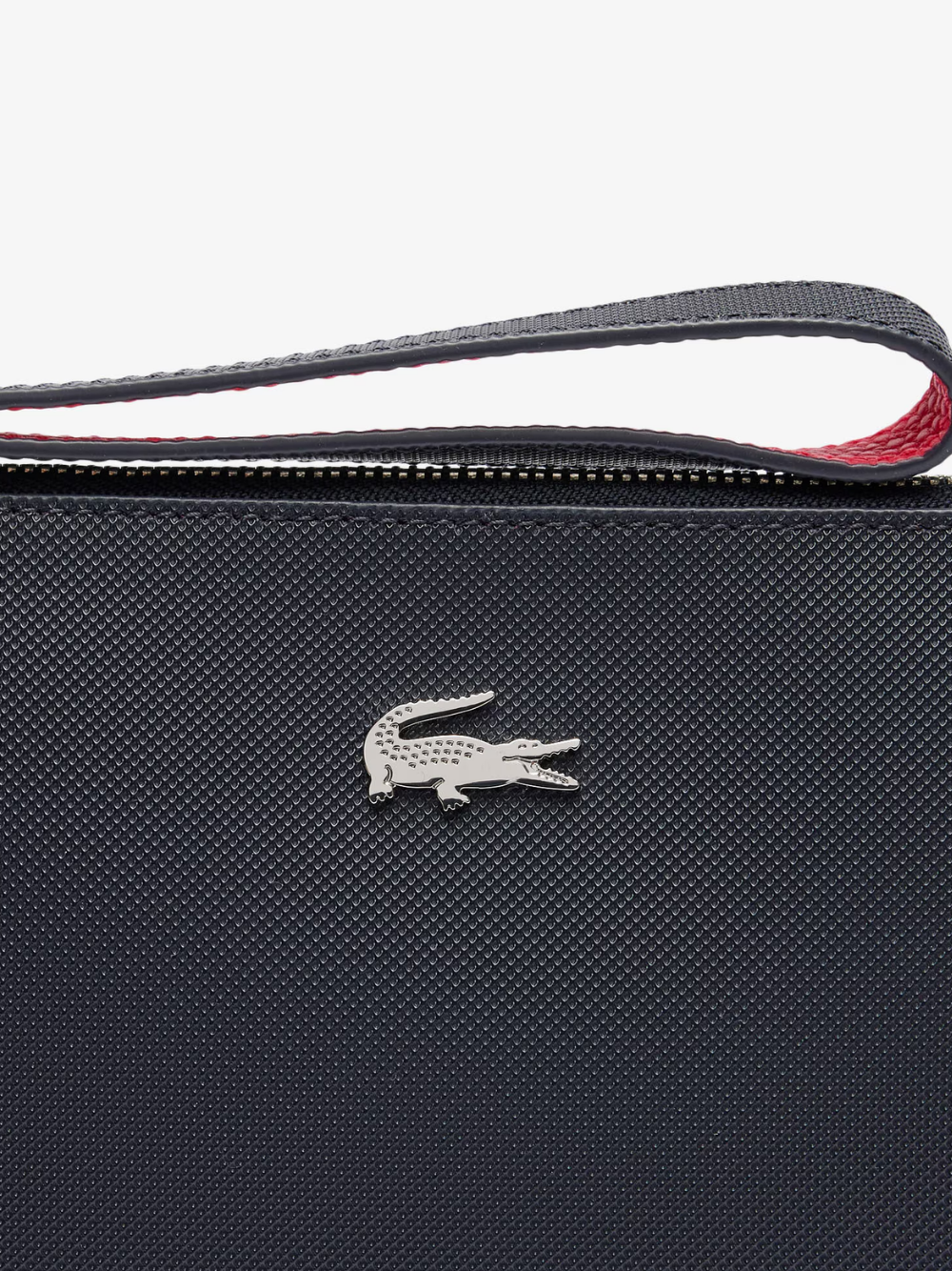 LACOSTE WOMEN Anna Coated Piqué Canvas Pouch Abimes Petunia Grey