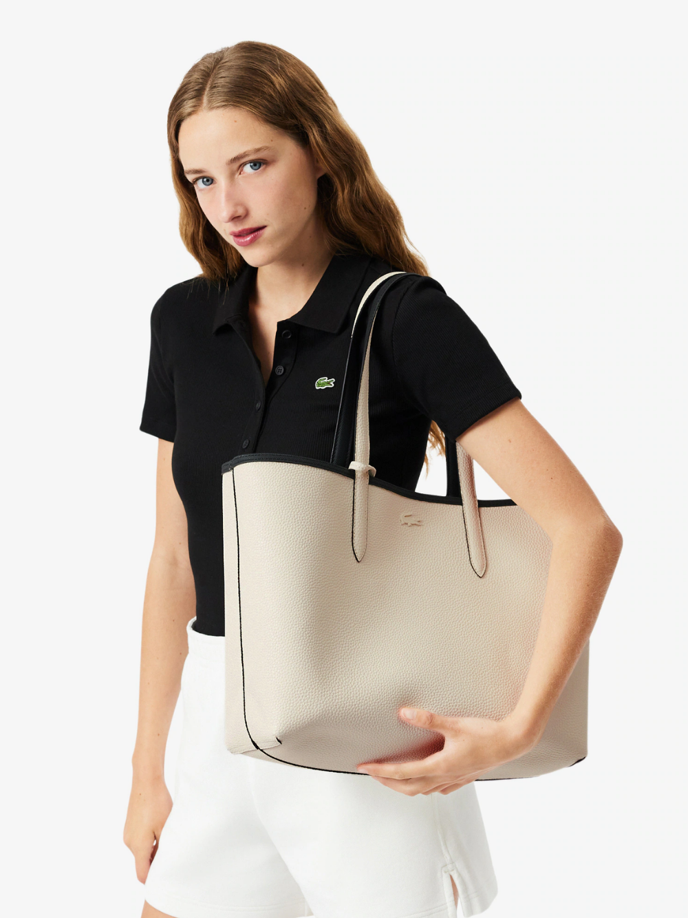 LACOSTE WOMEN Anna Reversible Tote with Pouch Black/Beige