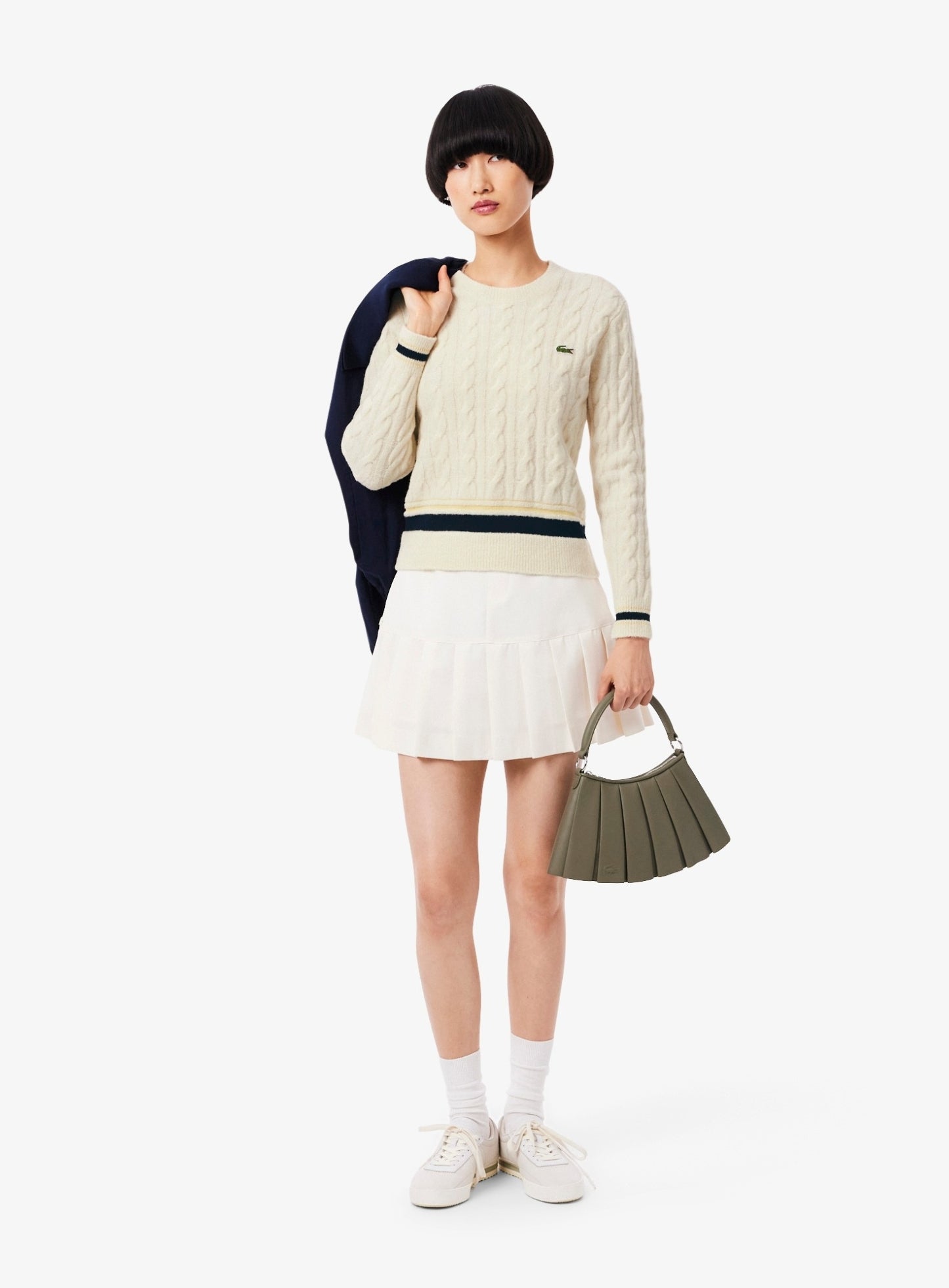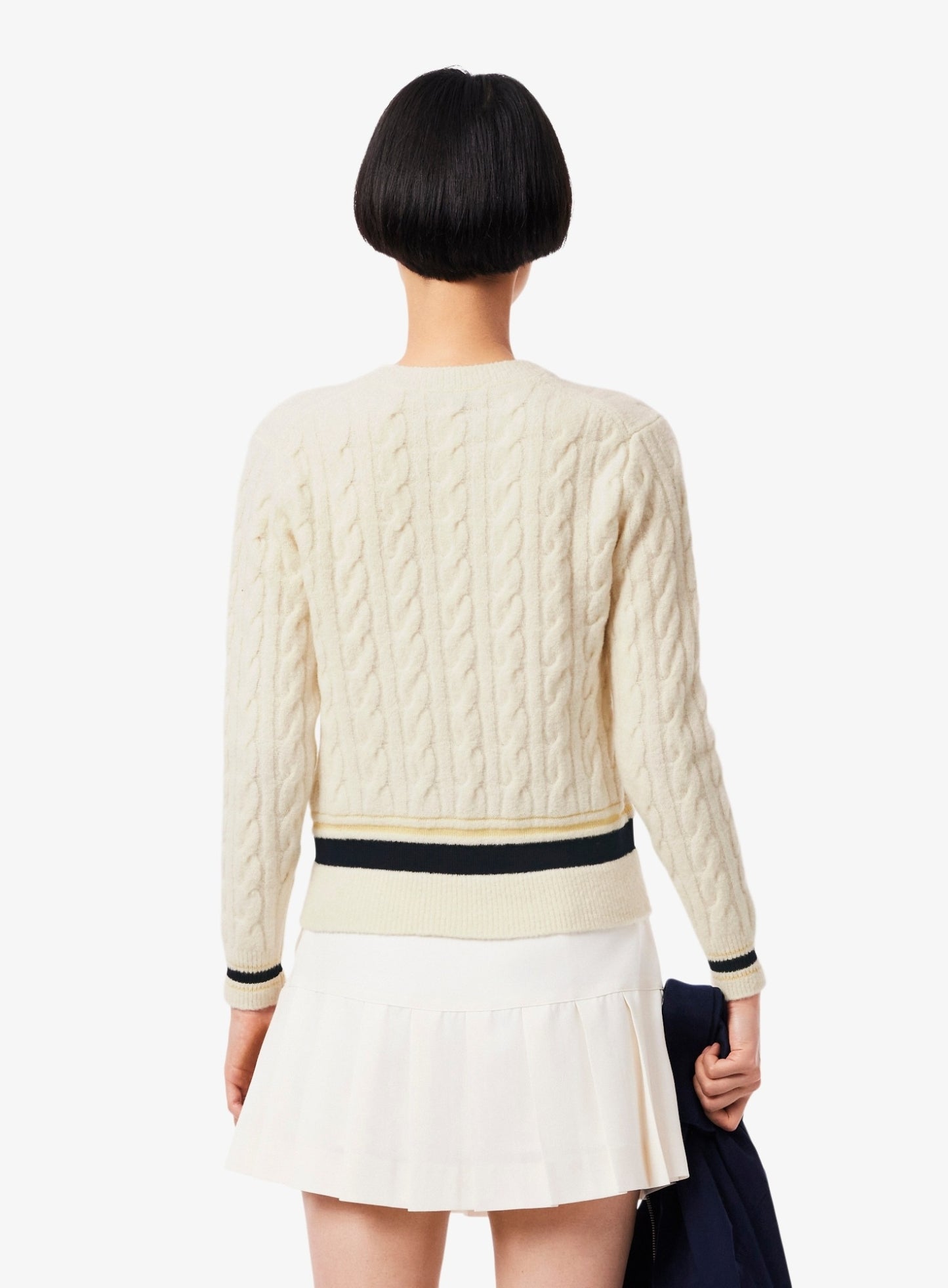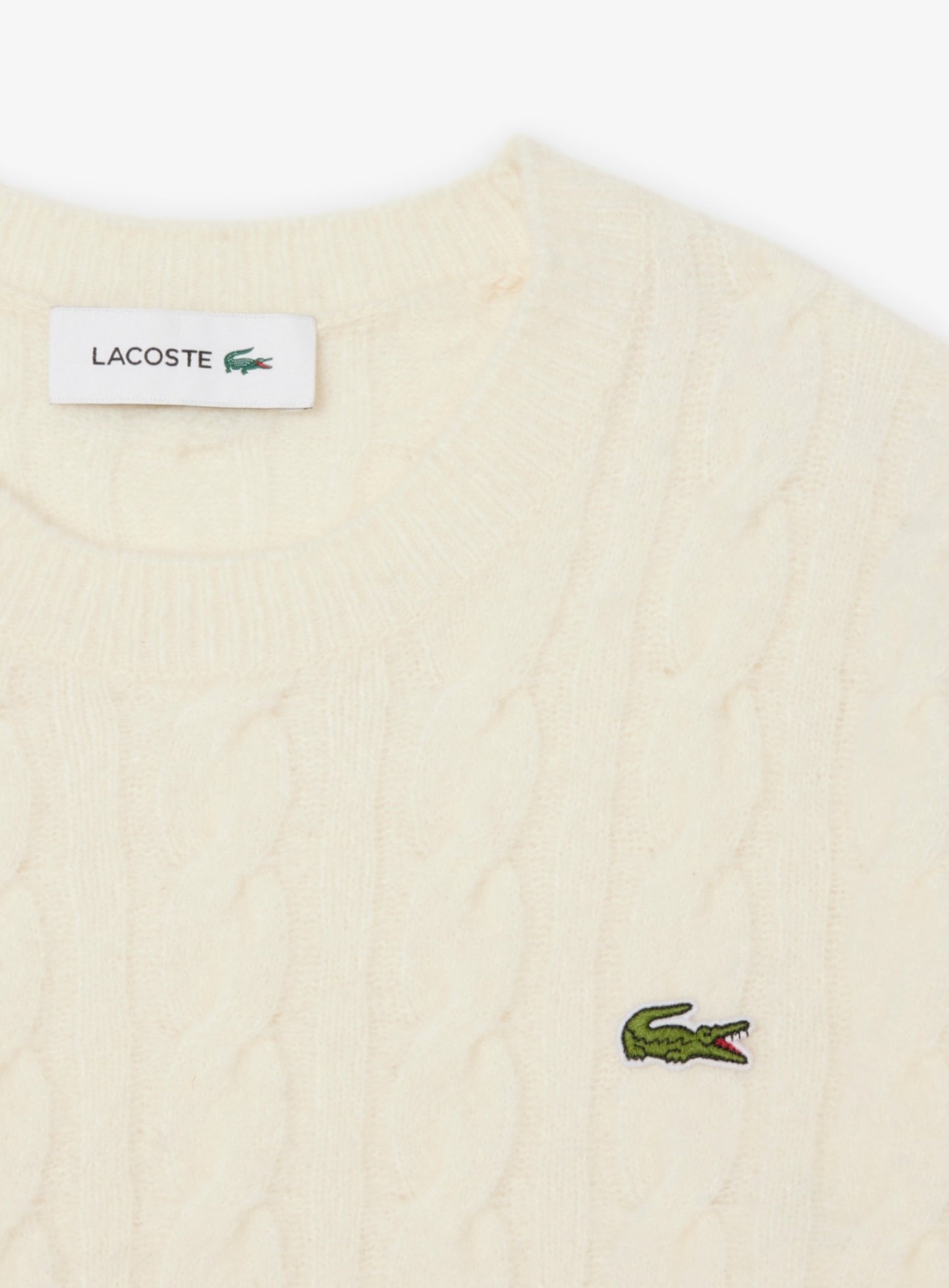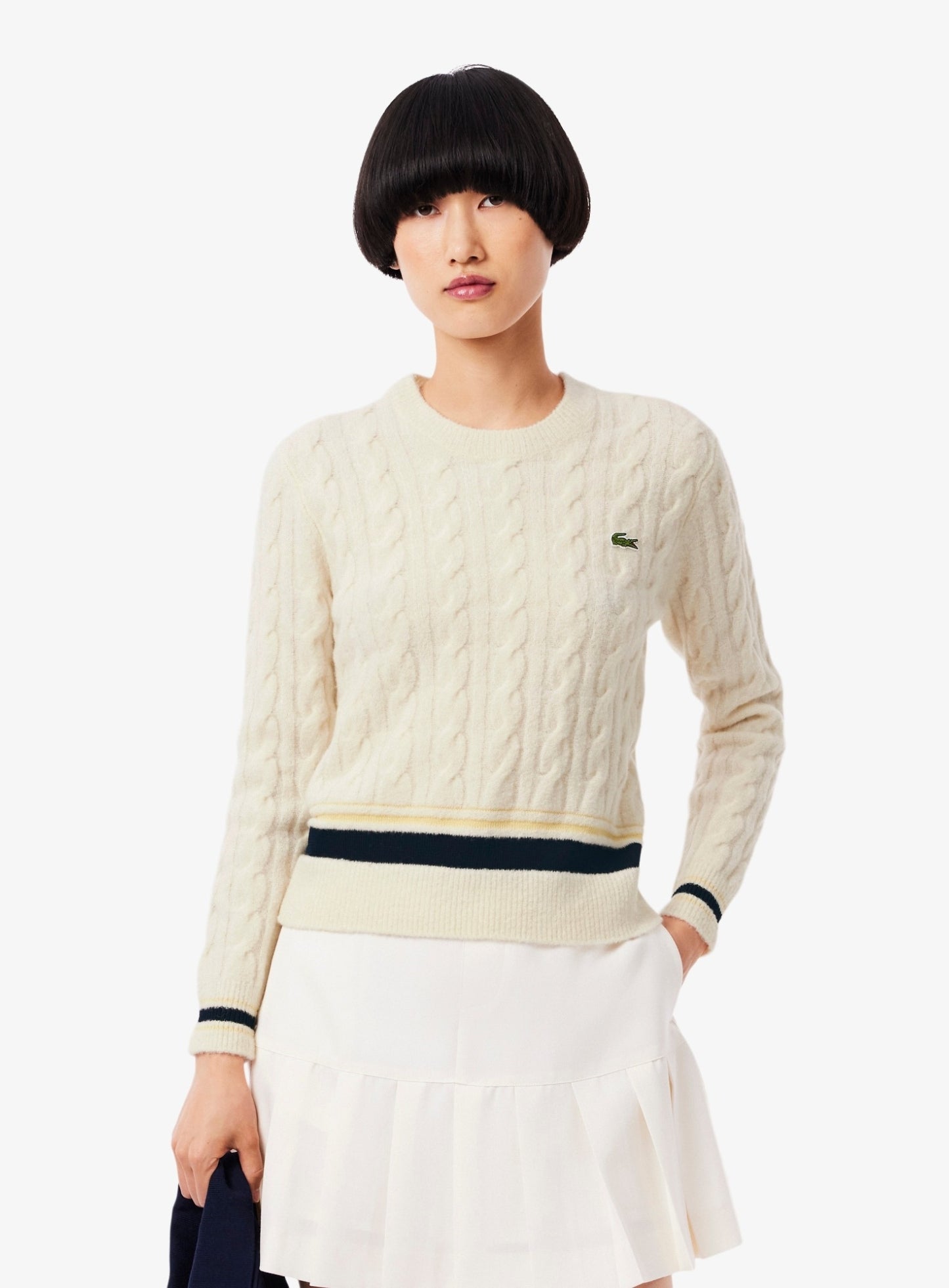 Regular price Rs. 14,200.00LACOSTE WOMEN Cable Knit Wool Sweater Ecru White