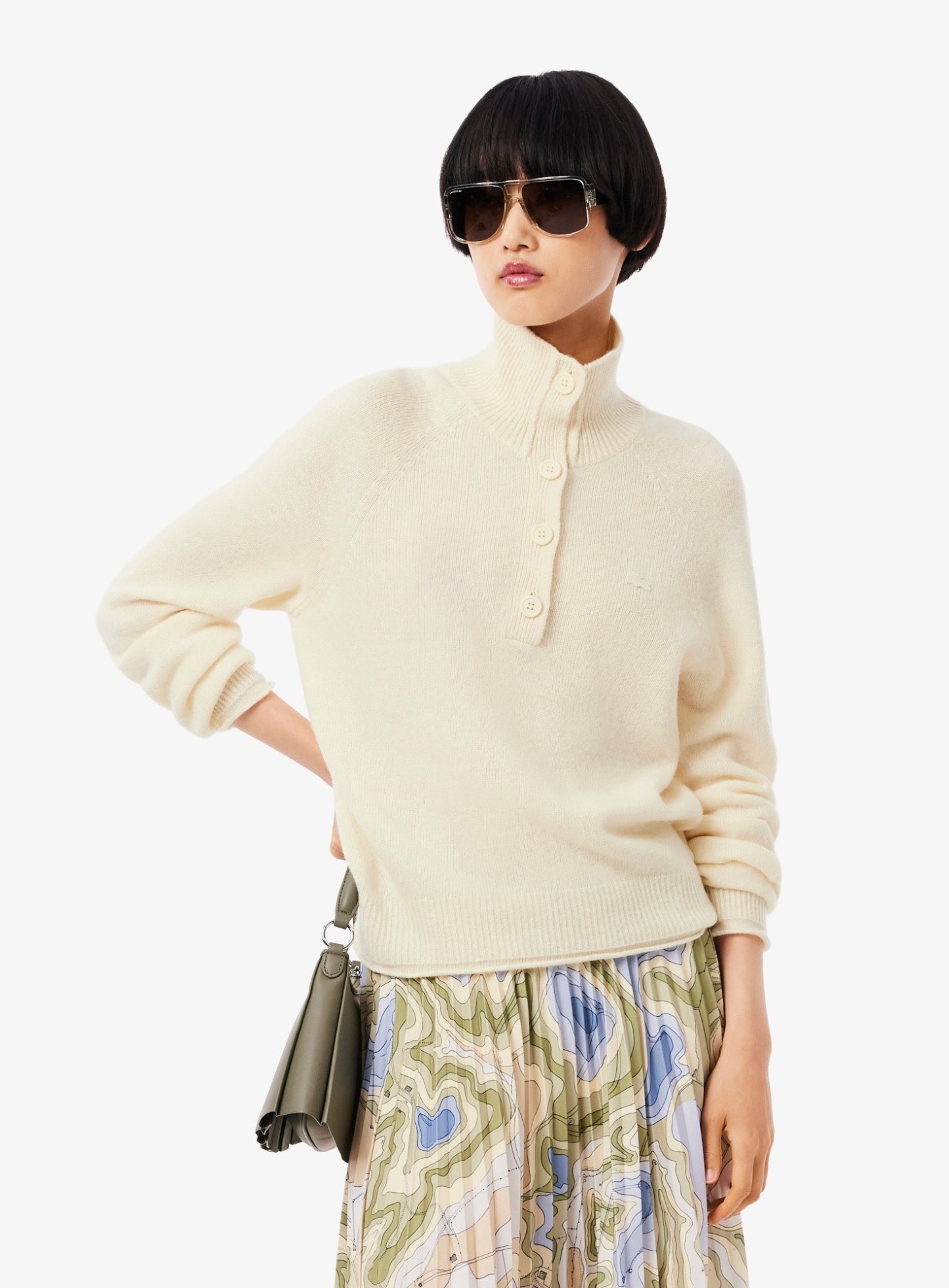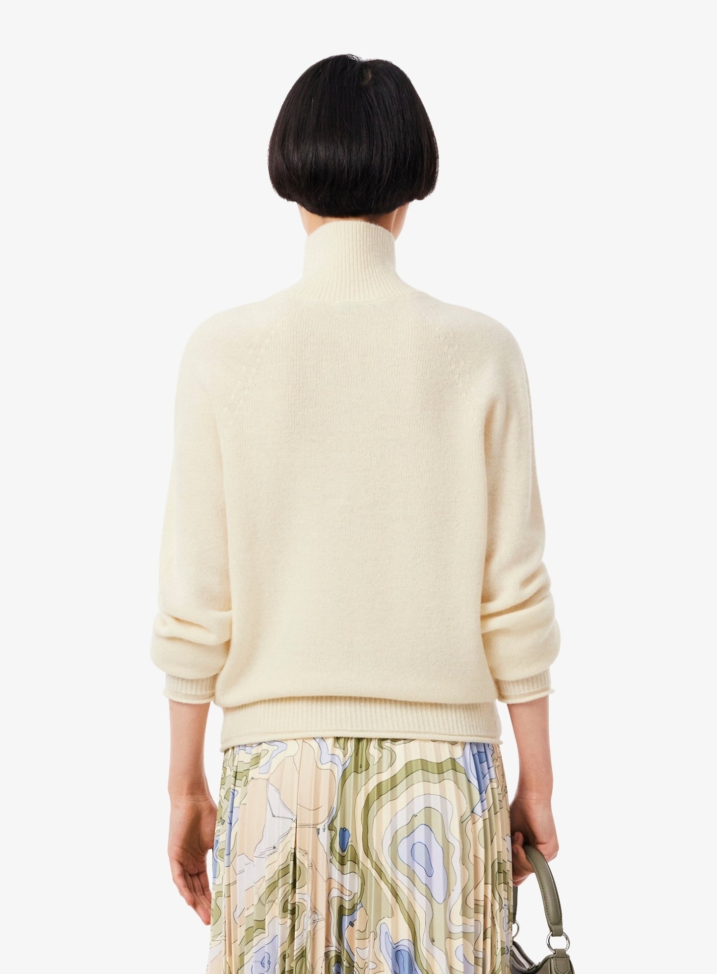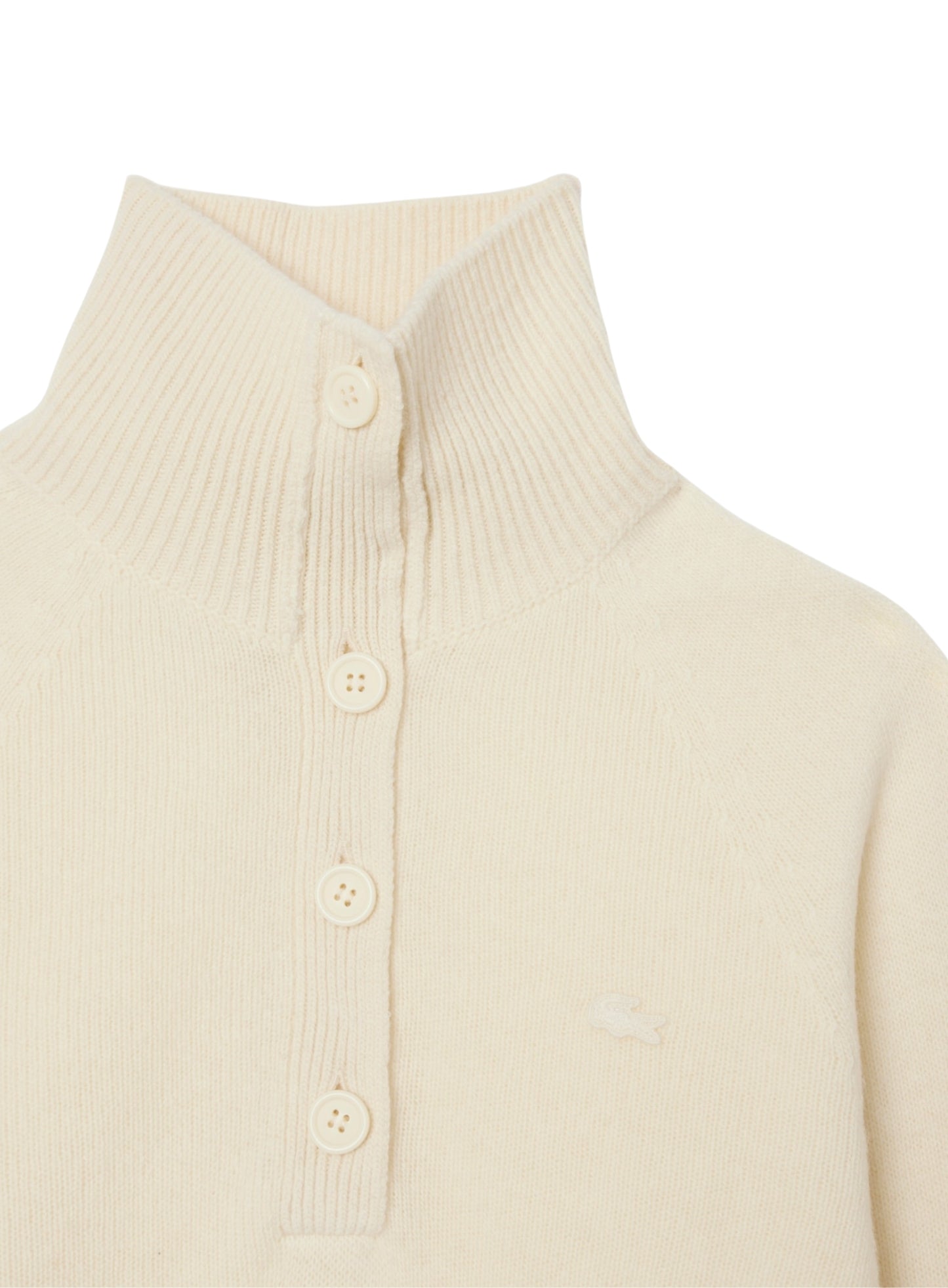 LACOSTE WOMEN Carded Wool High Neck Sweater Ecru White