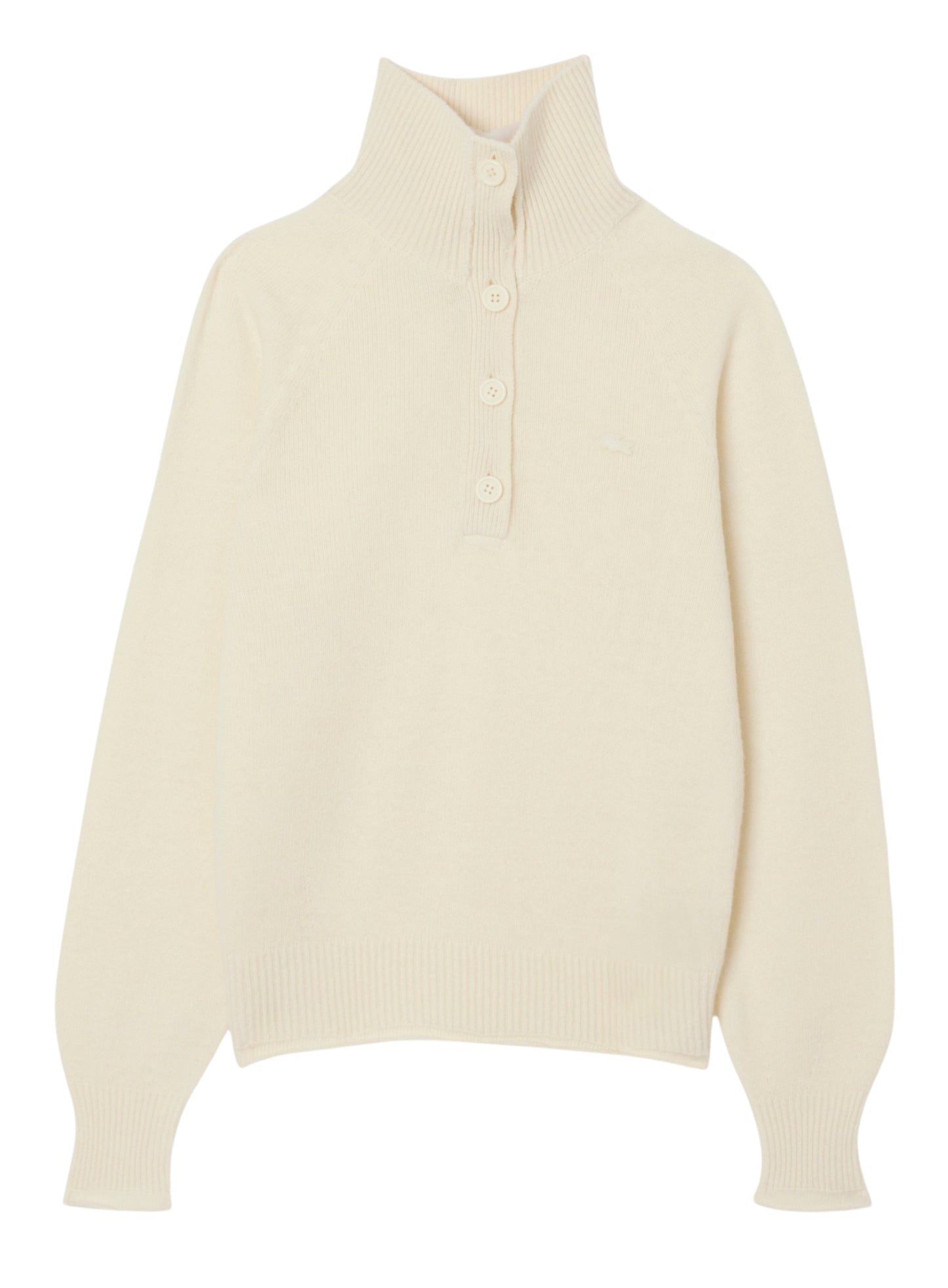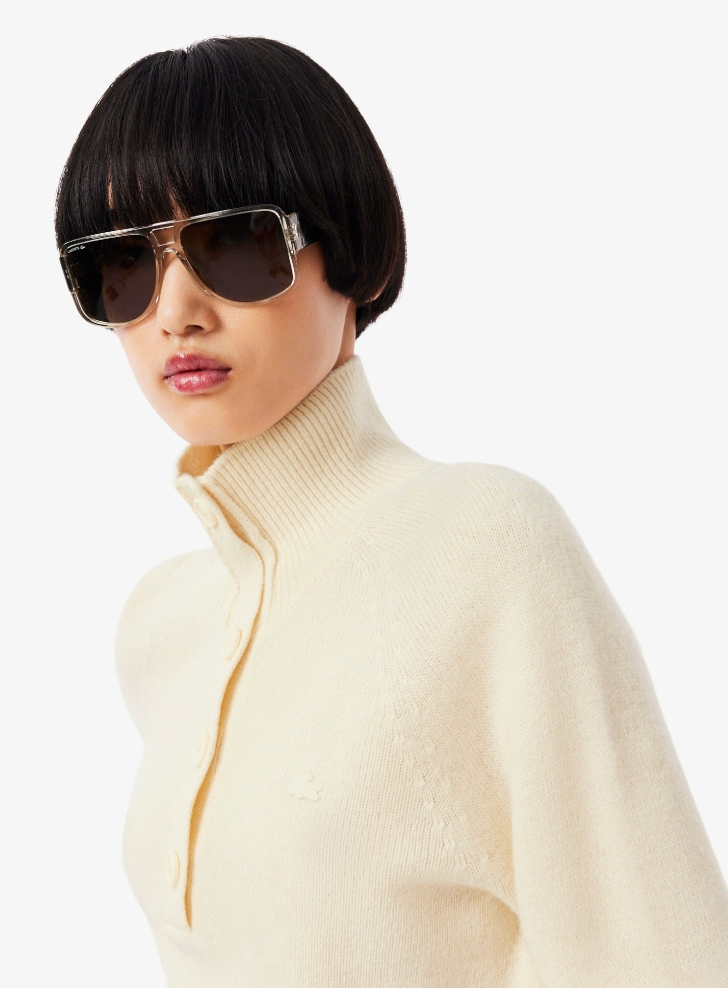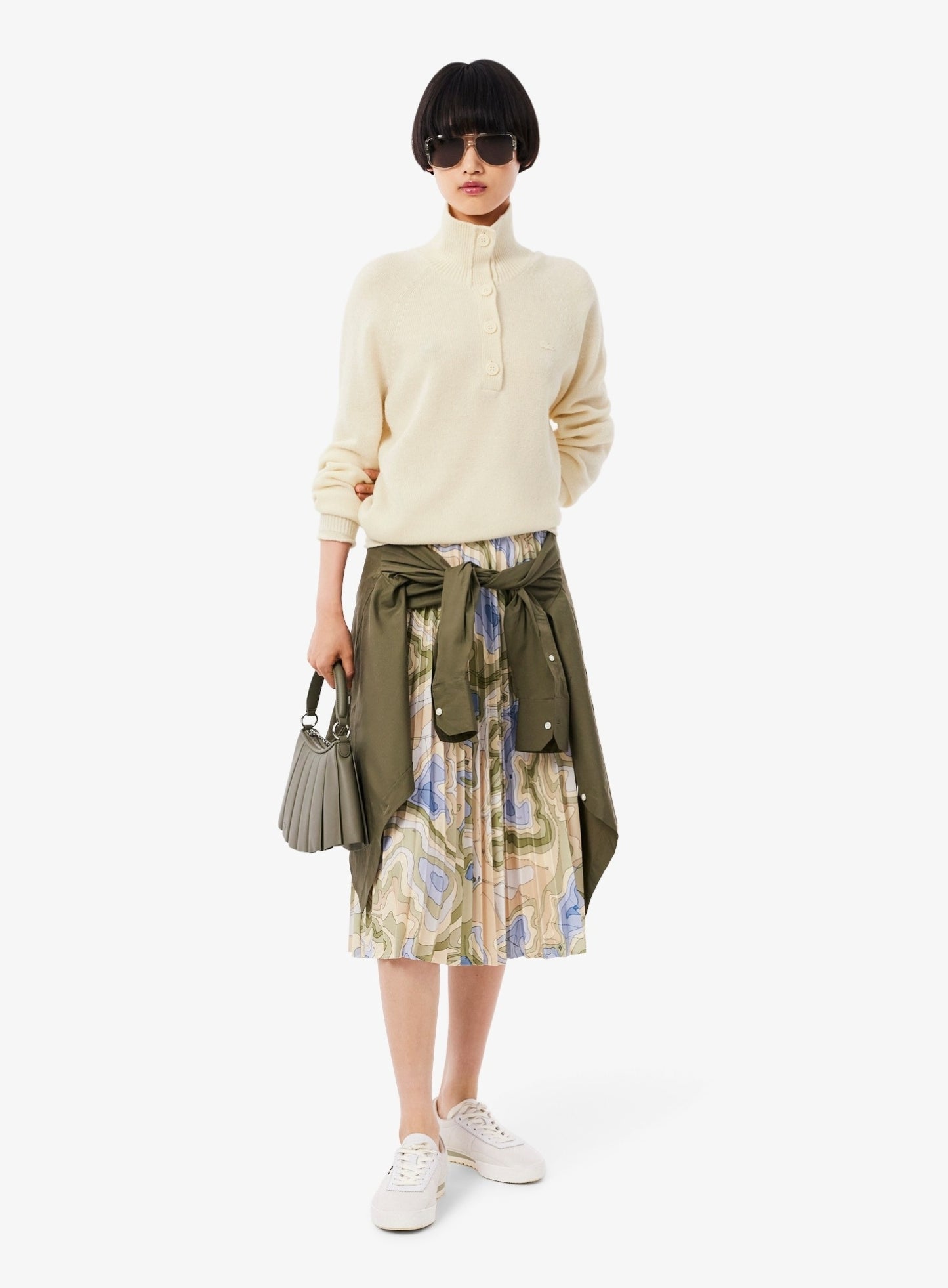 LACOSTE WOMEN Carded Wool High Neck Sweater Ecru White