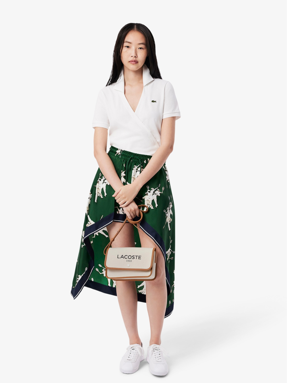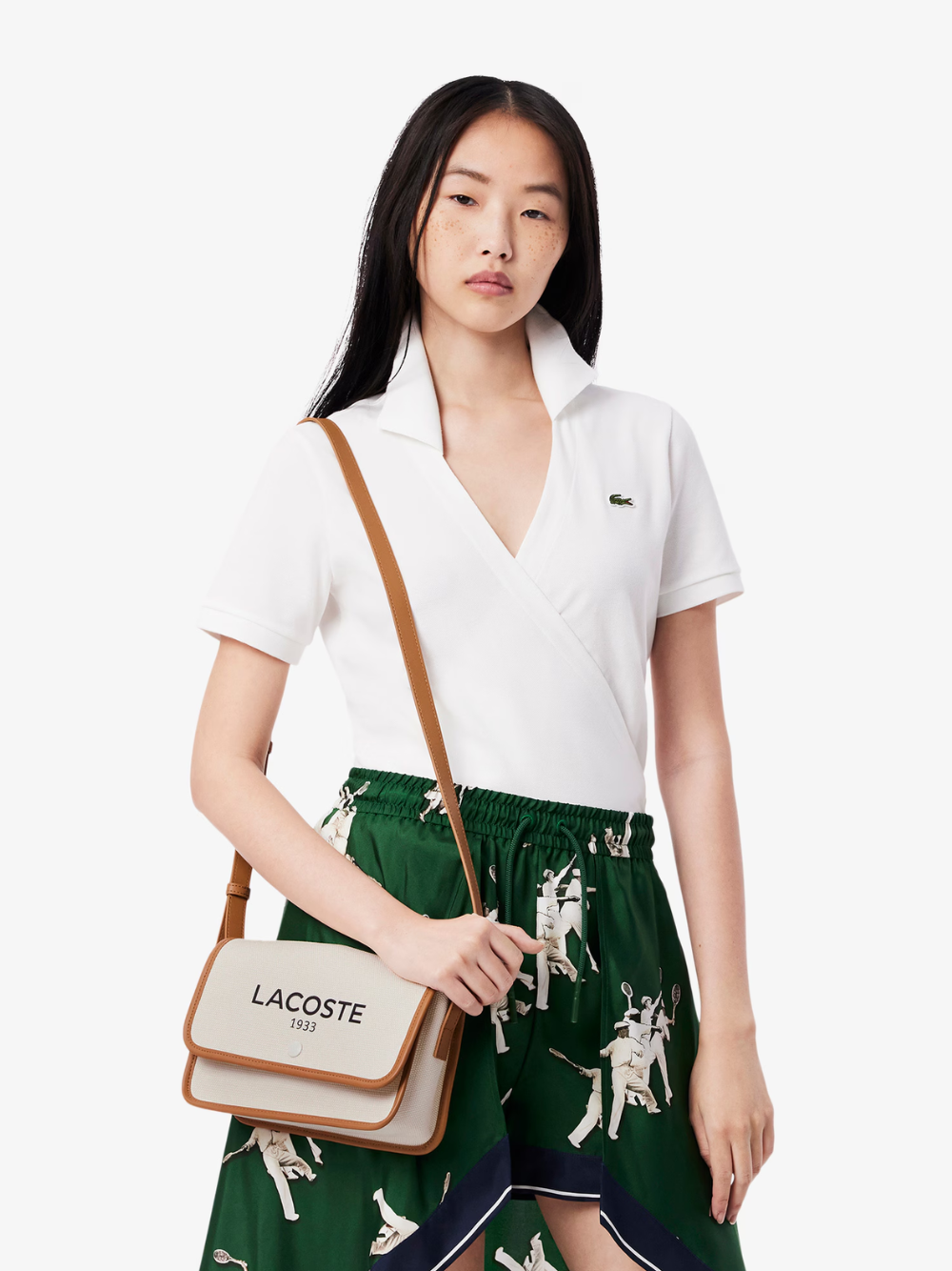 LACOSTE WOMEN Heritage Canvas Flap Close Bag Tan