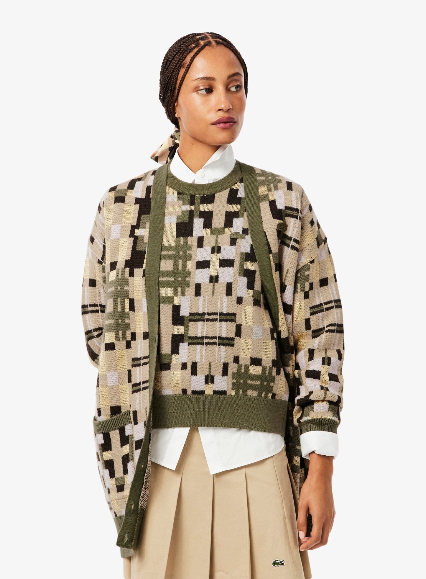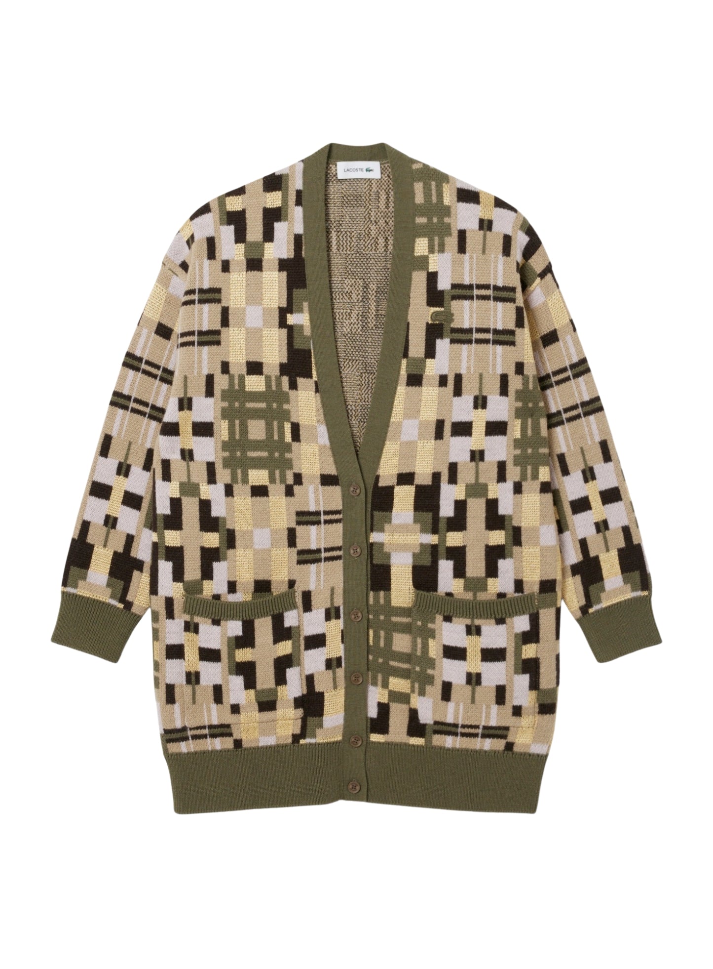 LACOSTE WOMEN Jacquard graphic long cardigan Khaki Beige