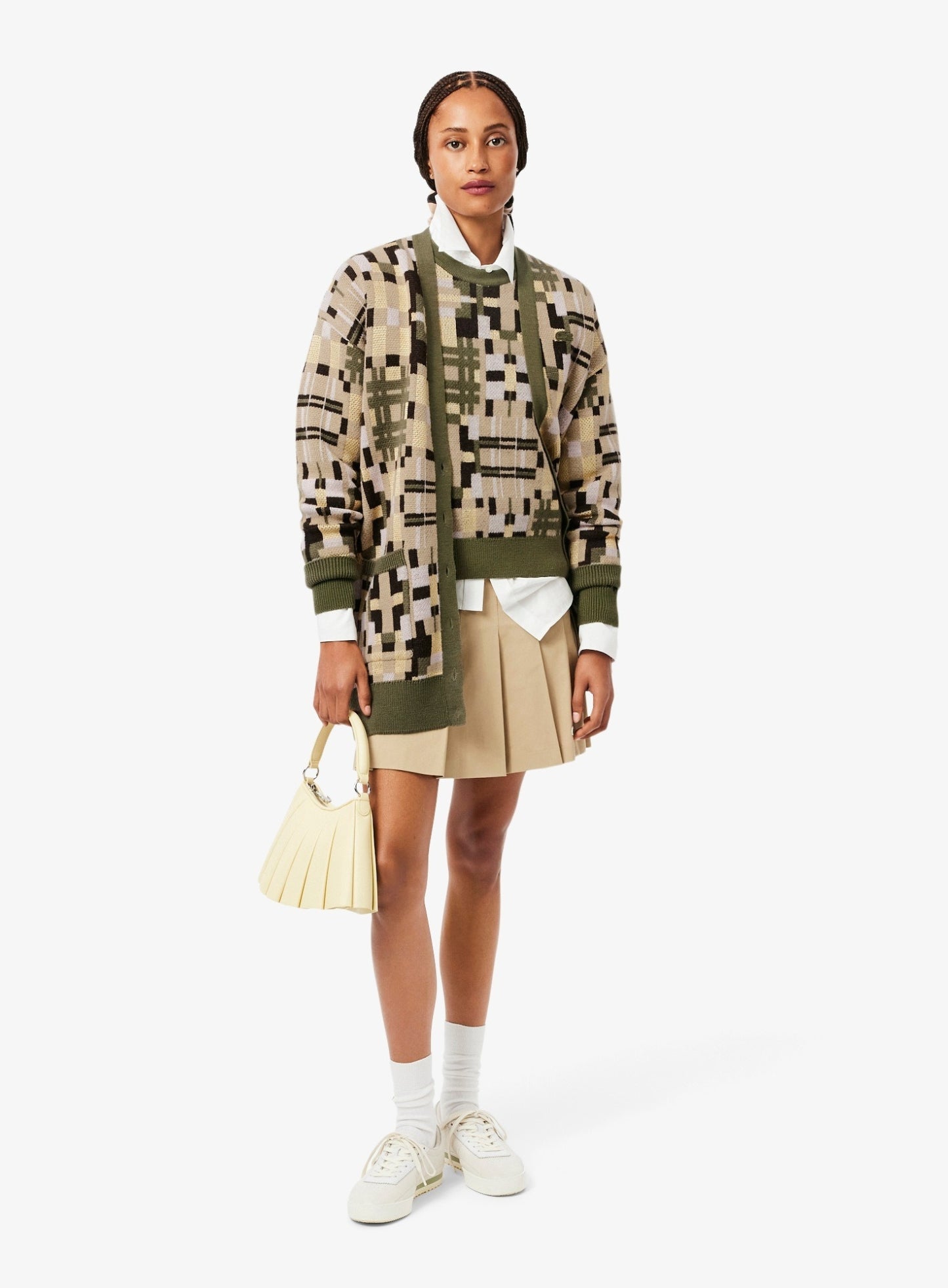 Regular price Rs. 19,200.00LACOSTE WOMEN Jacquard graphic long cardigan Khaki Beige