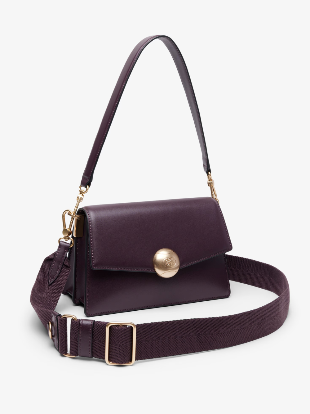 Inspired by the design of a tennis ball, the Tennis Bliss line offers a feminine approach. This elegant flap bag has an adjustable, removable shoulder strap and plenty of storage space.