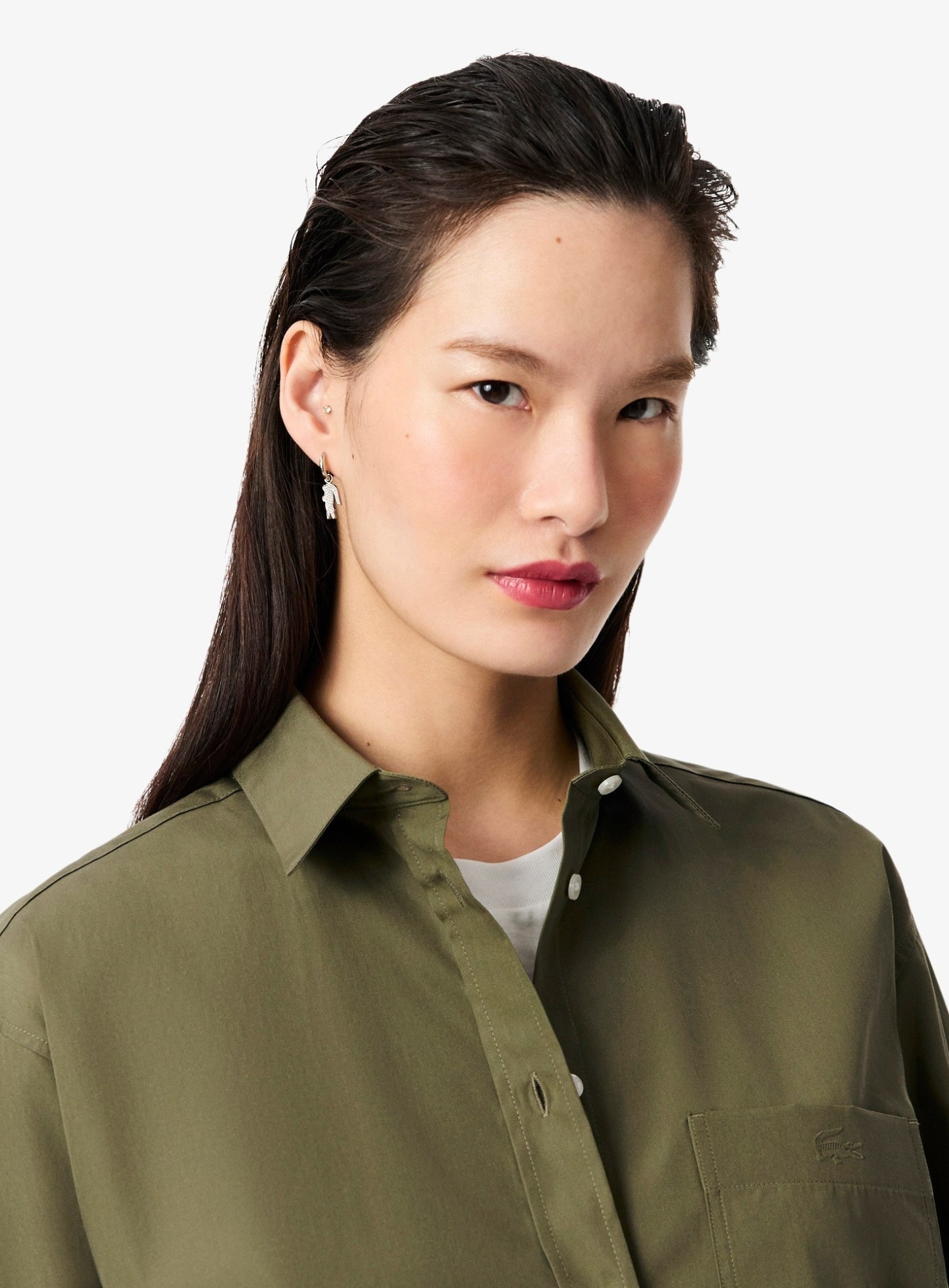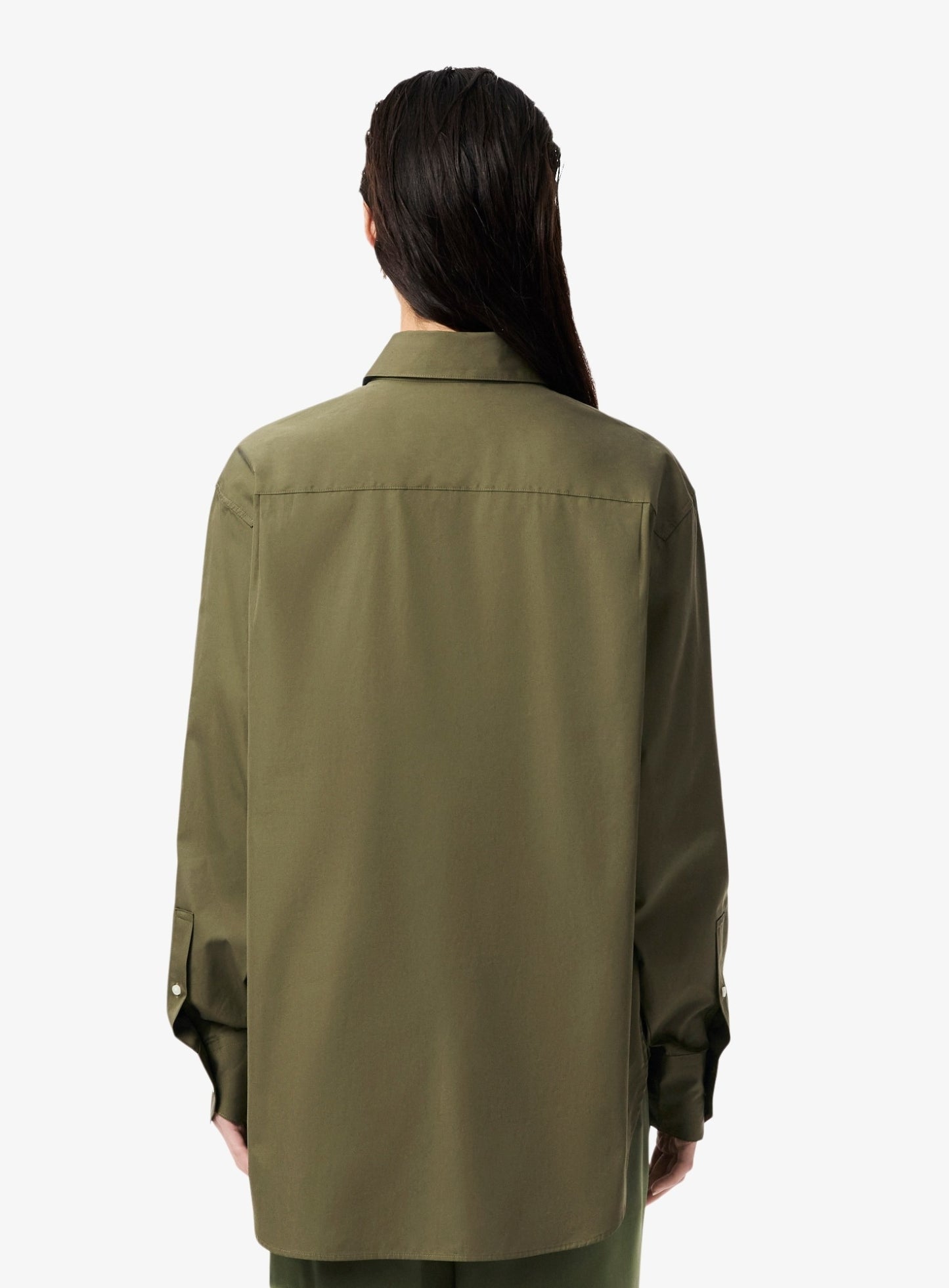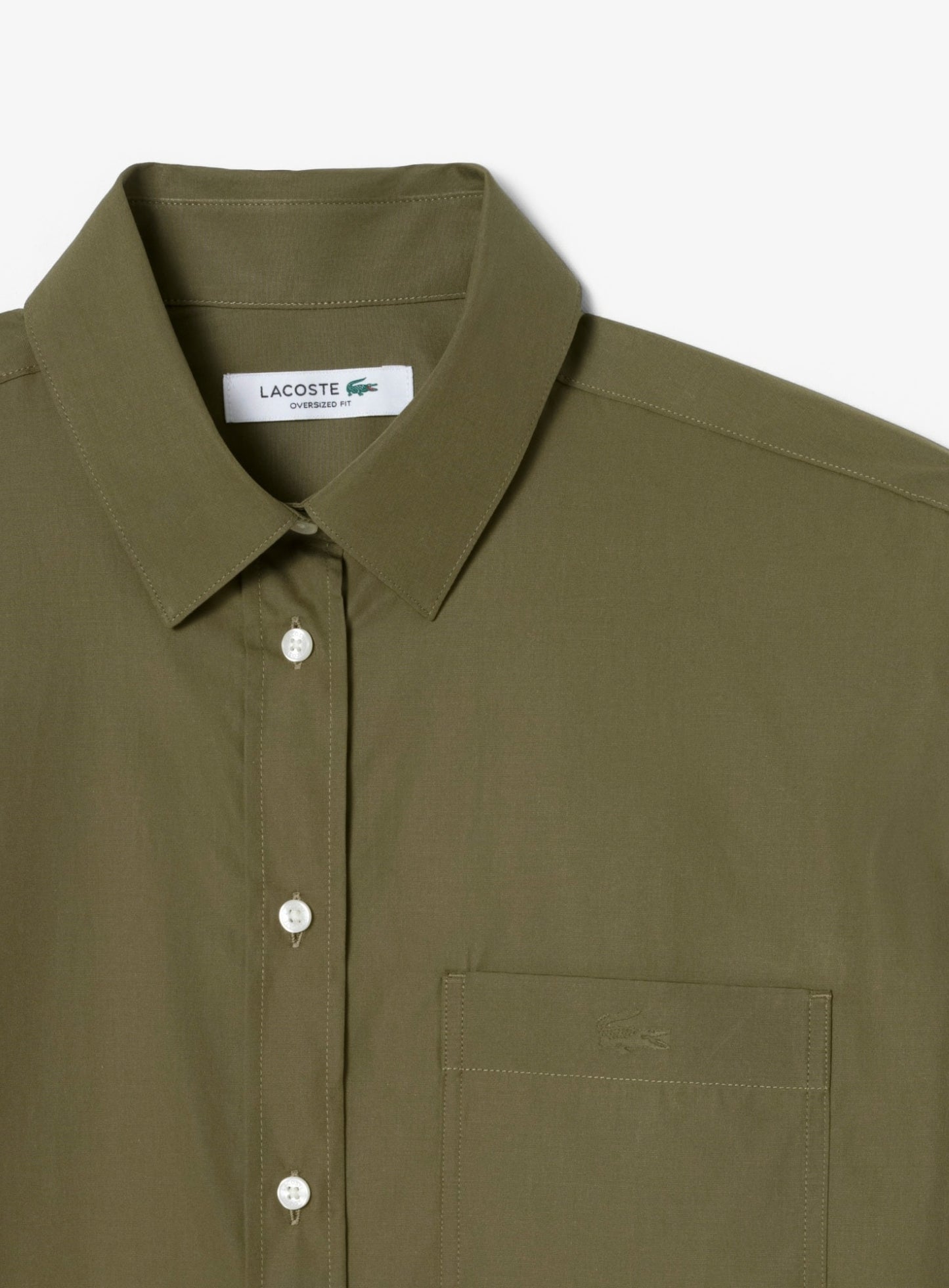 LACOSTE WOMEN Oversized Cotton Poplin Shirt Khaki Green