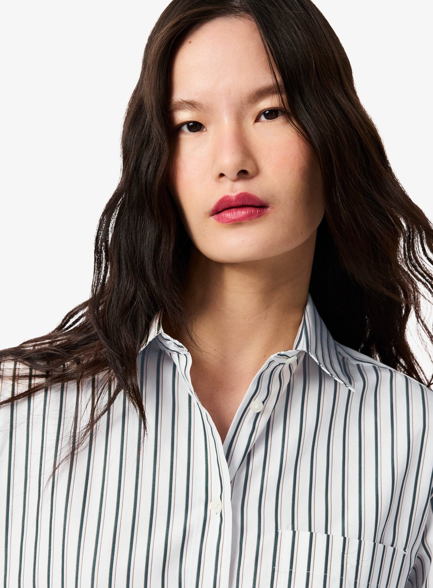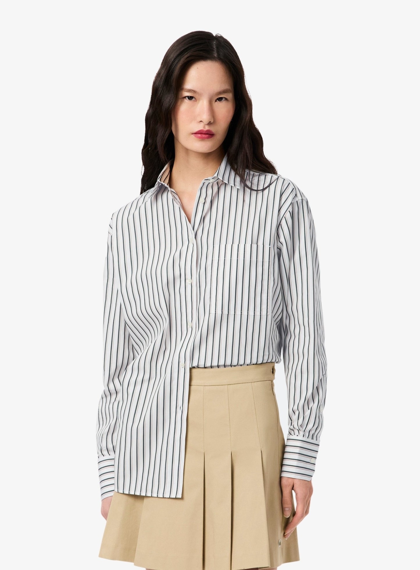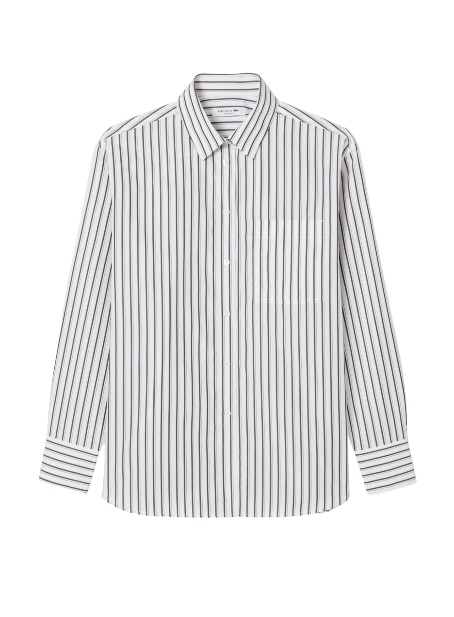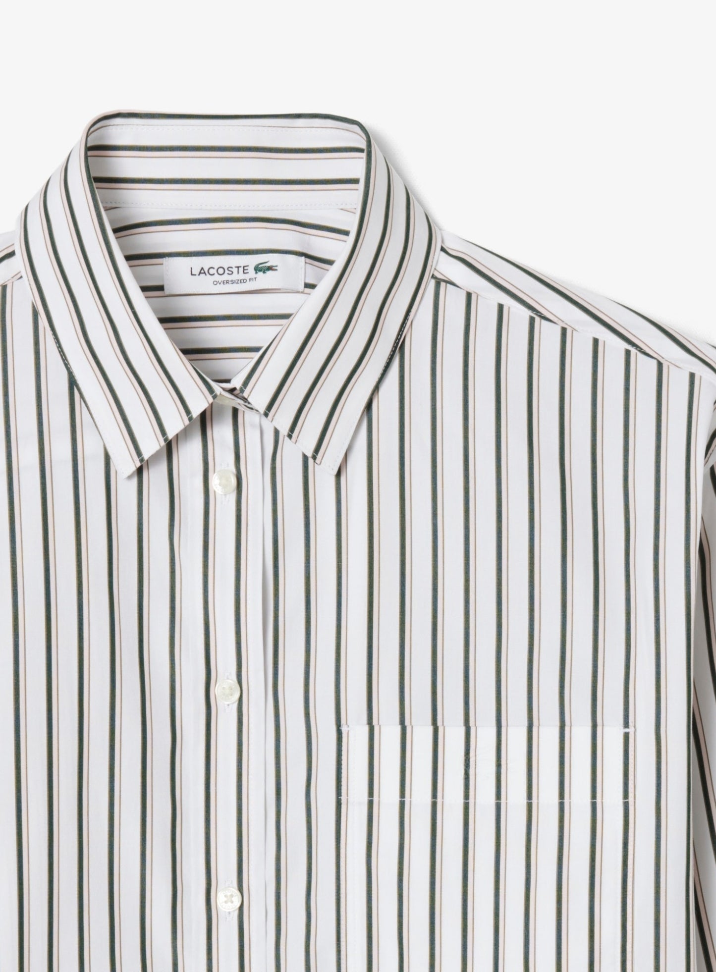 LACOSTE WOMEN Oversized Cotton Poplin Shirt White Green
