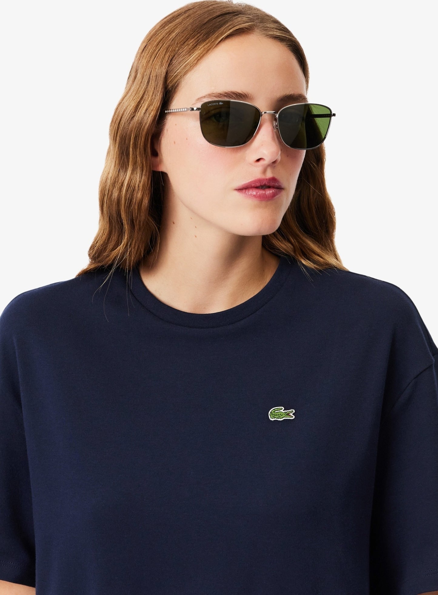 LACOSTE WOMEN Oversized Cotton T-Shirt Dress Midnight Blue
