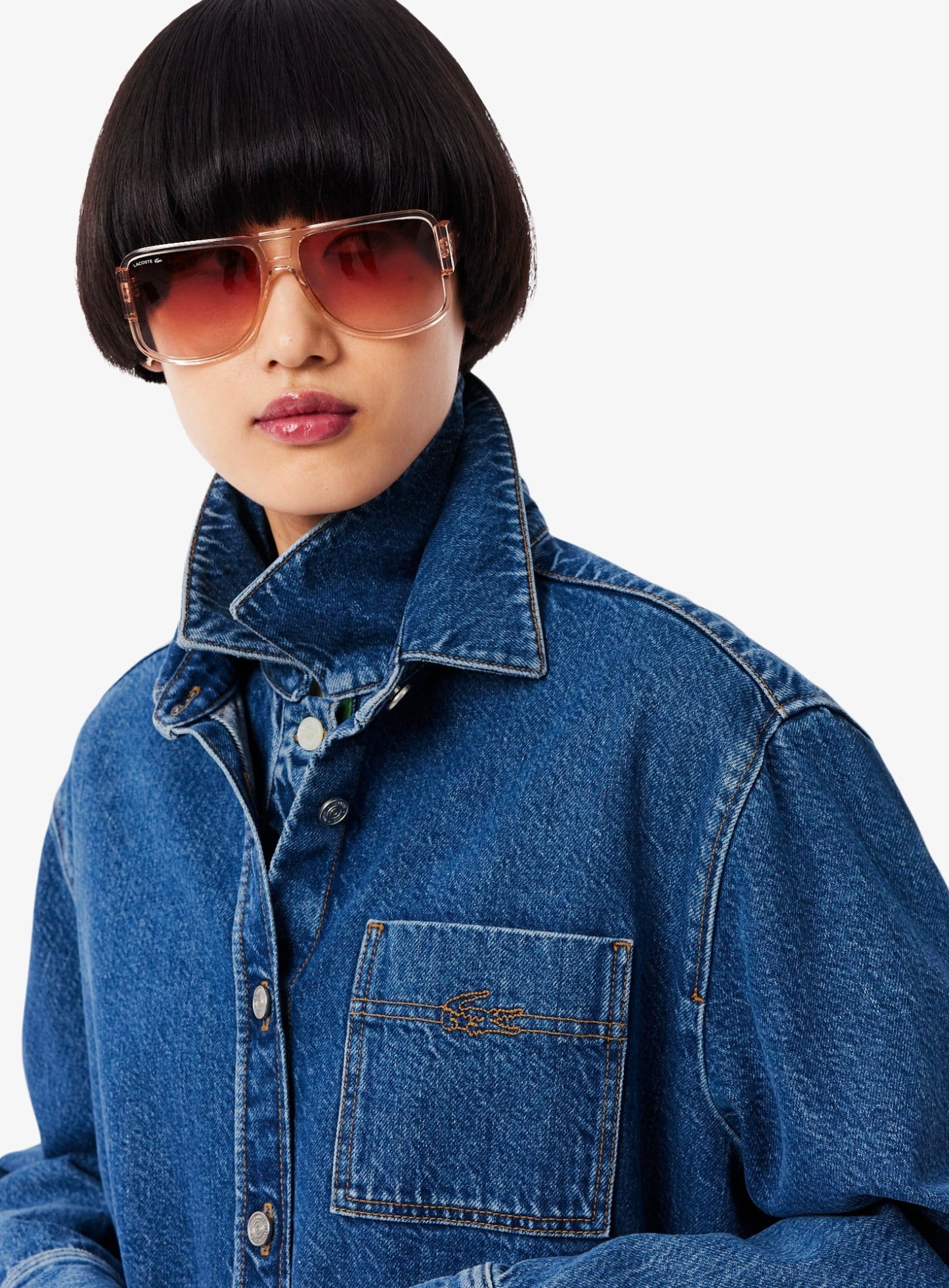 LACOSTE WOMEN Oversized Denim Overshirt Blue