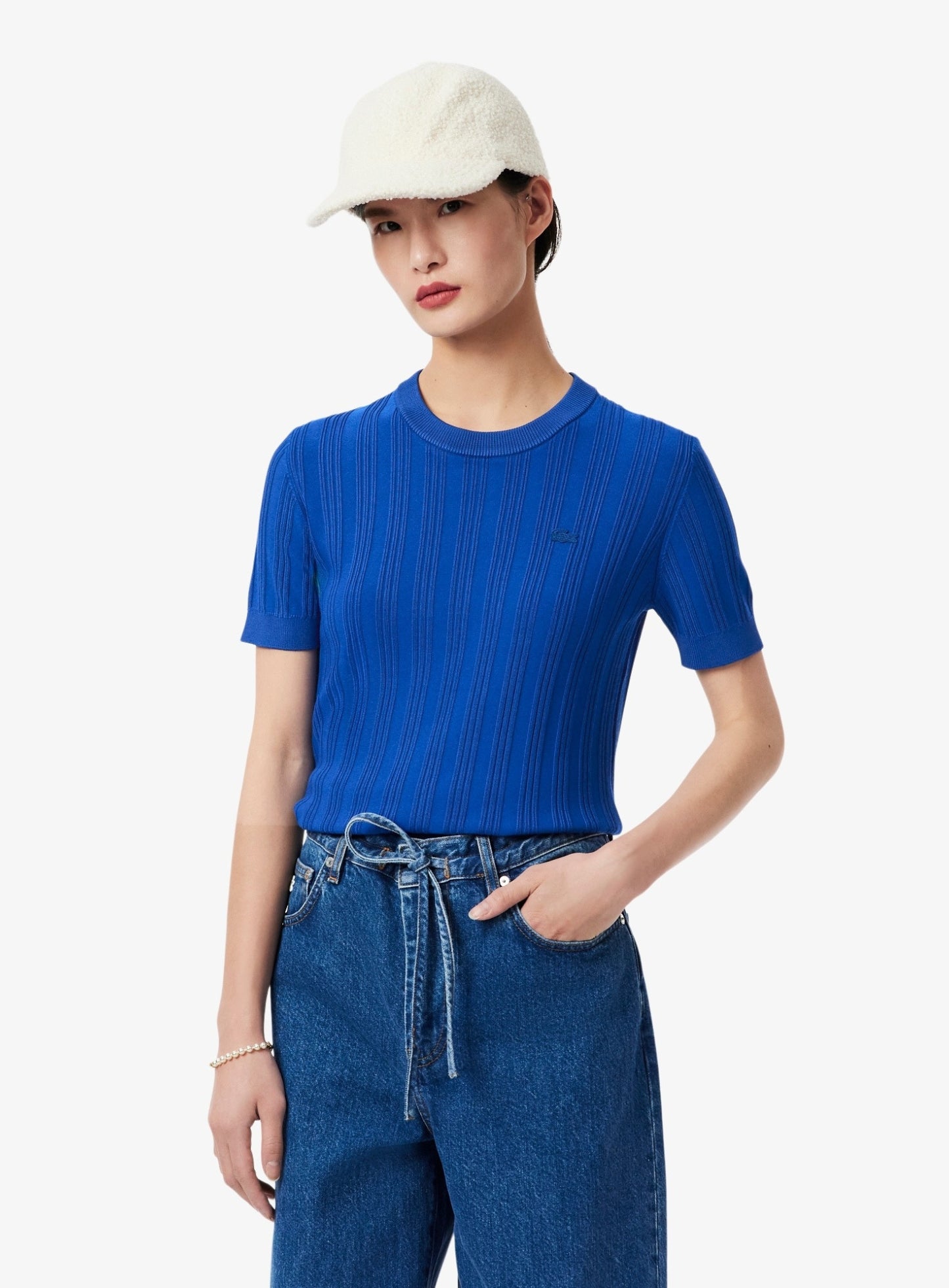 Regular price Rs. 11,700.00LACOSTE WOMEN Short Sleeved Rib Knit Sweater Sapphire Blue
